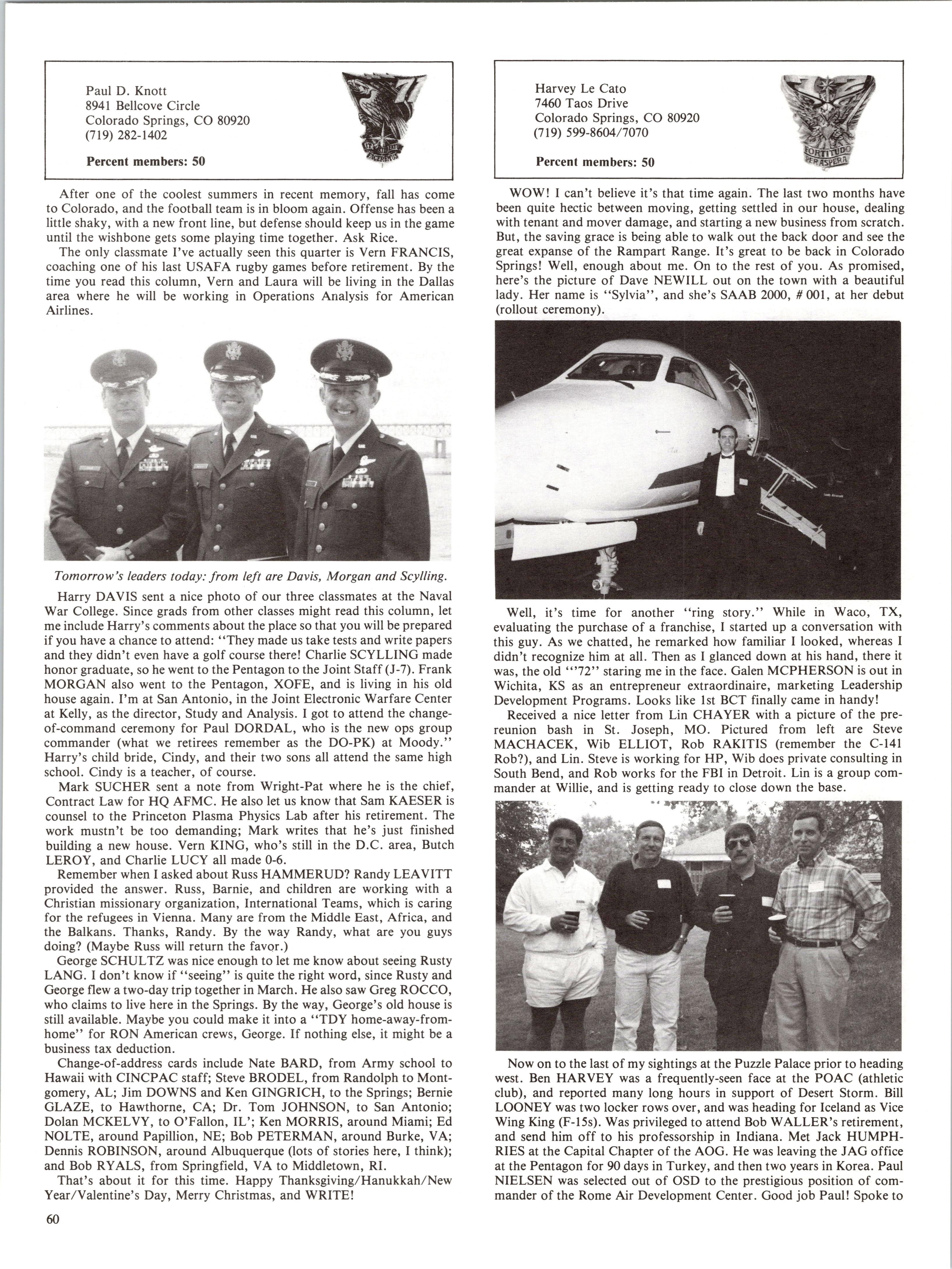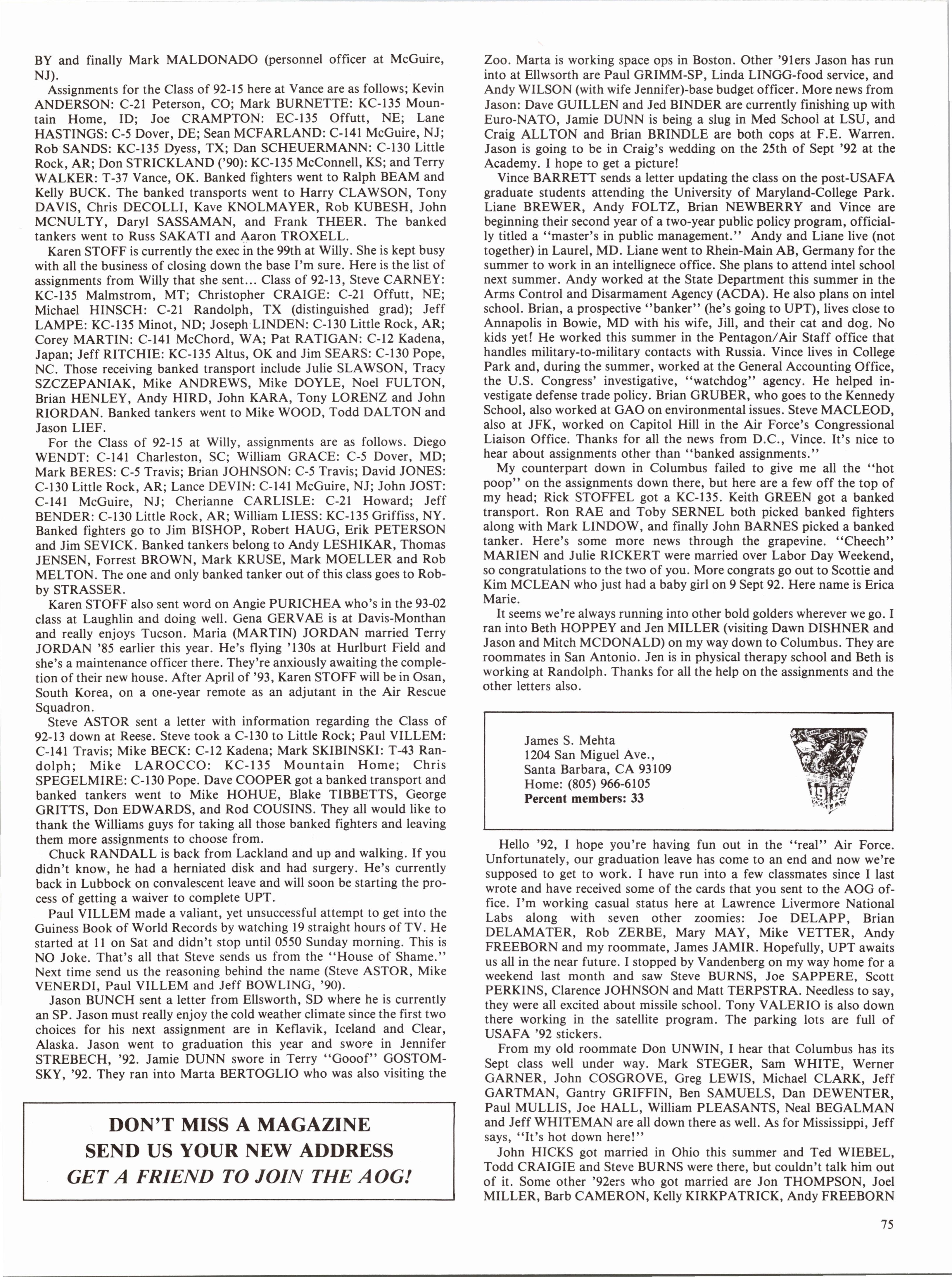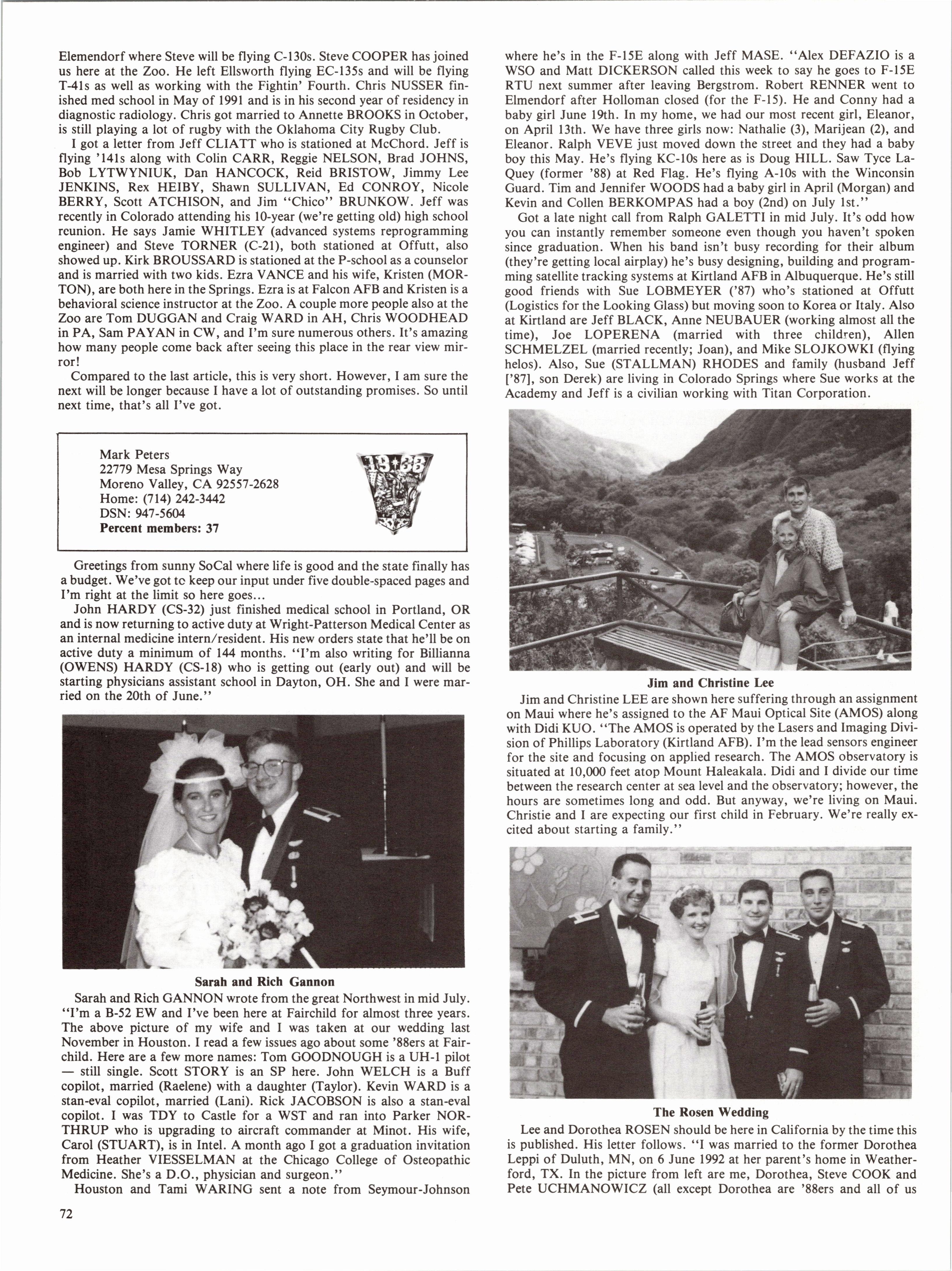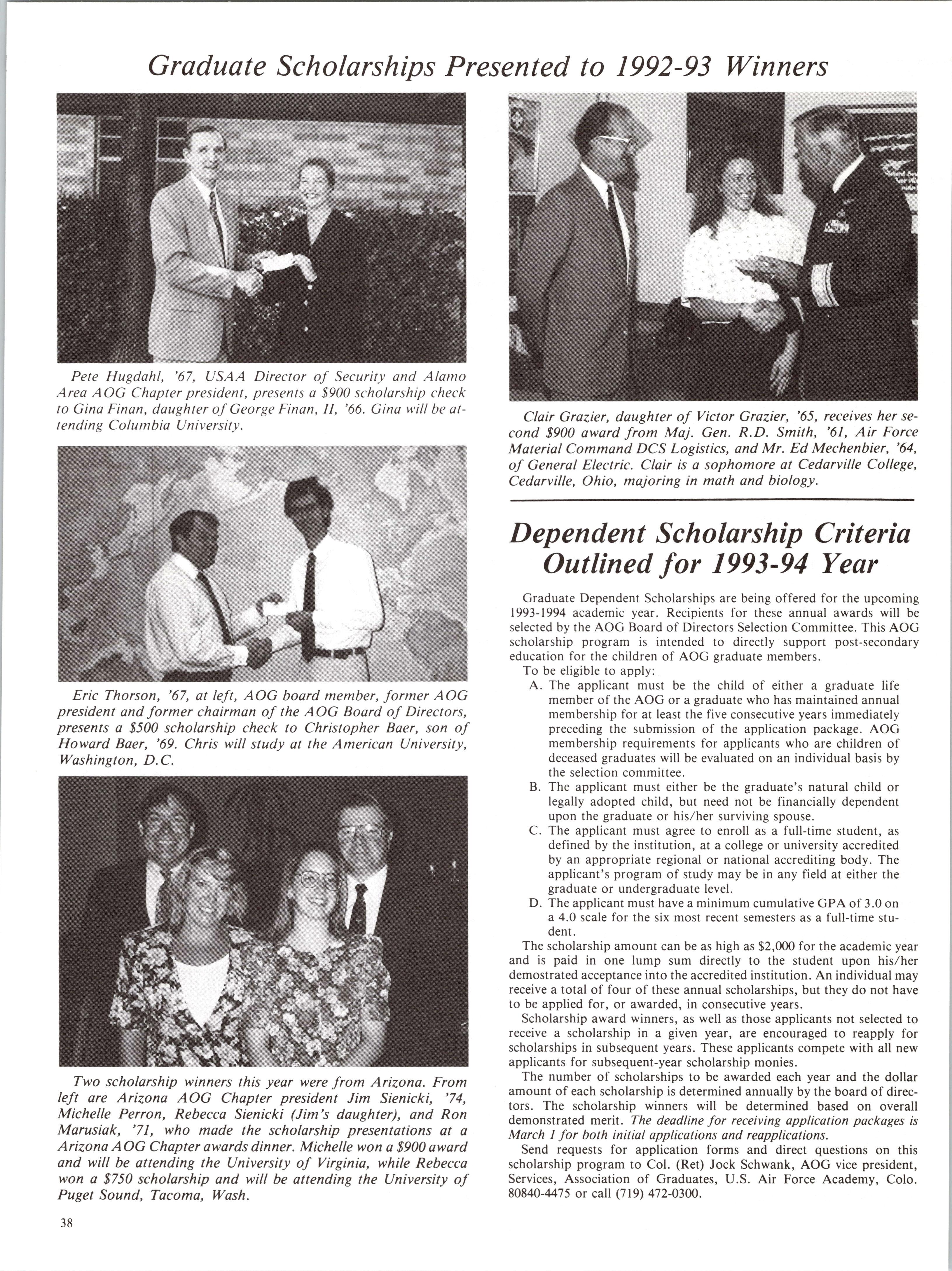 Opinions expressed in this magazine are those of the authors. They do not necessarily reflect the opinions, policy or attitude of the Association of Graduates, its officers or the editorial staff. The appearance of advertisements in this publication does not constitute an endorsement by the Association of Graduates of the products or services advertised. Copyright, Association of Graduates of the U.S. Air Force Academy, Fall 1992.