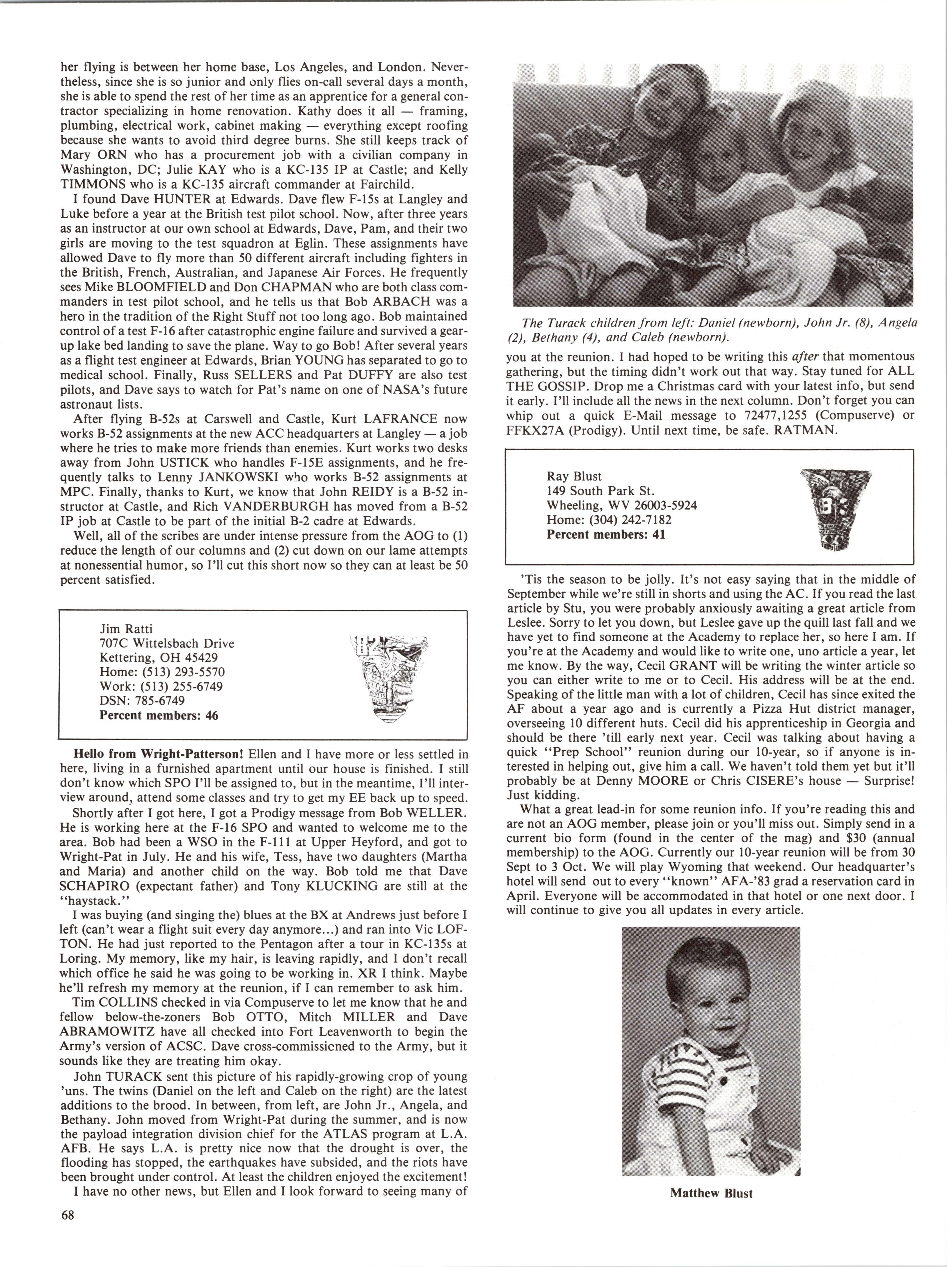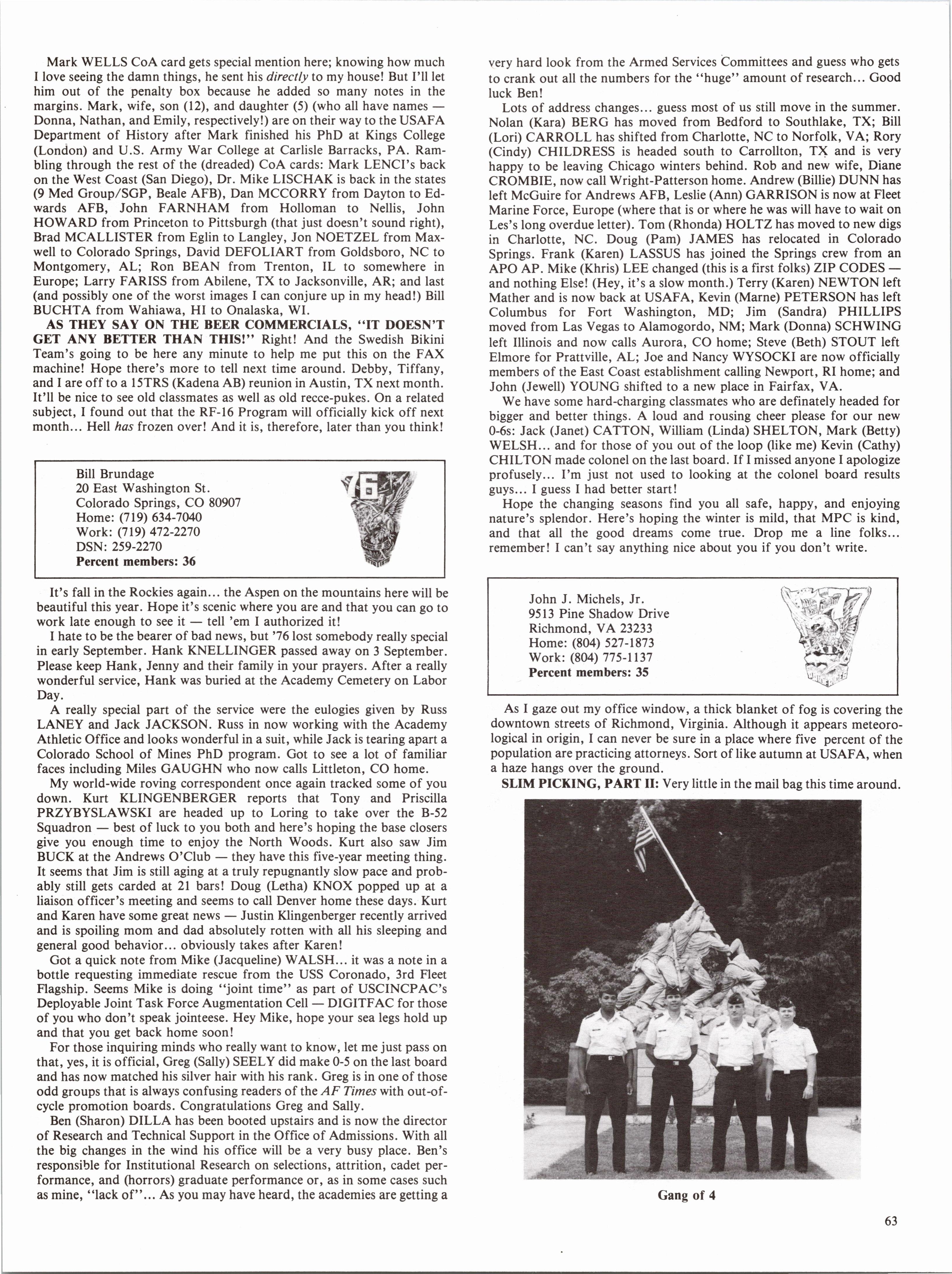 Capt Kymbal K Roley, ’85 8093 Scarborough Drive Colorado Springs, CO 80920