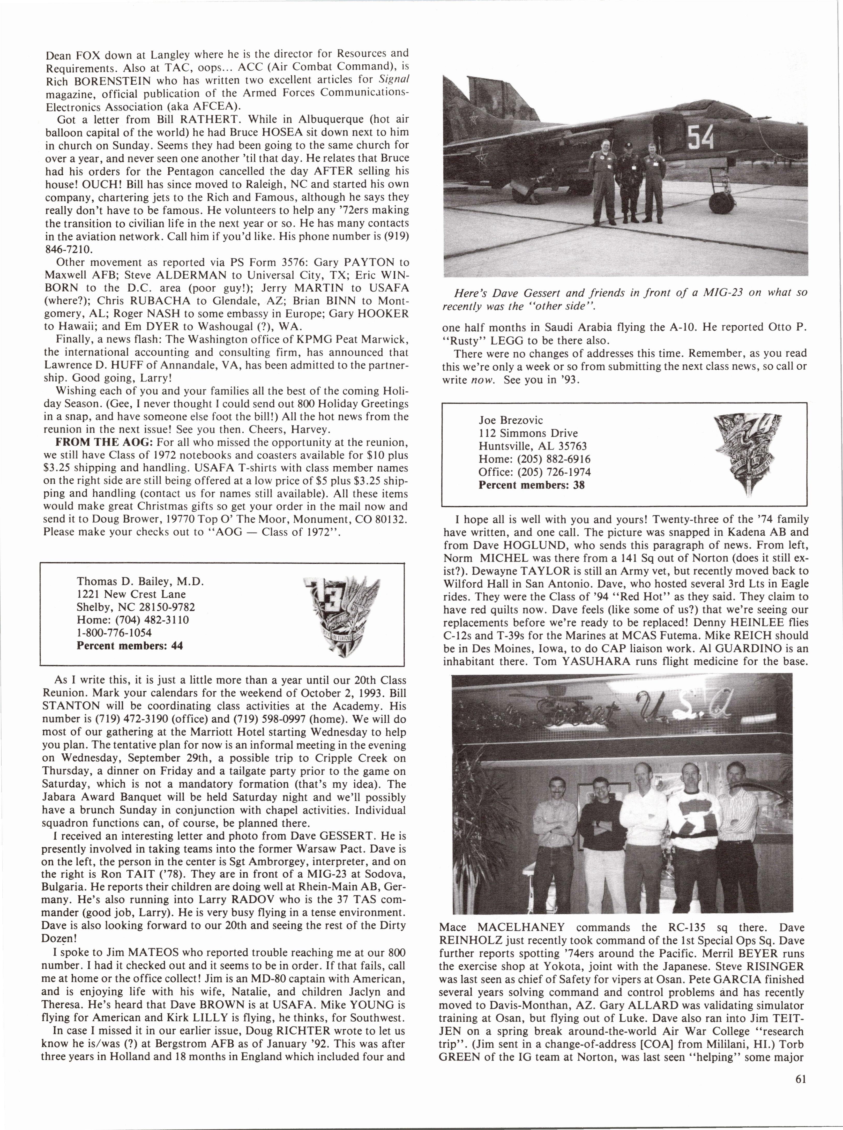 Barksdale, Pete WILEY Inter-American Defense Board (Wash DC), and Steve WOLF and the other USAFA-Marines at The Basic School In Quantico, VA.