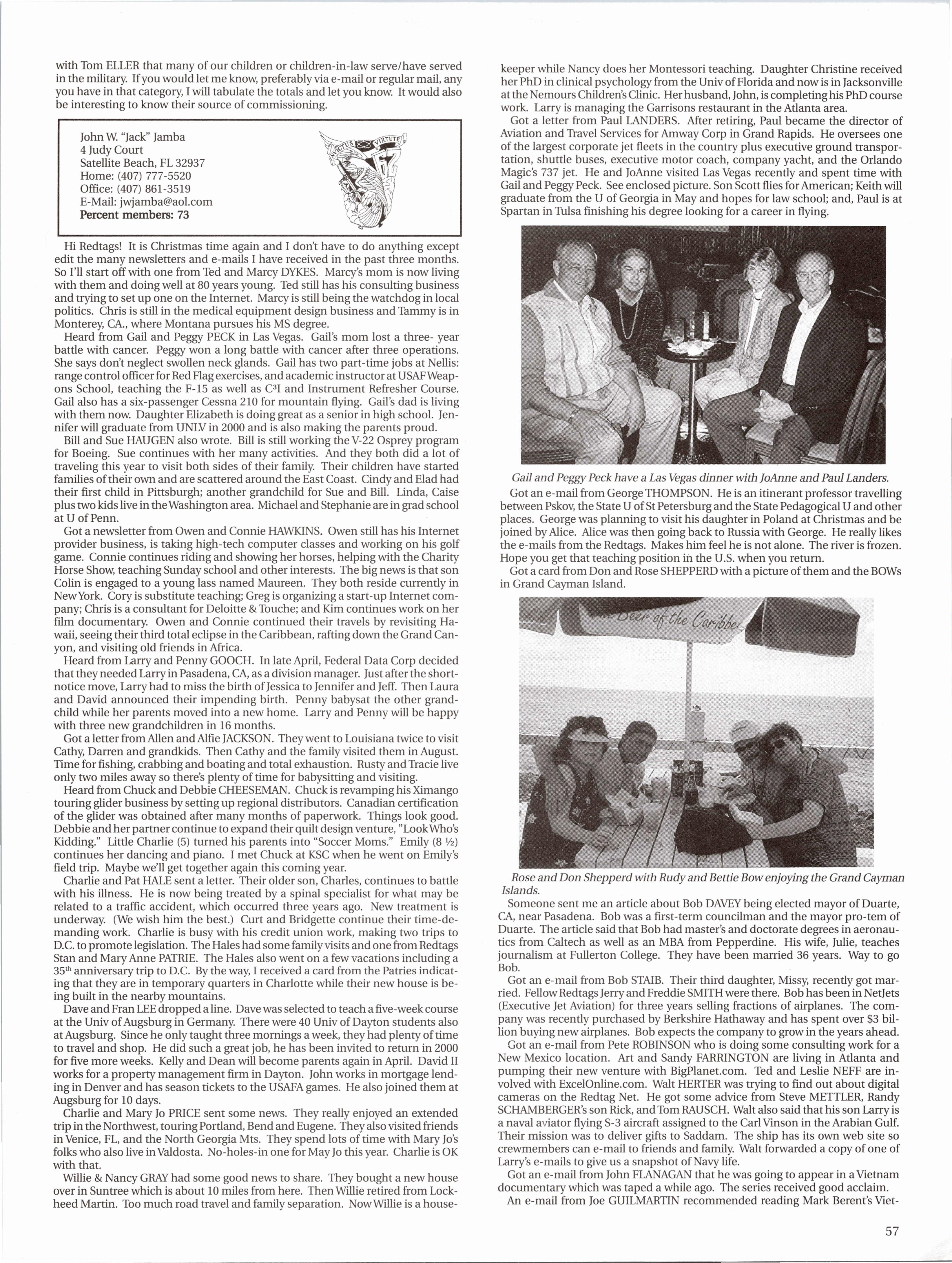 I only received two letters since writing the last article, so I asked other people here at Barksdale to tell me what they know about classmates, and I checked the web site for other information for this article. It would reallyhelp if more people sent in pictures and letters.