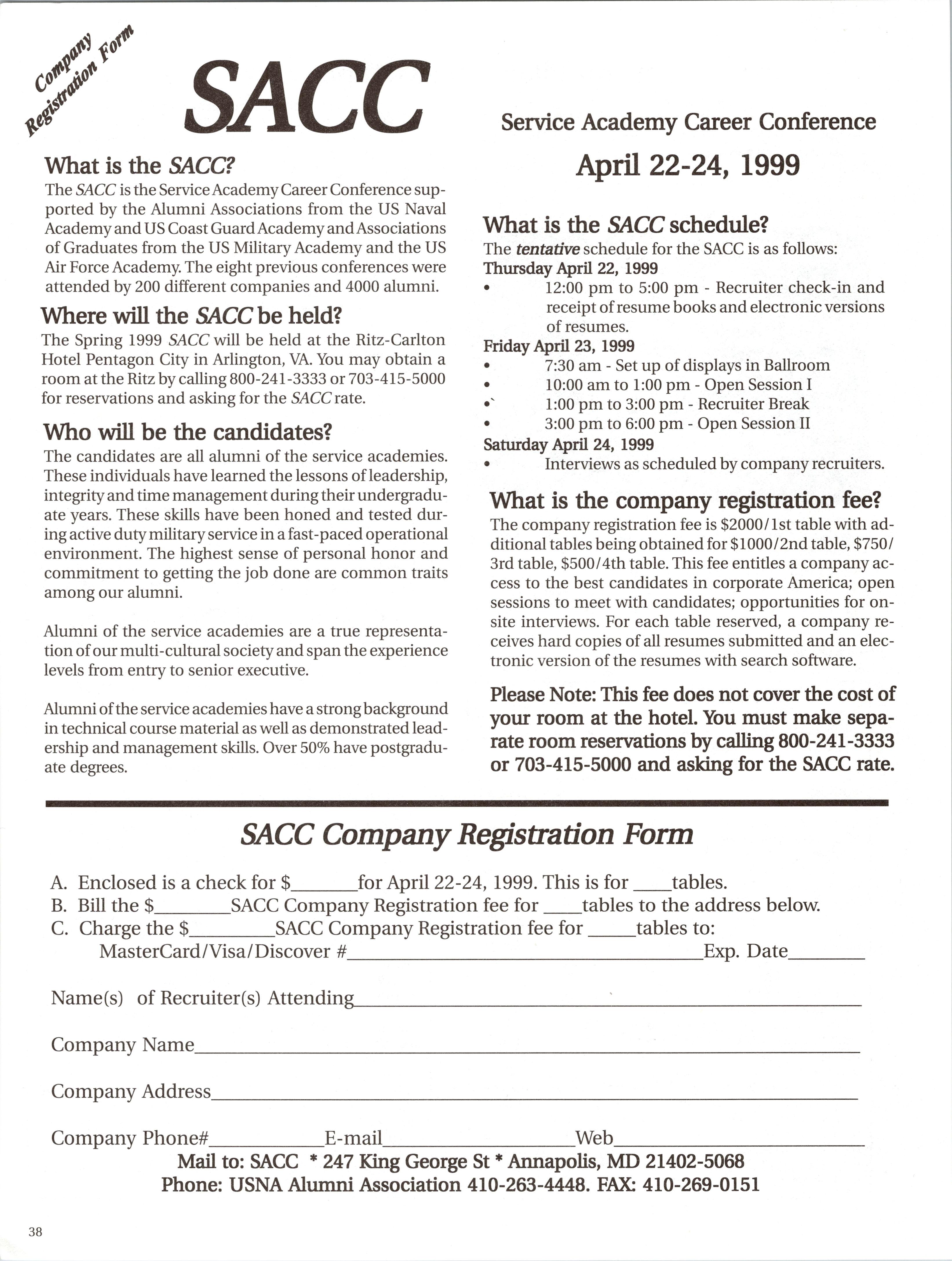 First, thanks for the feedback. A great number of grads have taken the time to pass on their thoughts on a variety of subjects, along with some “warm fuzzies.” Especially helpful has been numerous inputs on potential candidatesyou are the best judges of who can succeed here, so keep sending us names.