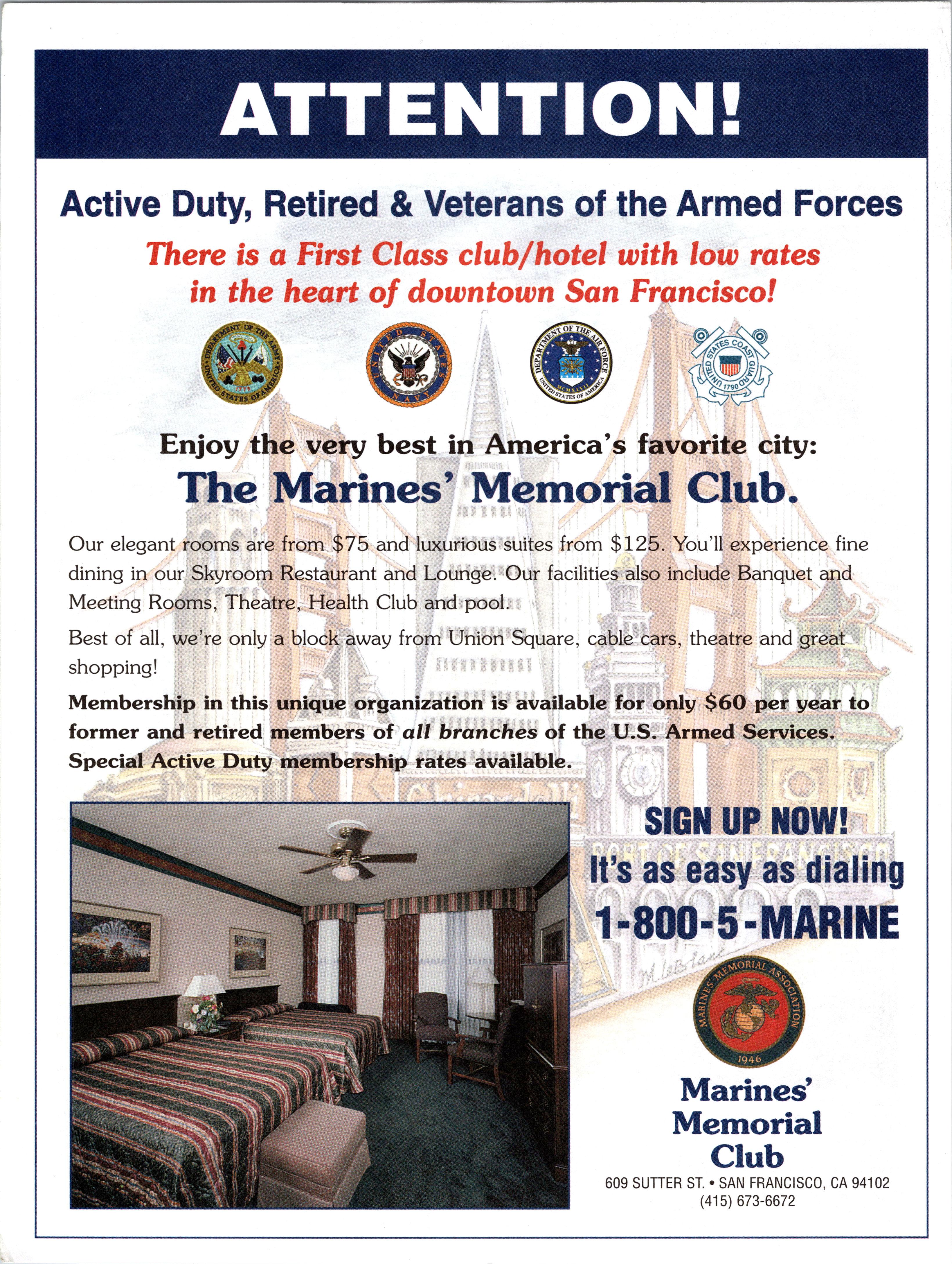 SIGN UP NOW! Marines’ Memorial Club 609 SUTTER ST. SAN FRANCISCO, CA 94102 (415) 673-6672