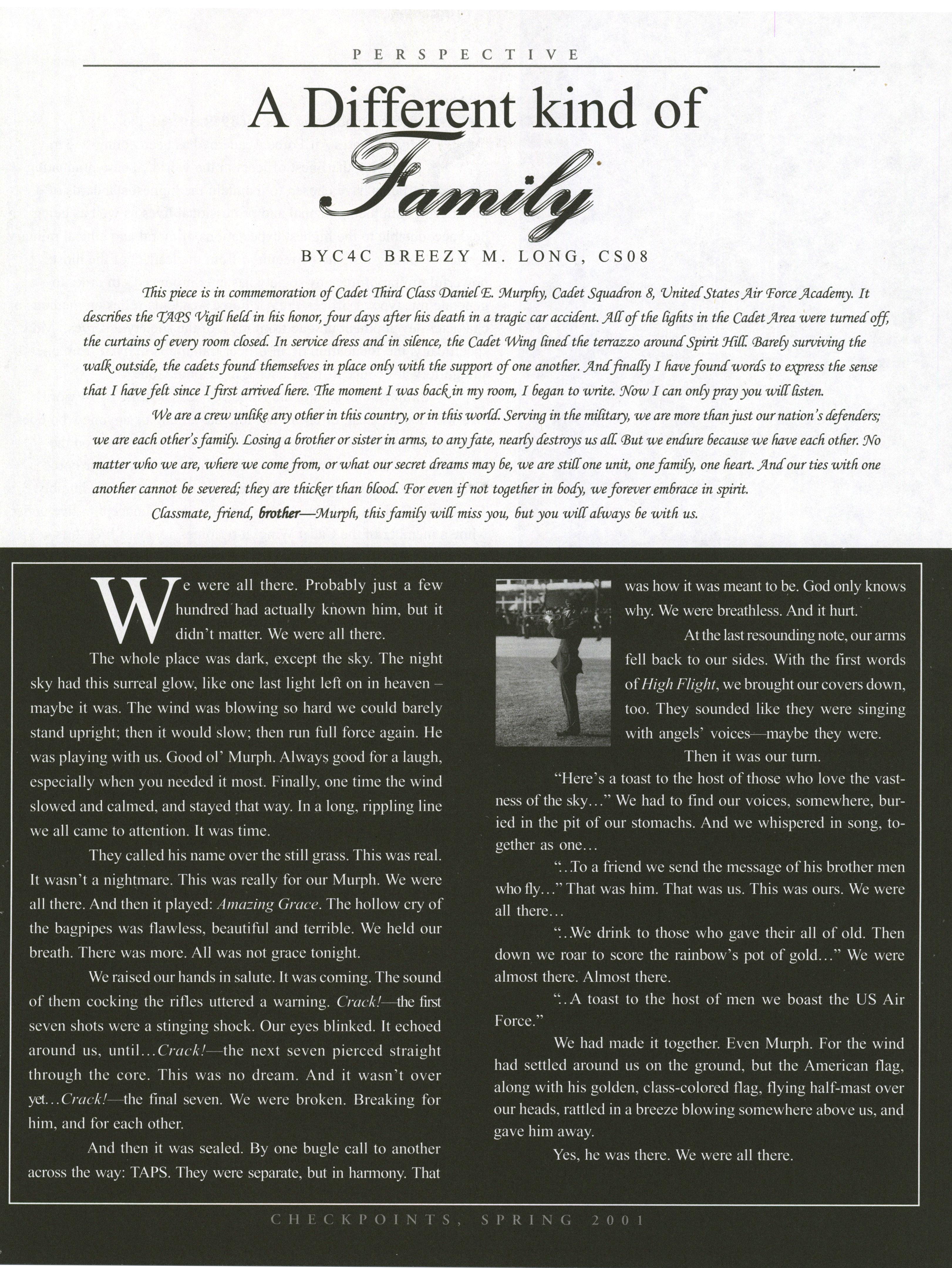 Keeping it in perspective: A few words for the Class of2001 and anyone else who cares to listen from 2nd Lt. Jeremy Eggers.