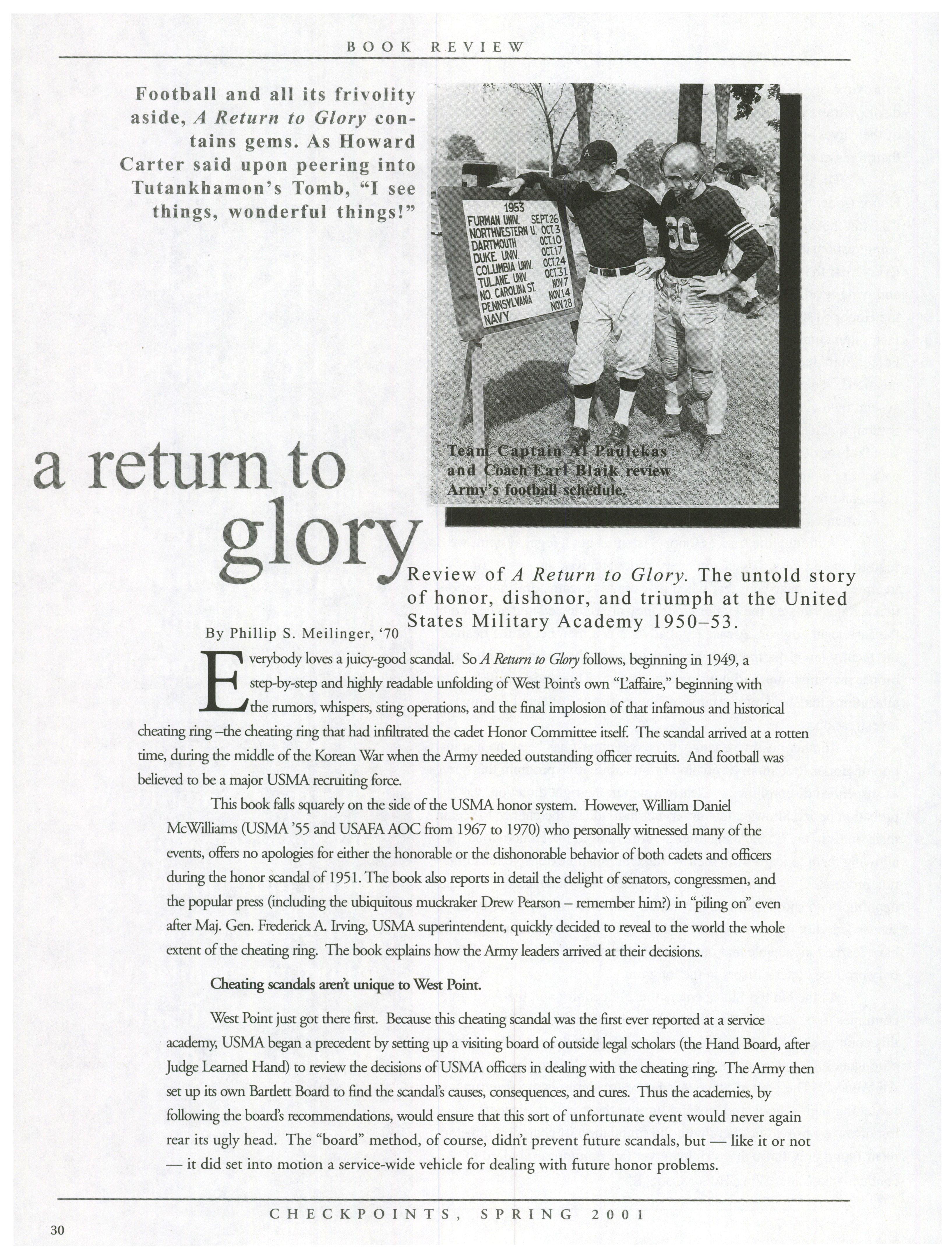 Every decade or so, something appears in CHECKPOINTS that induces me to respond. In this case, it was the letter provided by John J. Gallagher (’70).