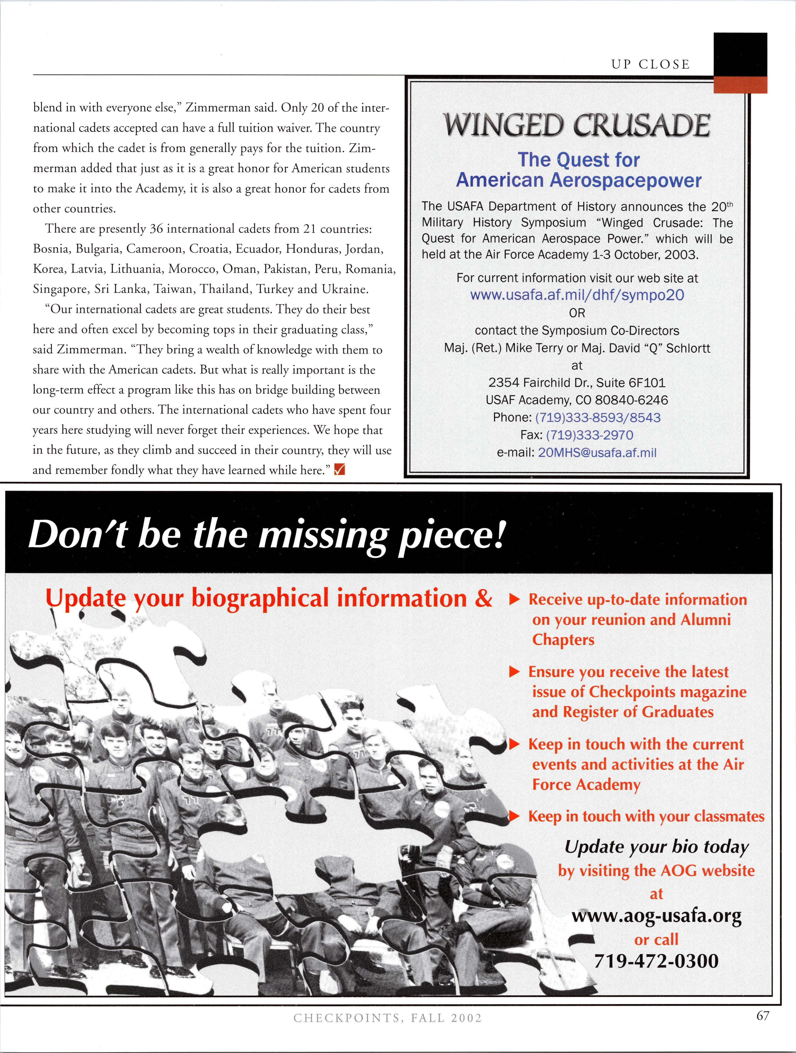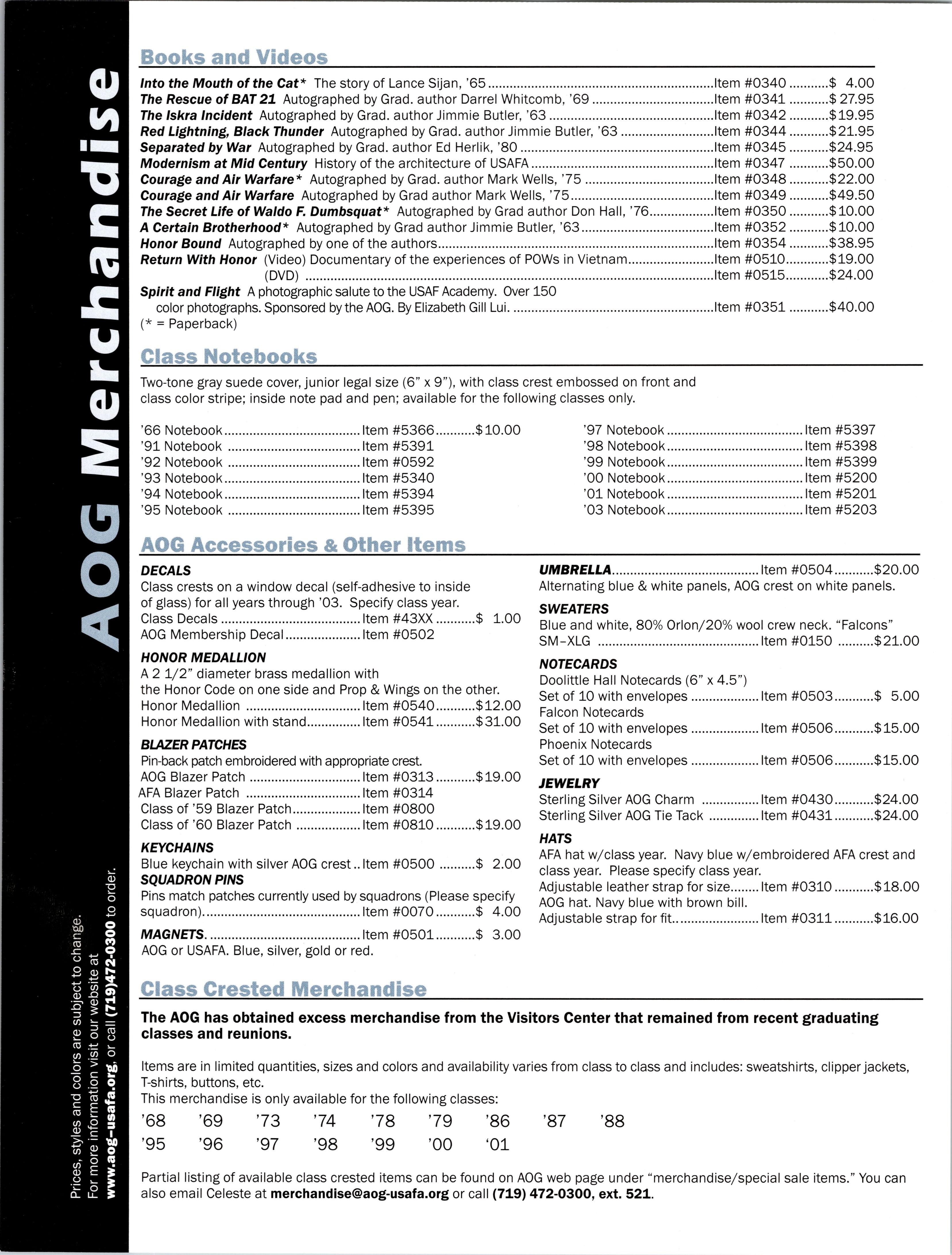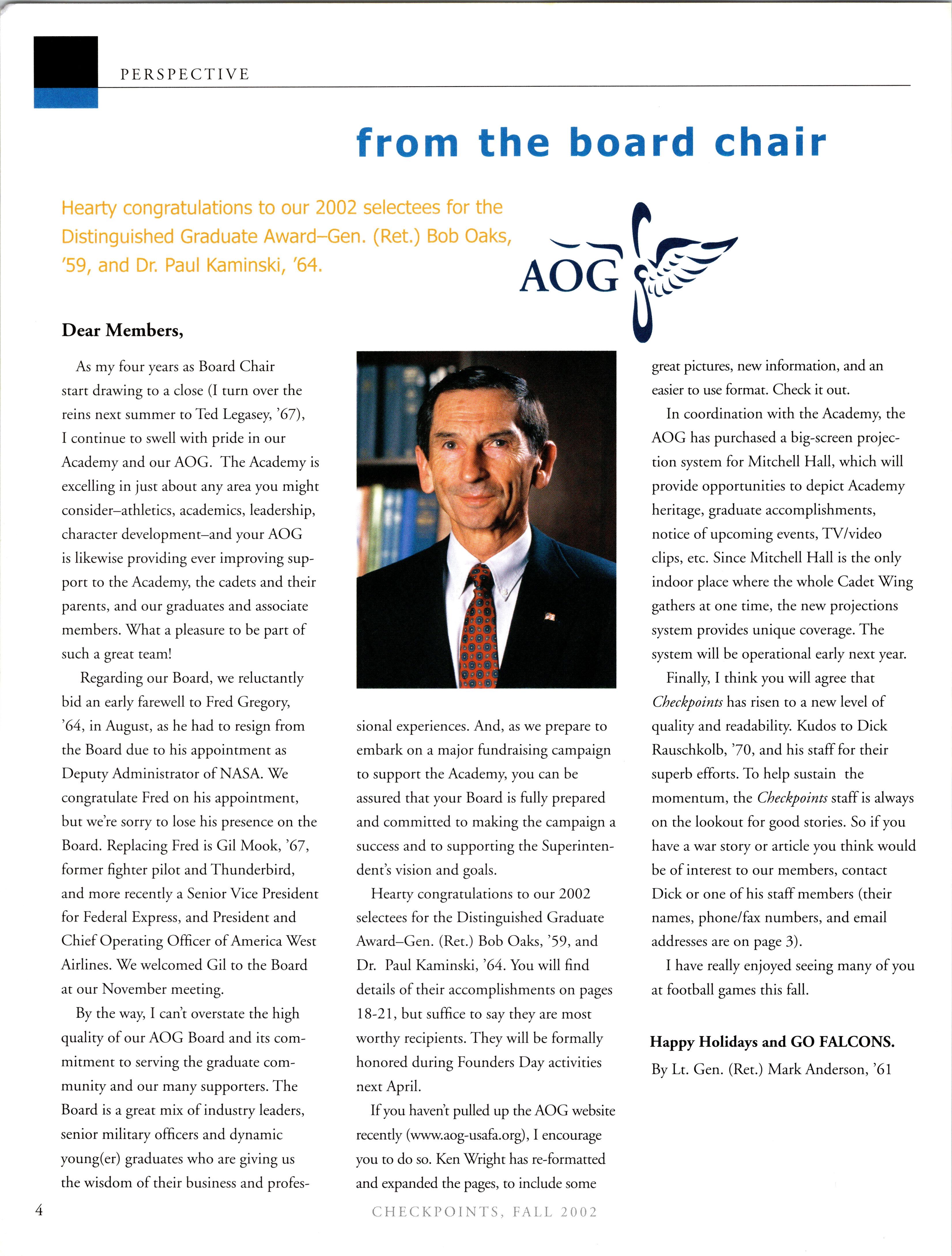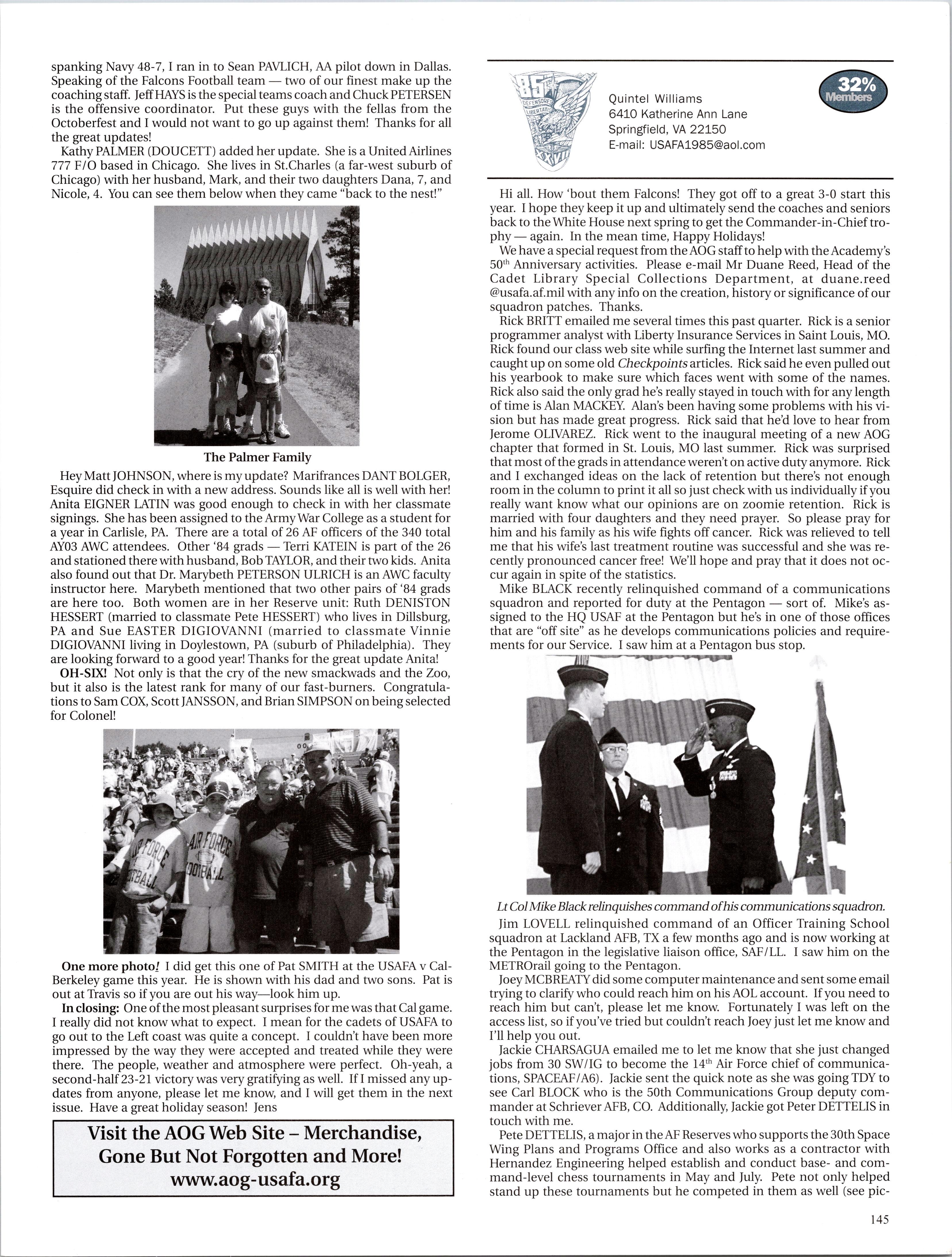 Visit the AOG Web Site www.aog-usafa.org Send the AOG your new address now.