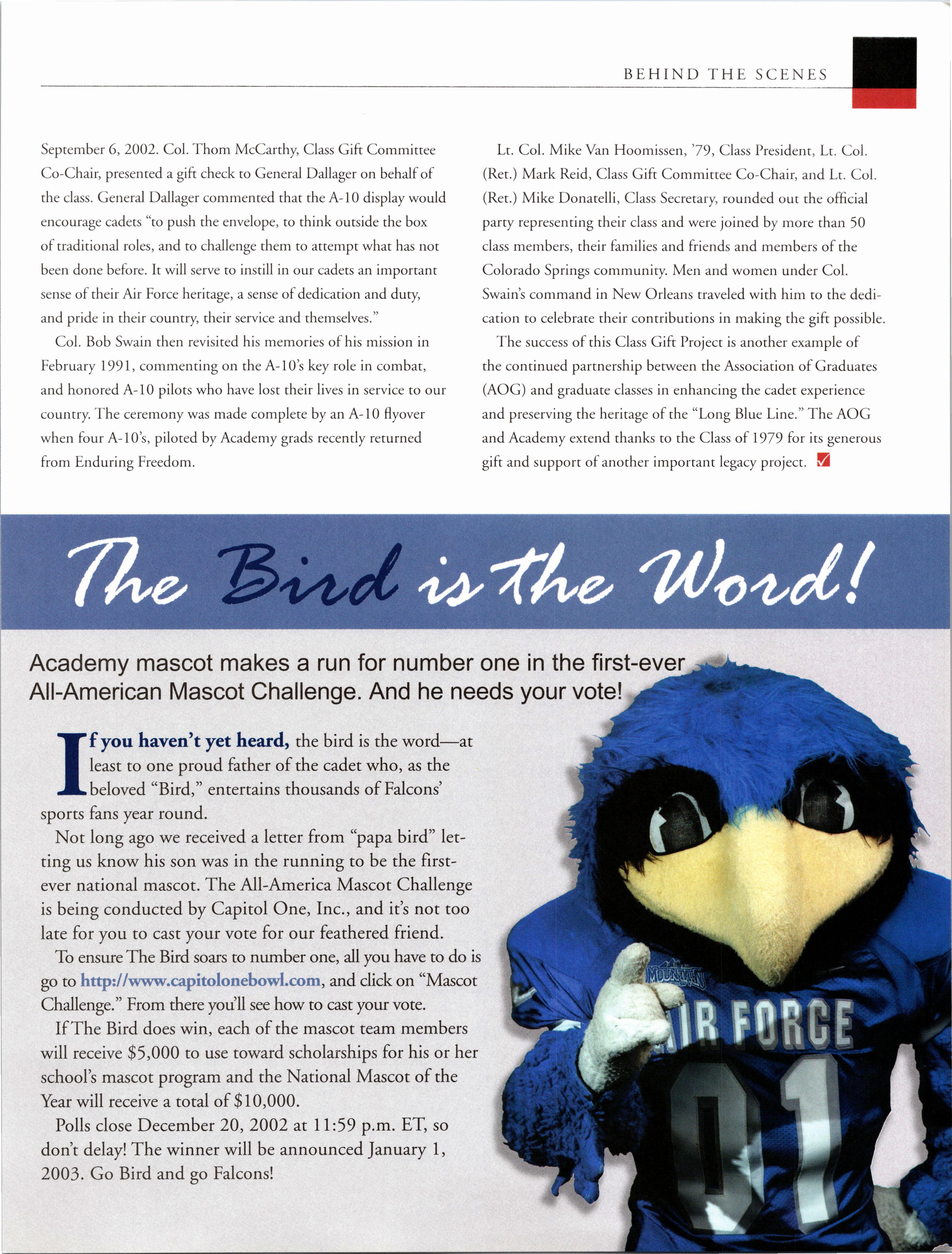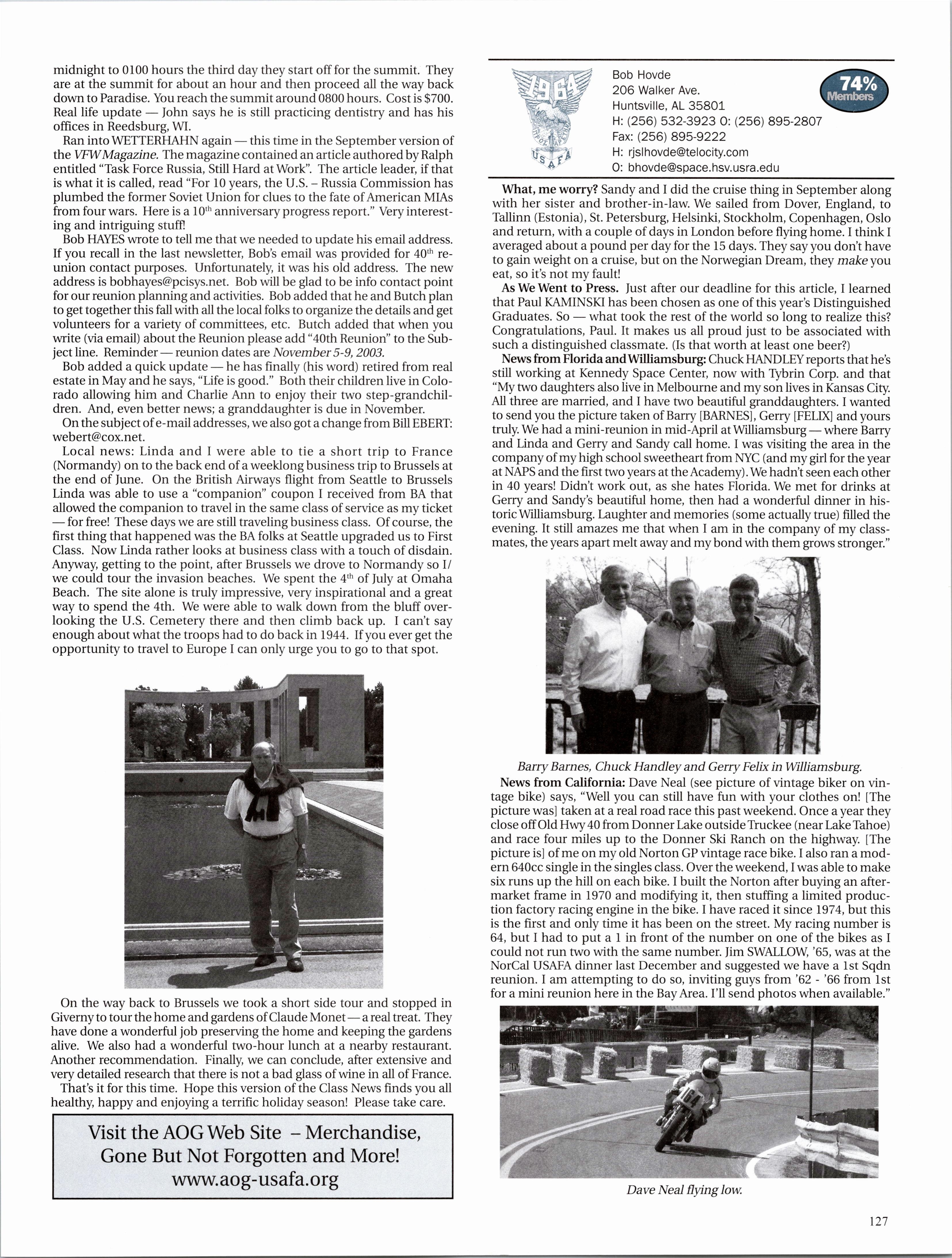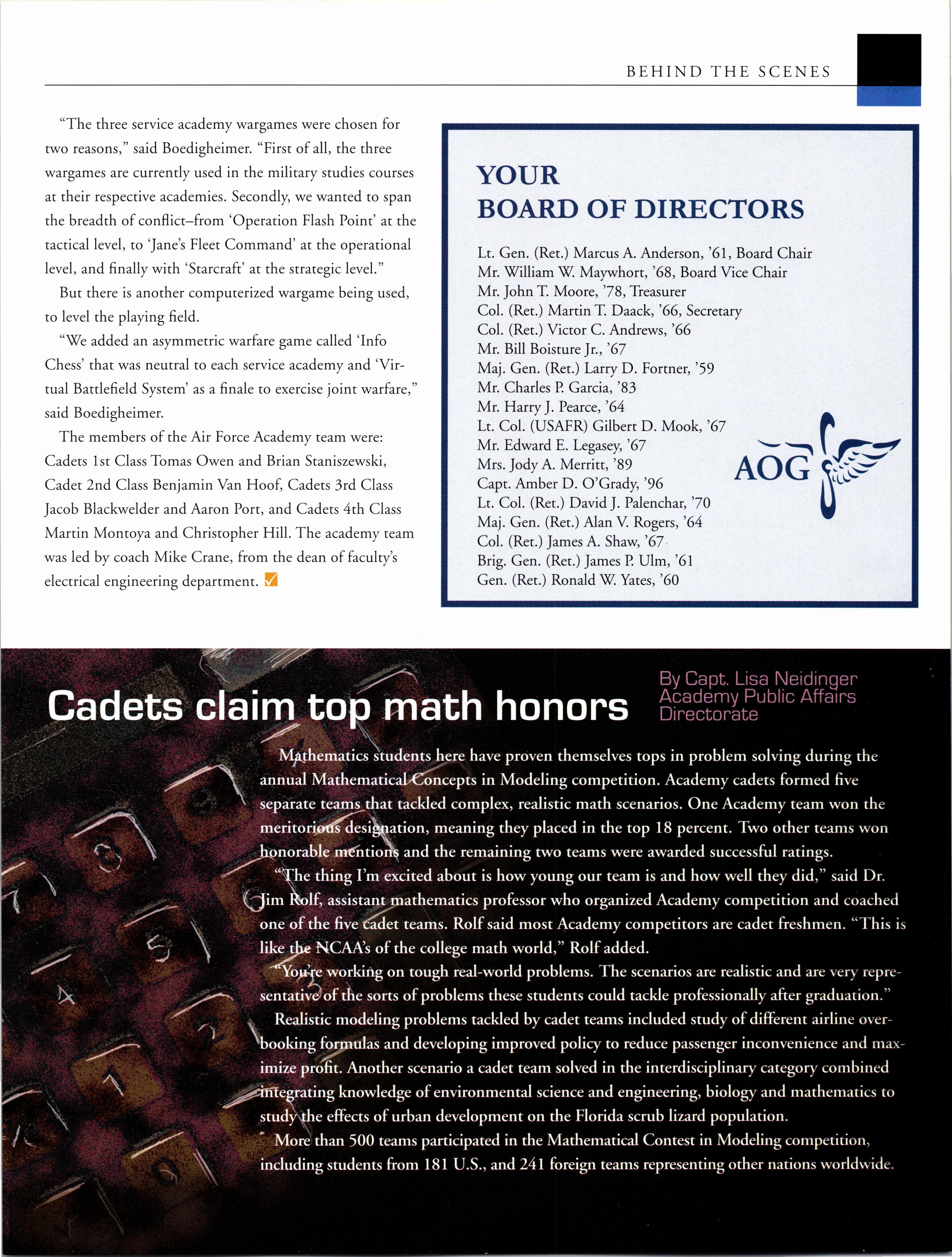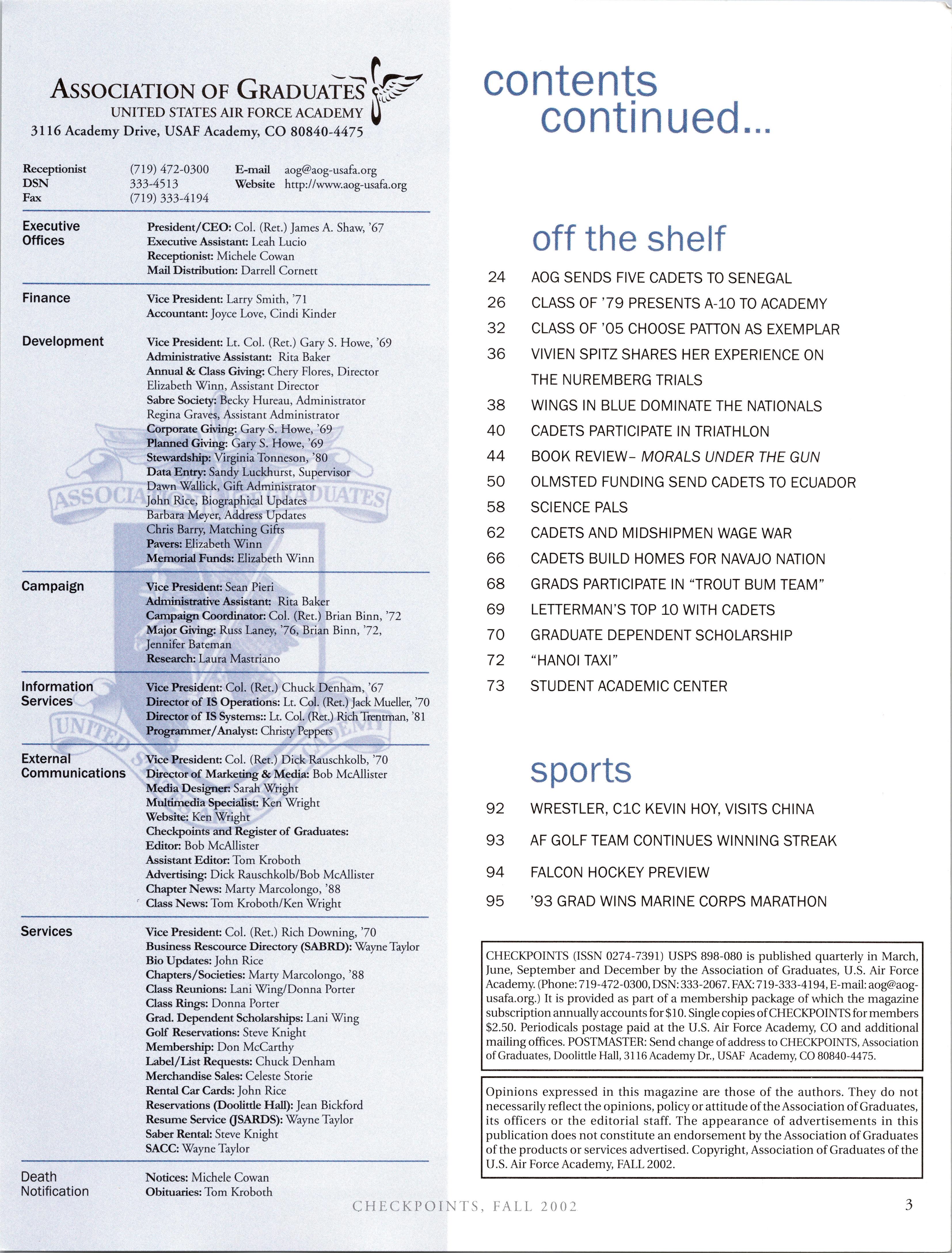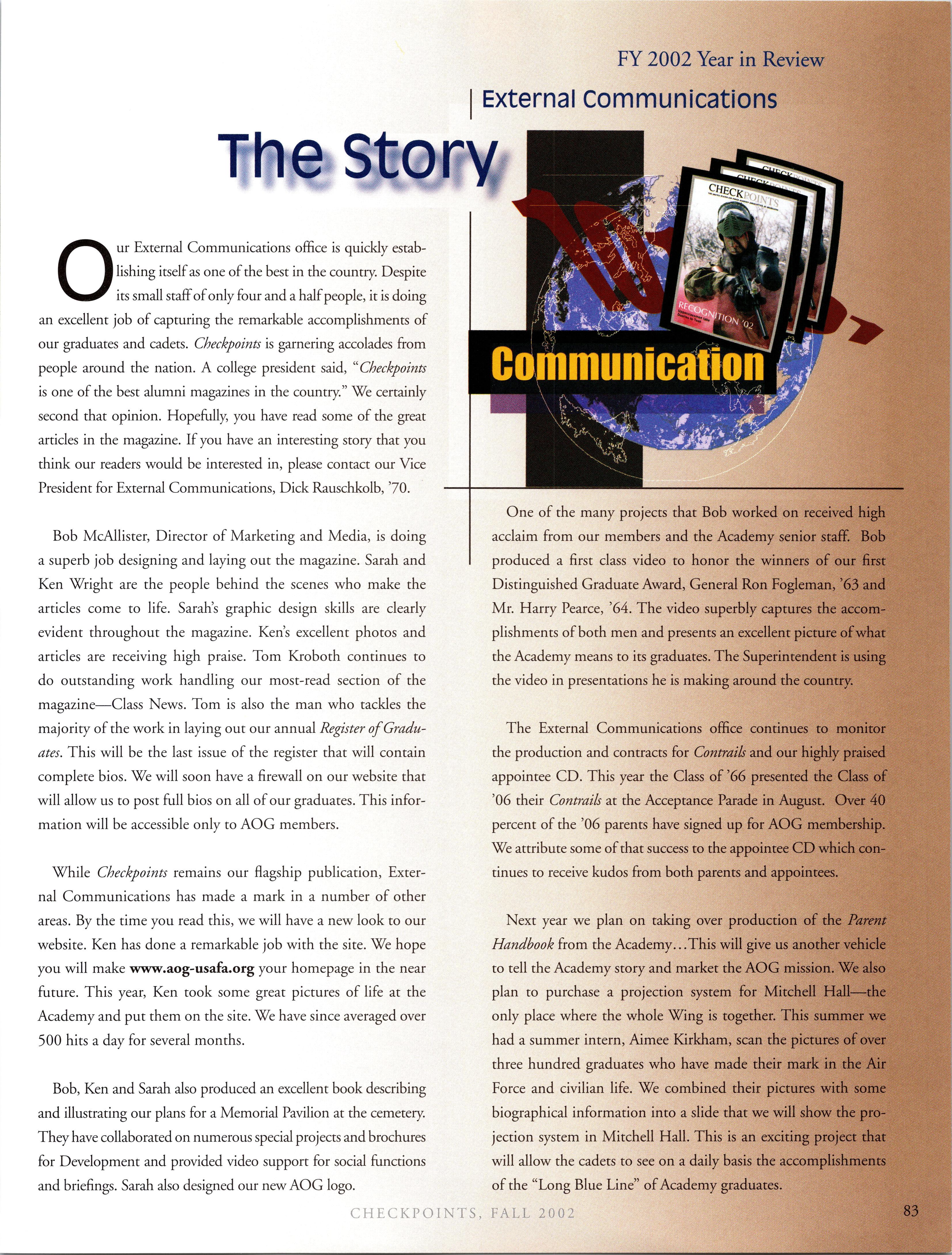 Visit the AOG Web Site www.aog-usafa.org Send the AOG your new address now.