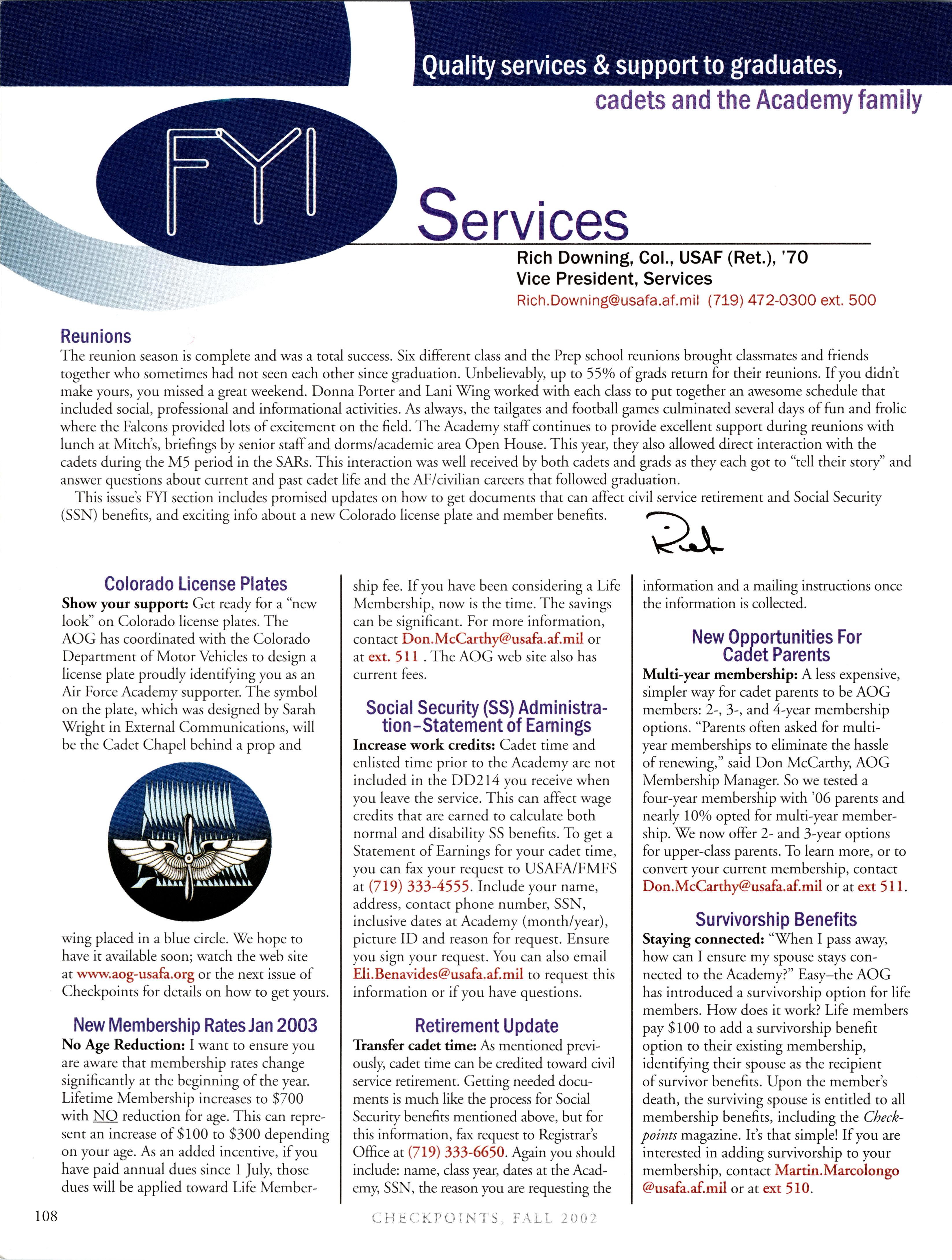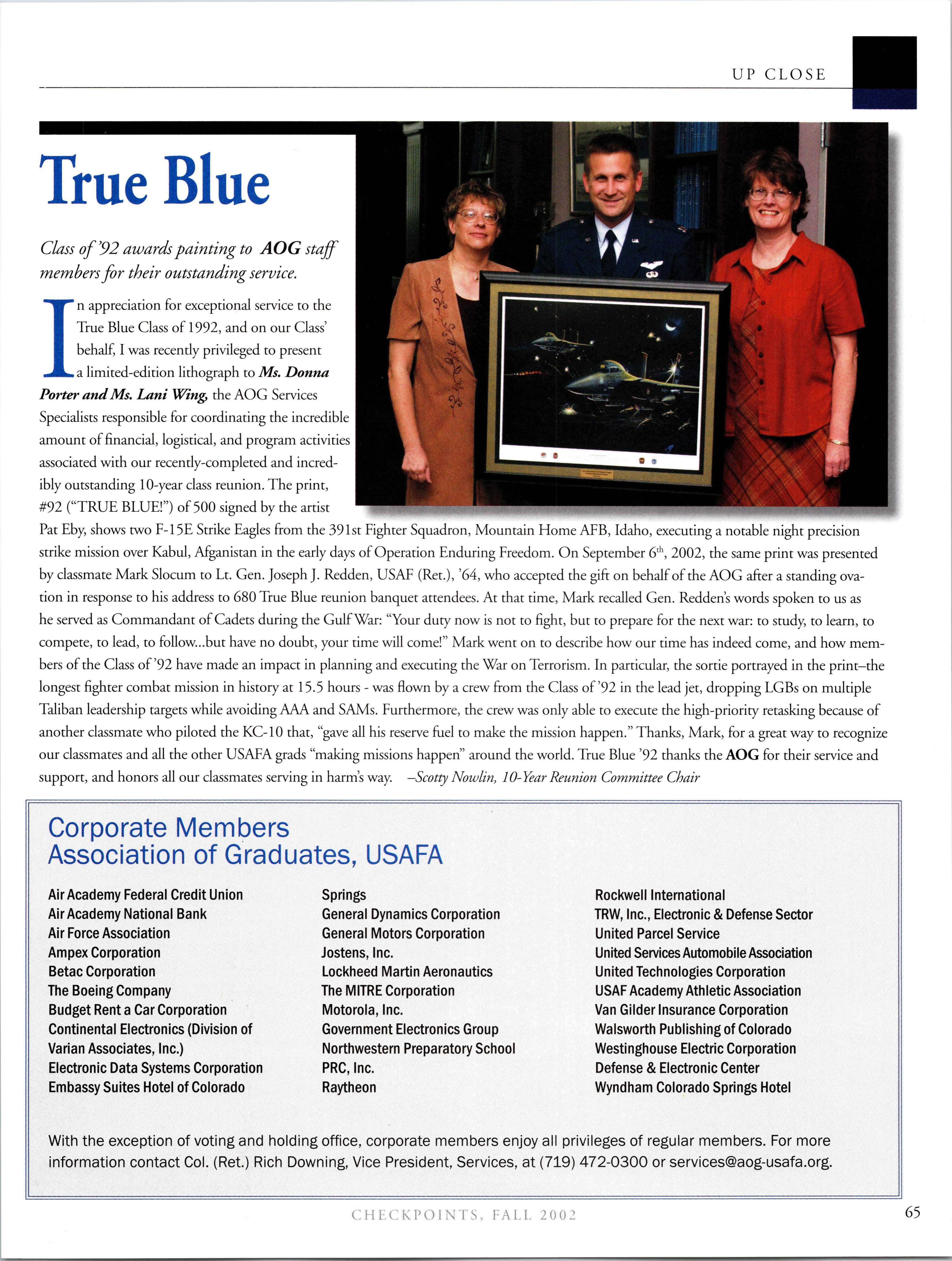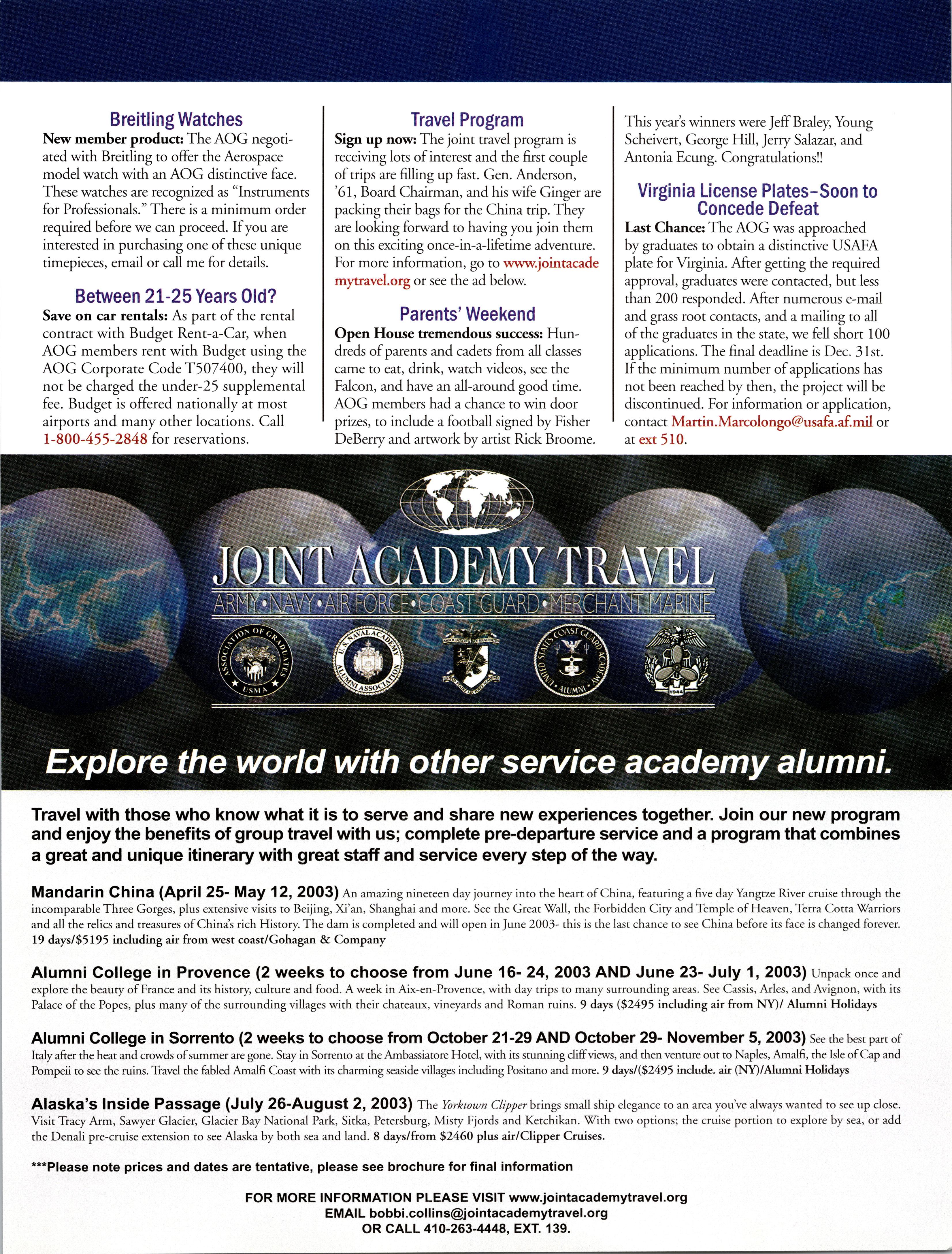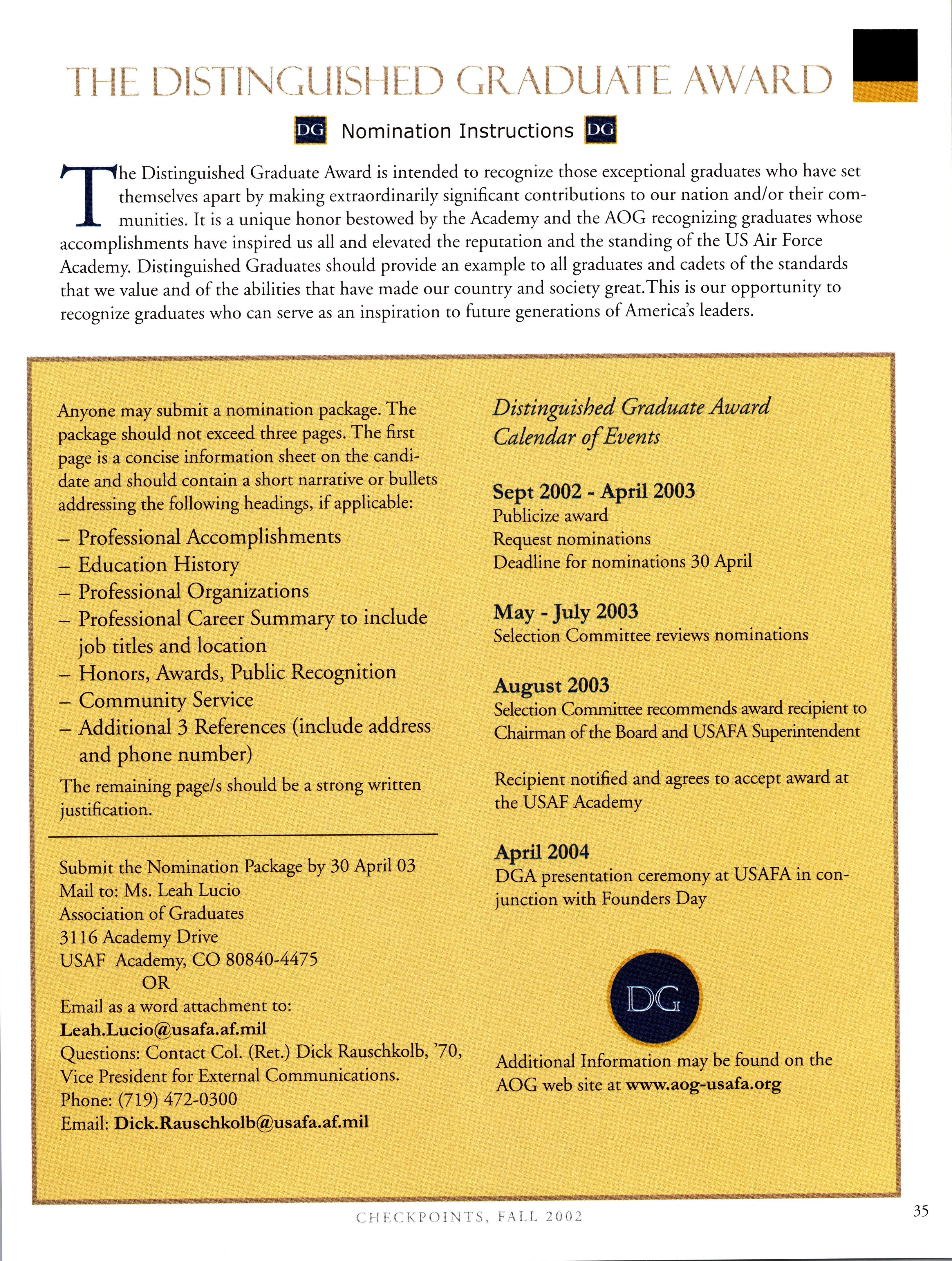 Visit the AOG Web Site www.aog-usafa.org Send the AOG your new address now.