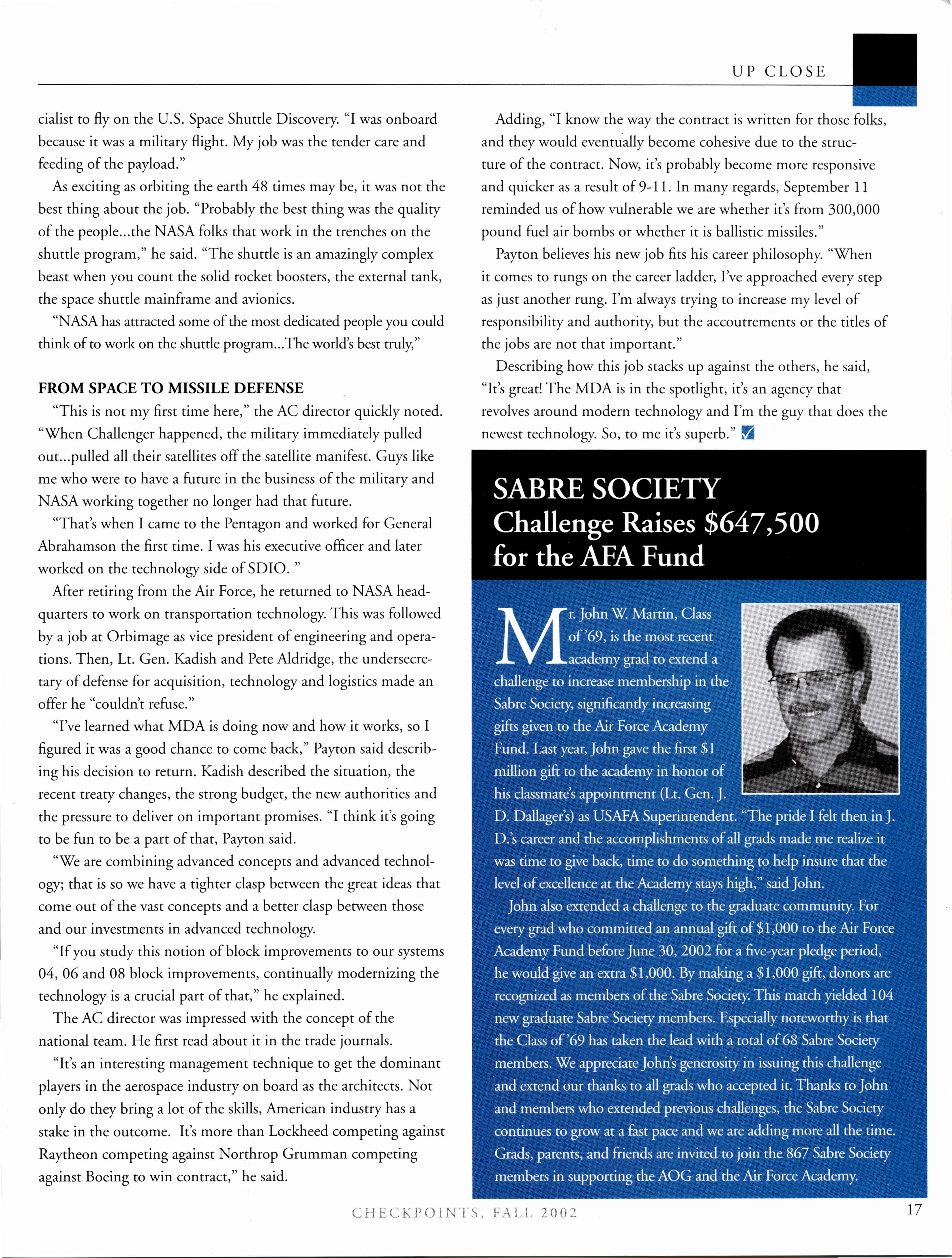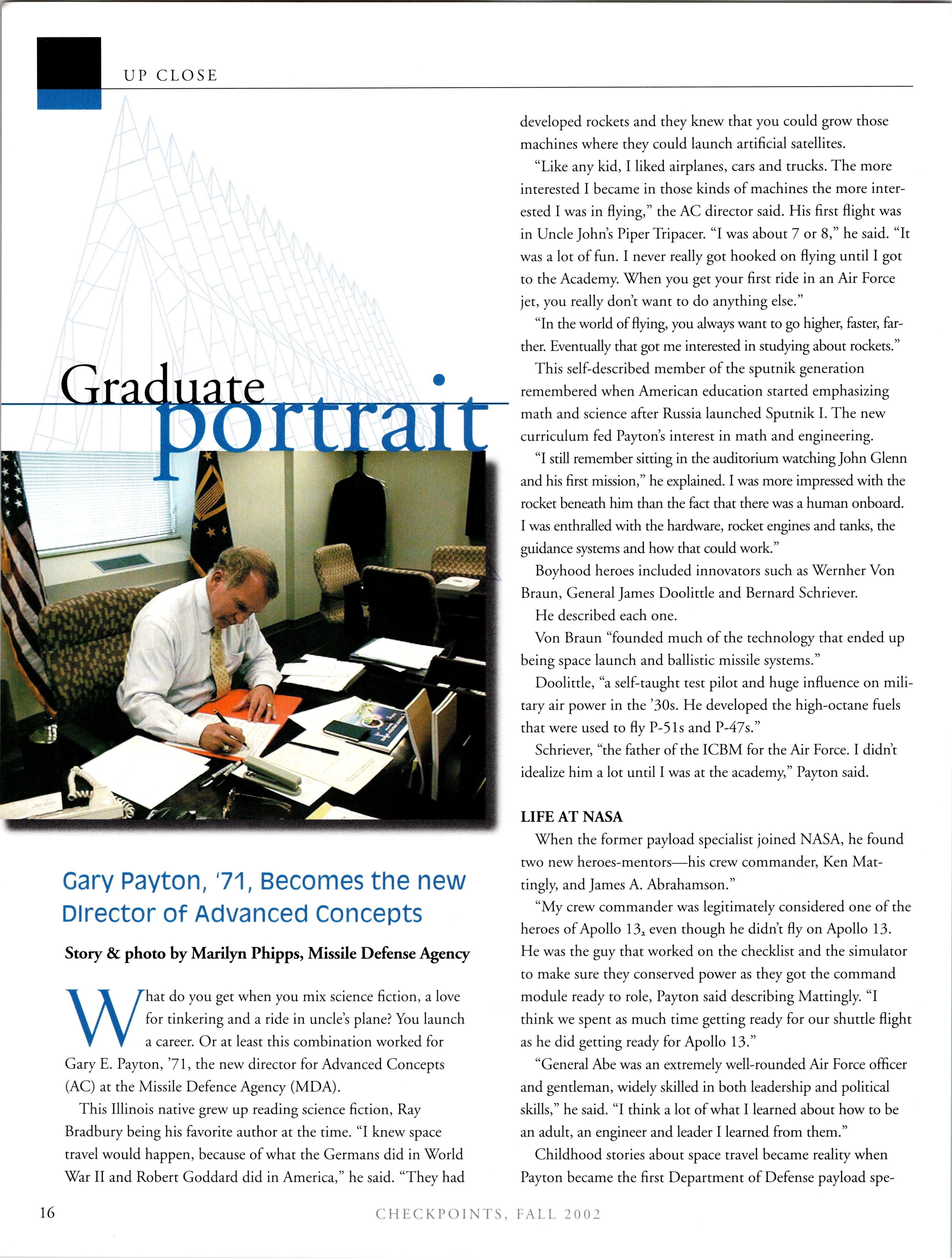 Gary Payton, ’71, becomes the new Director ofAdvanced Concepts at the Missile Defense Agency.