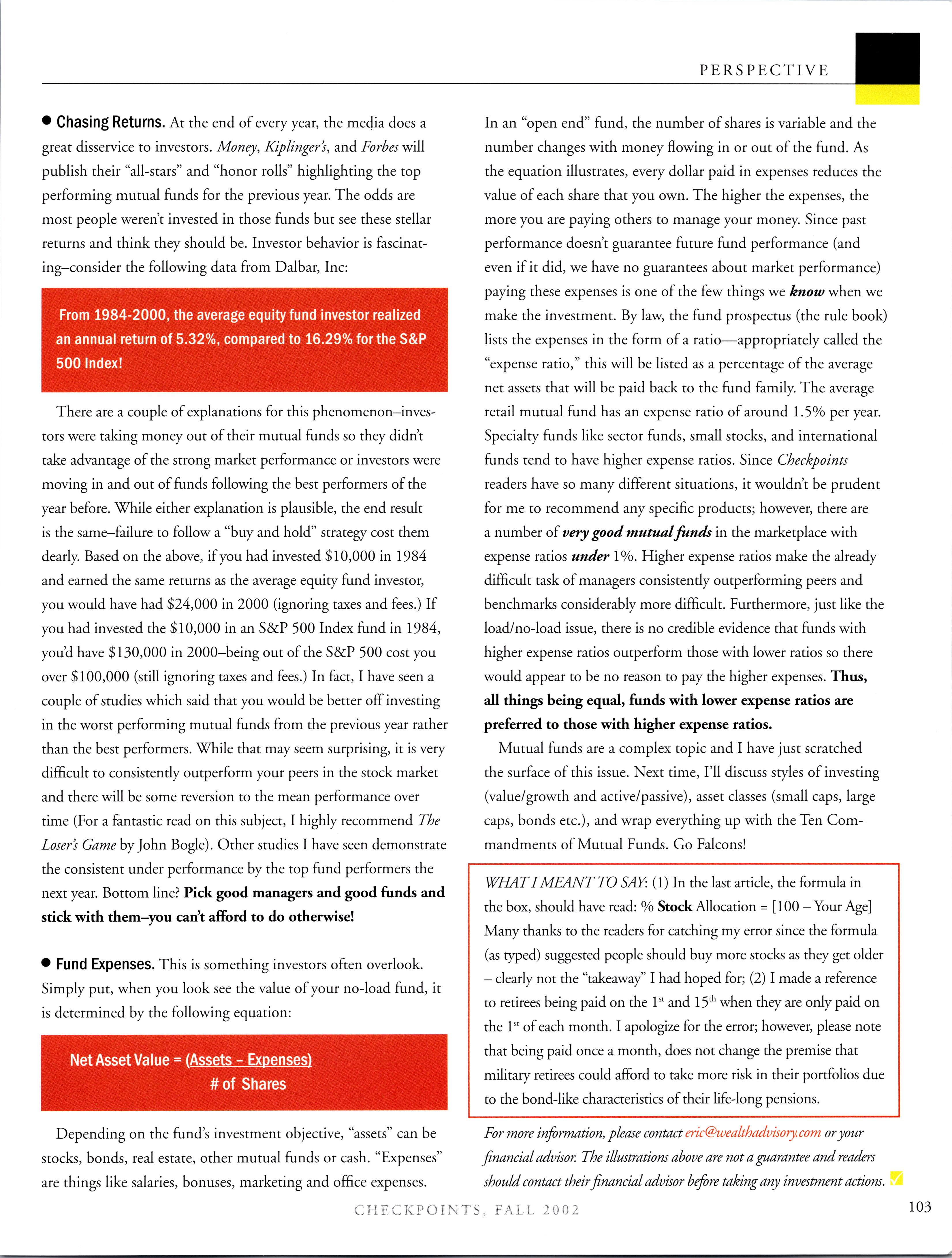 C H E C K P O INI’S, F ALL 2002 2 Volume 31, number 3