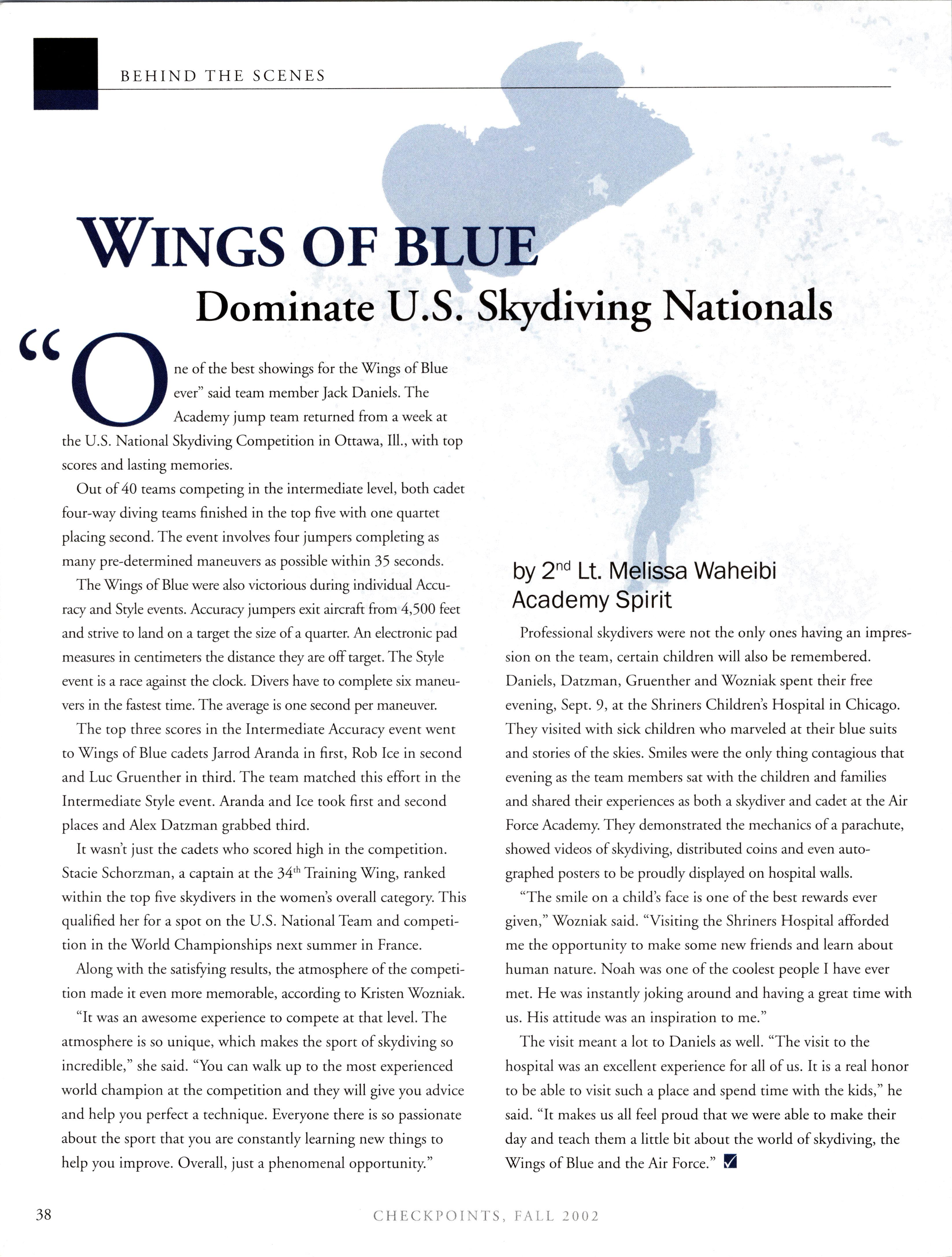 r * * * CHECKPOINTS ' w* ON THE COVER: The Bird Goes National Photo By Ken Wright