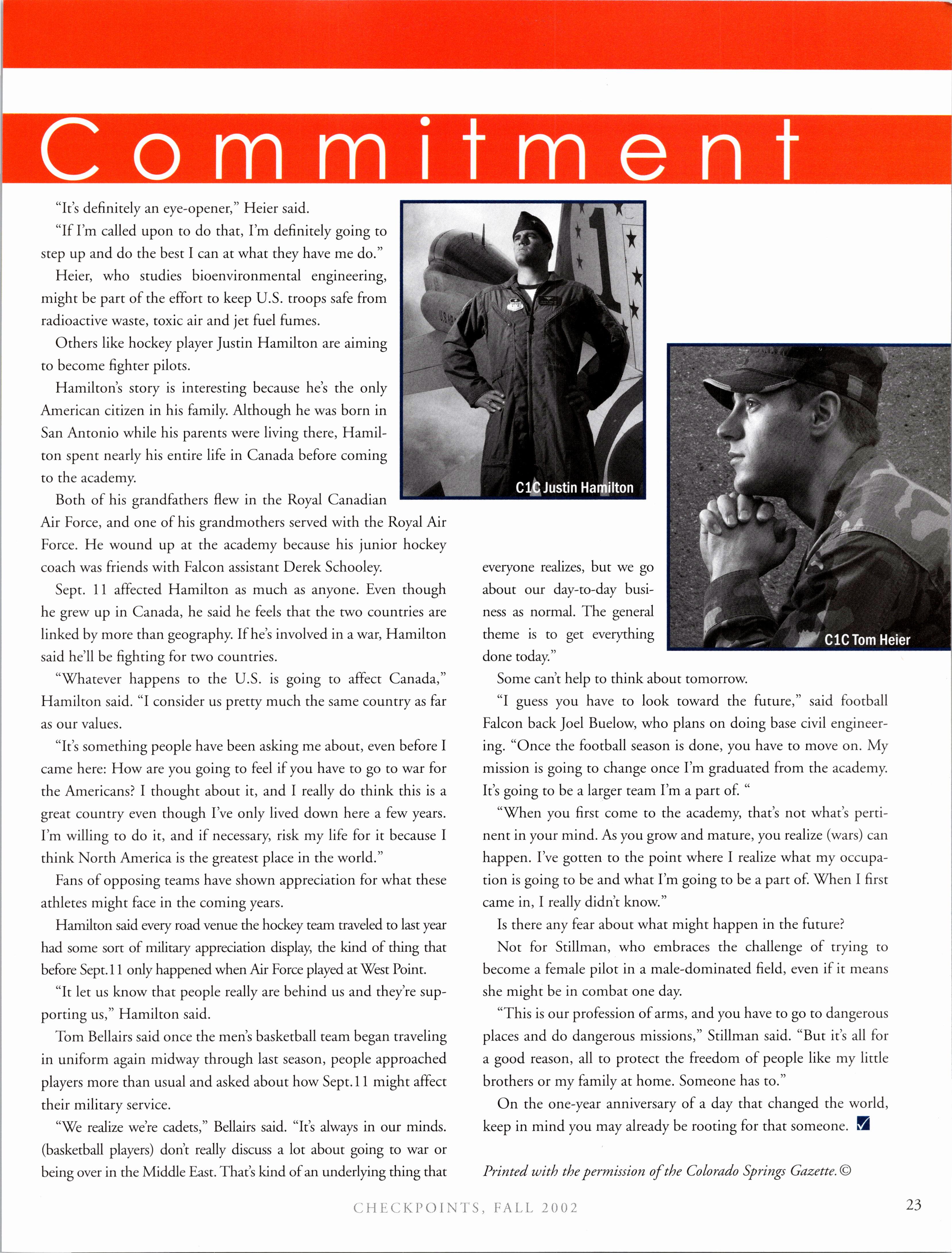 Senior athletes ponder the realities of a world that changed last Sept. 11th and know they may be sent to war.