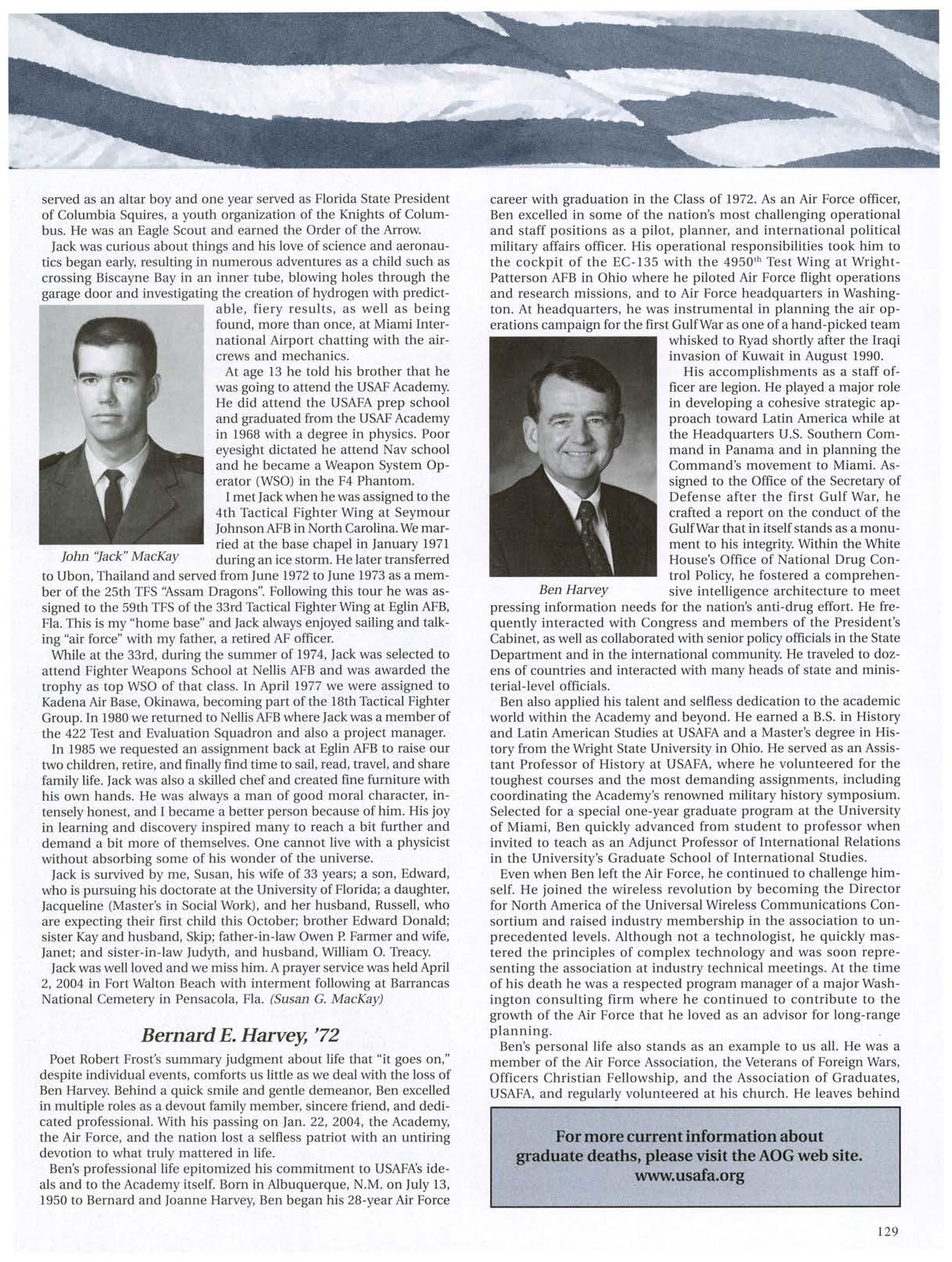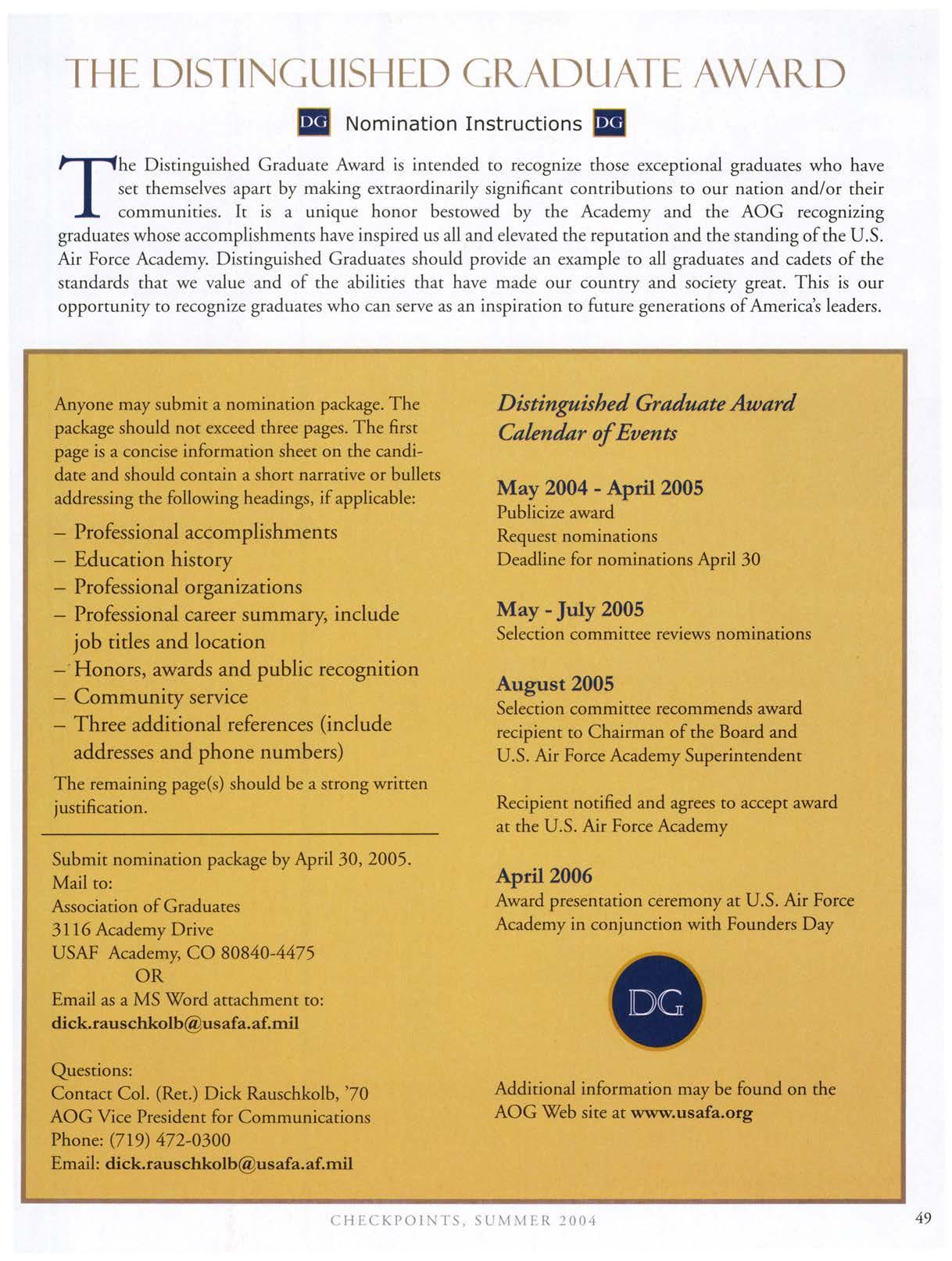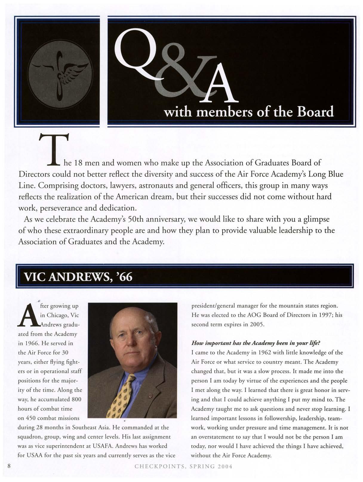 As we celebrate the Academy’s 50th anniversary, we would like to share with you a glimpse ofwho these extraordinary people are and how they plan to provide valuable leadership to the Association of Graduates and the Academy.