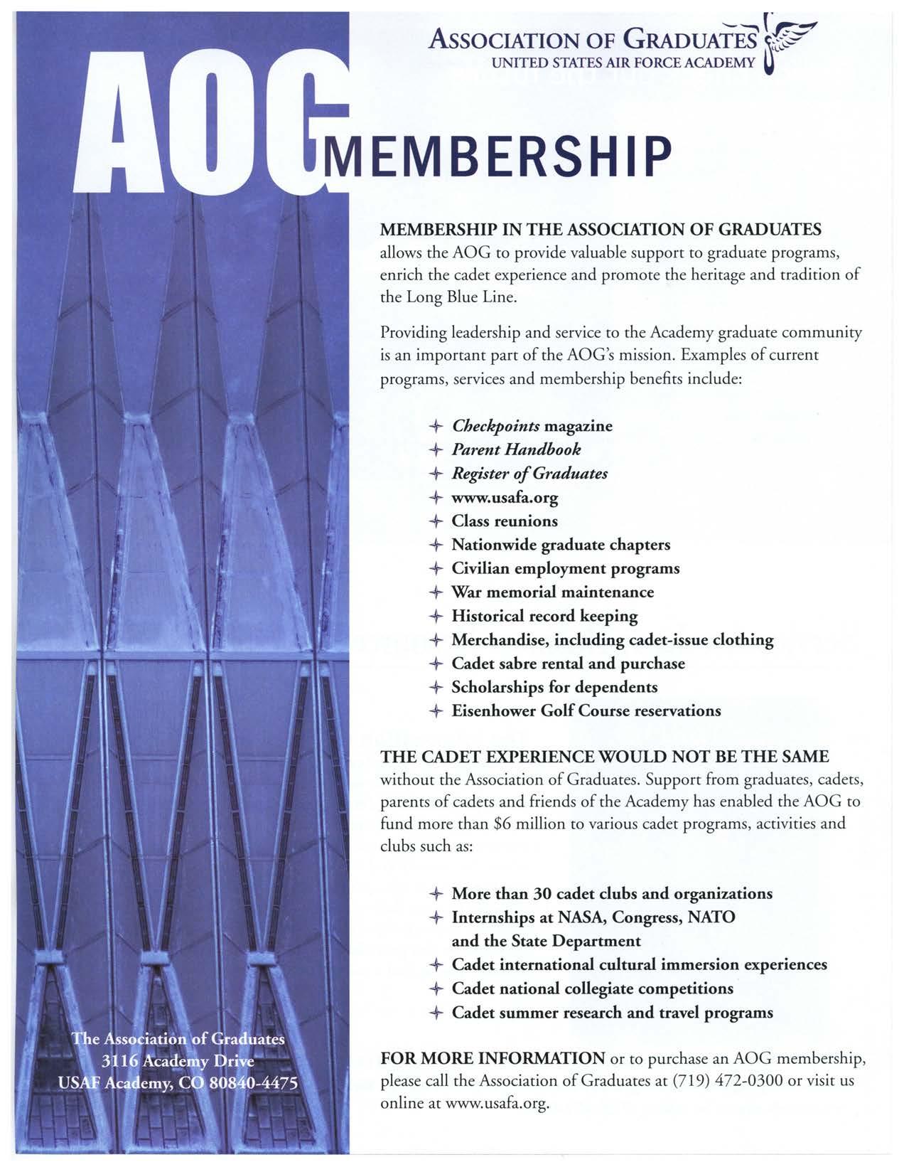 for the AOG to “hear from” its membership. I agree, and I pledge that we will continue to pursue these objectives. The Graduate Leadership Conference is clearly an important step forward and we will take another big step in October when we bring the new AOG Web site online.