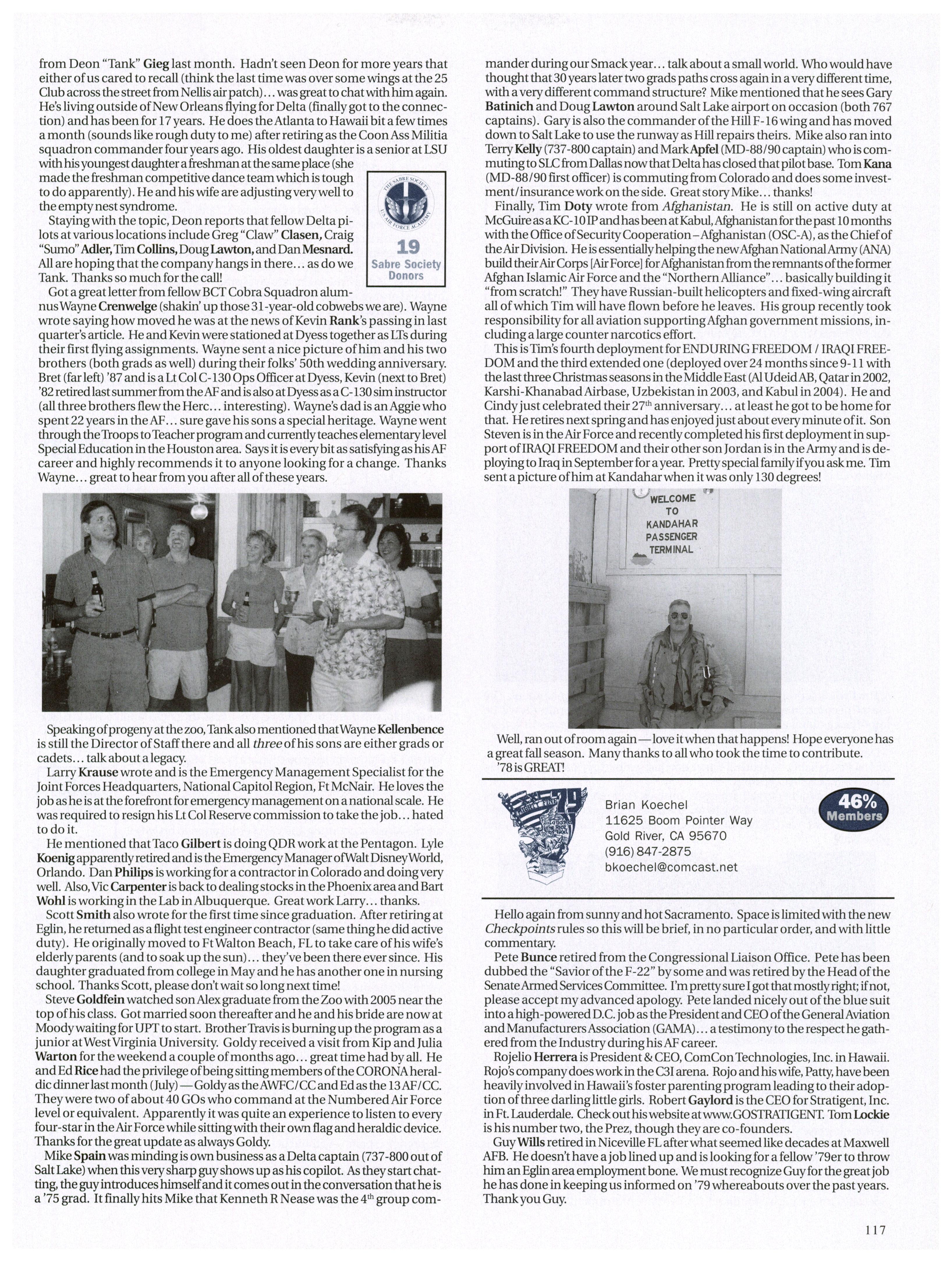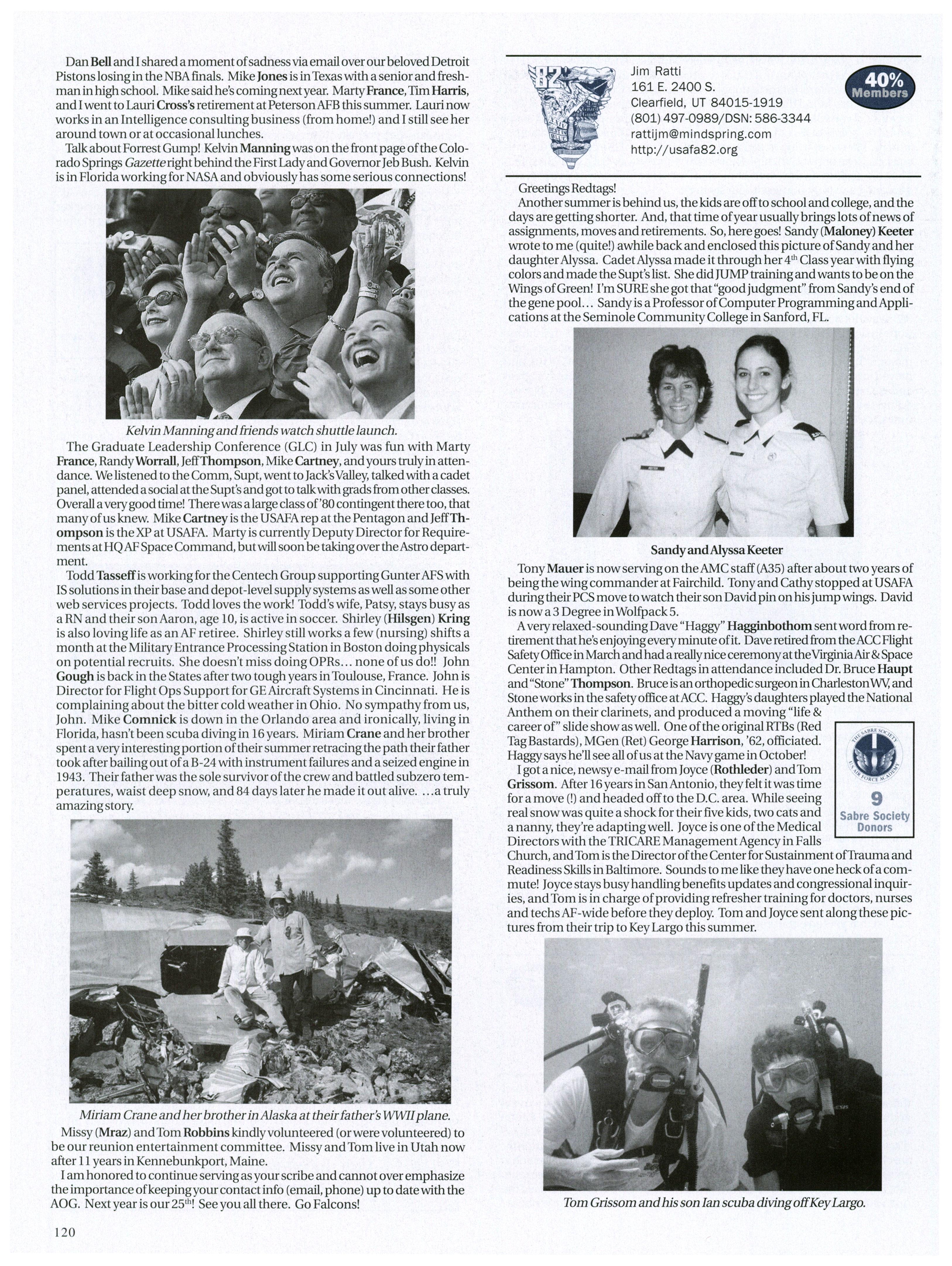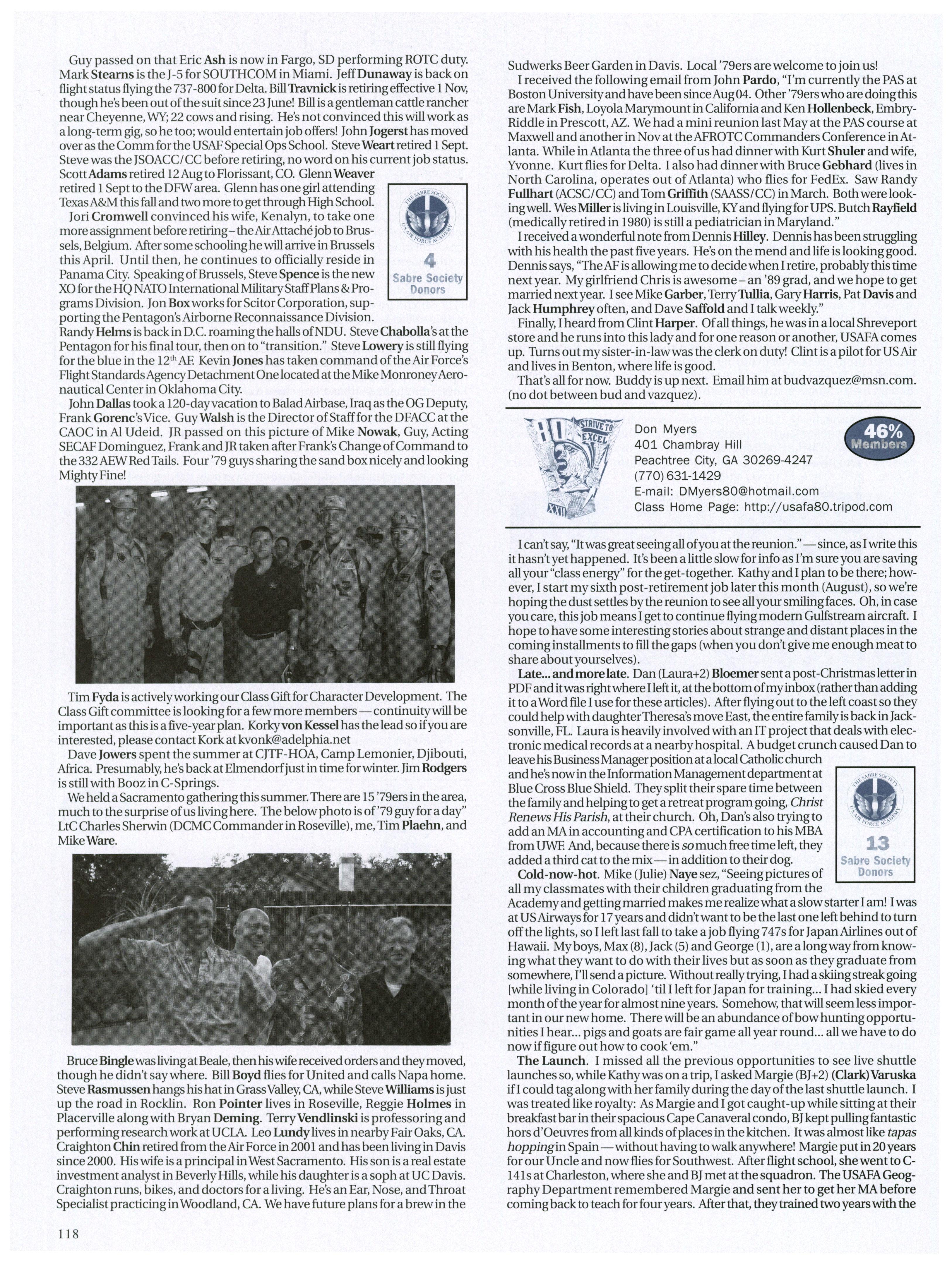 Rumorhasitthat more than a fewofour classmates are backin the Colorado area. Carrie Wellman ran into Steve Brogan while in-processing at Buckley while Brandon Jones will be coachingUSAFA men’s soccer in the fall.