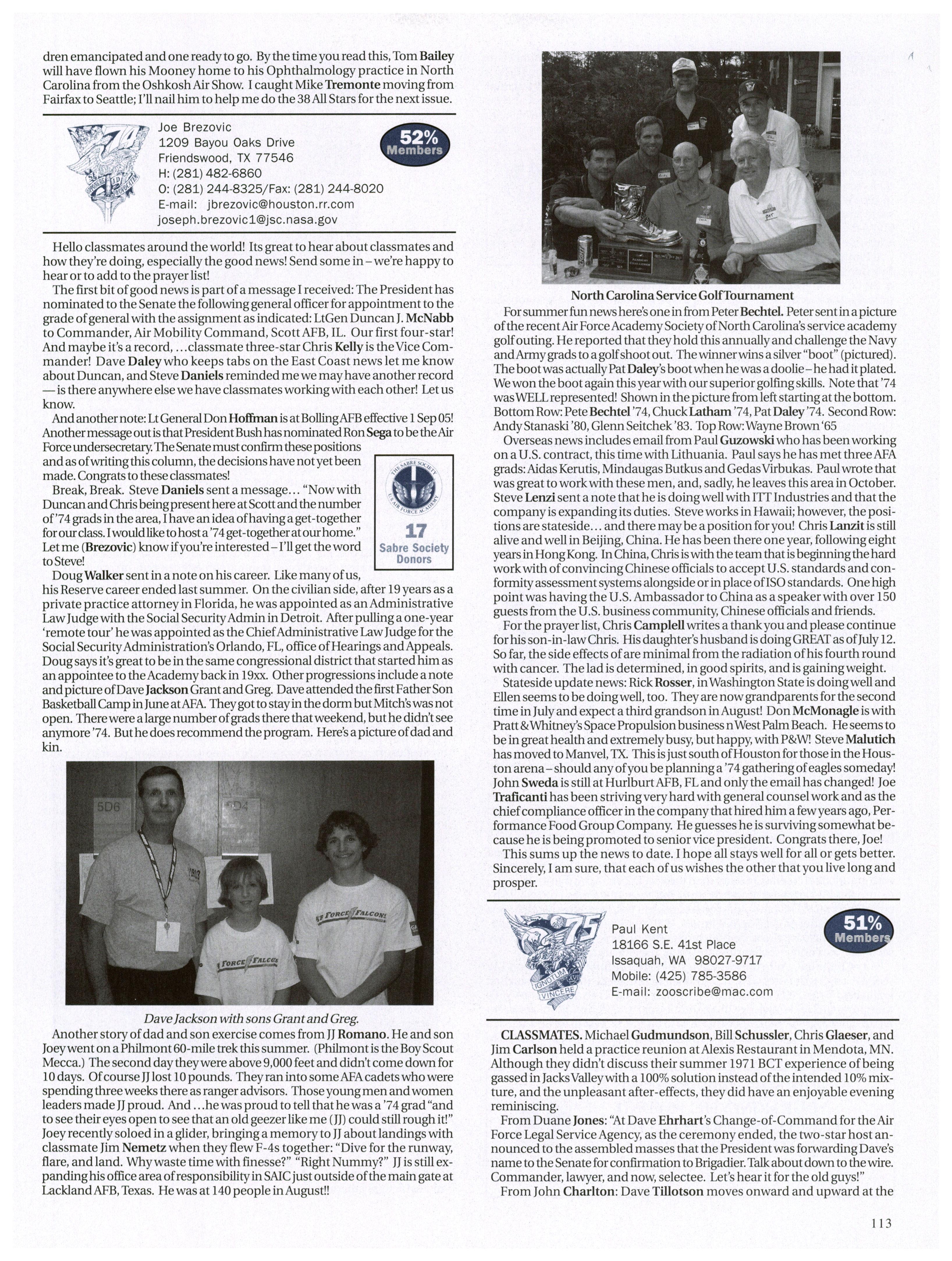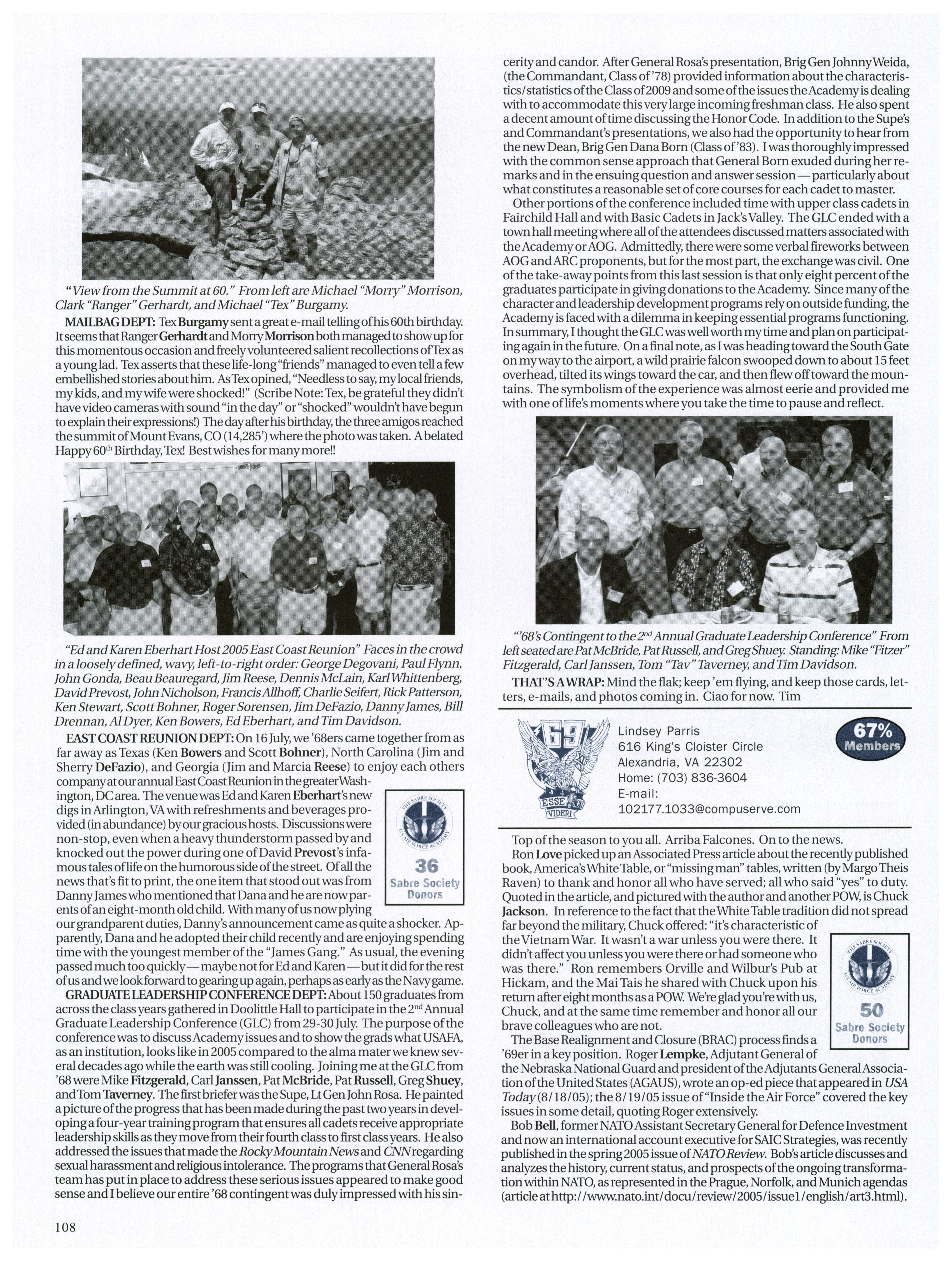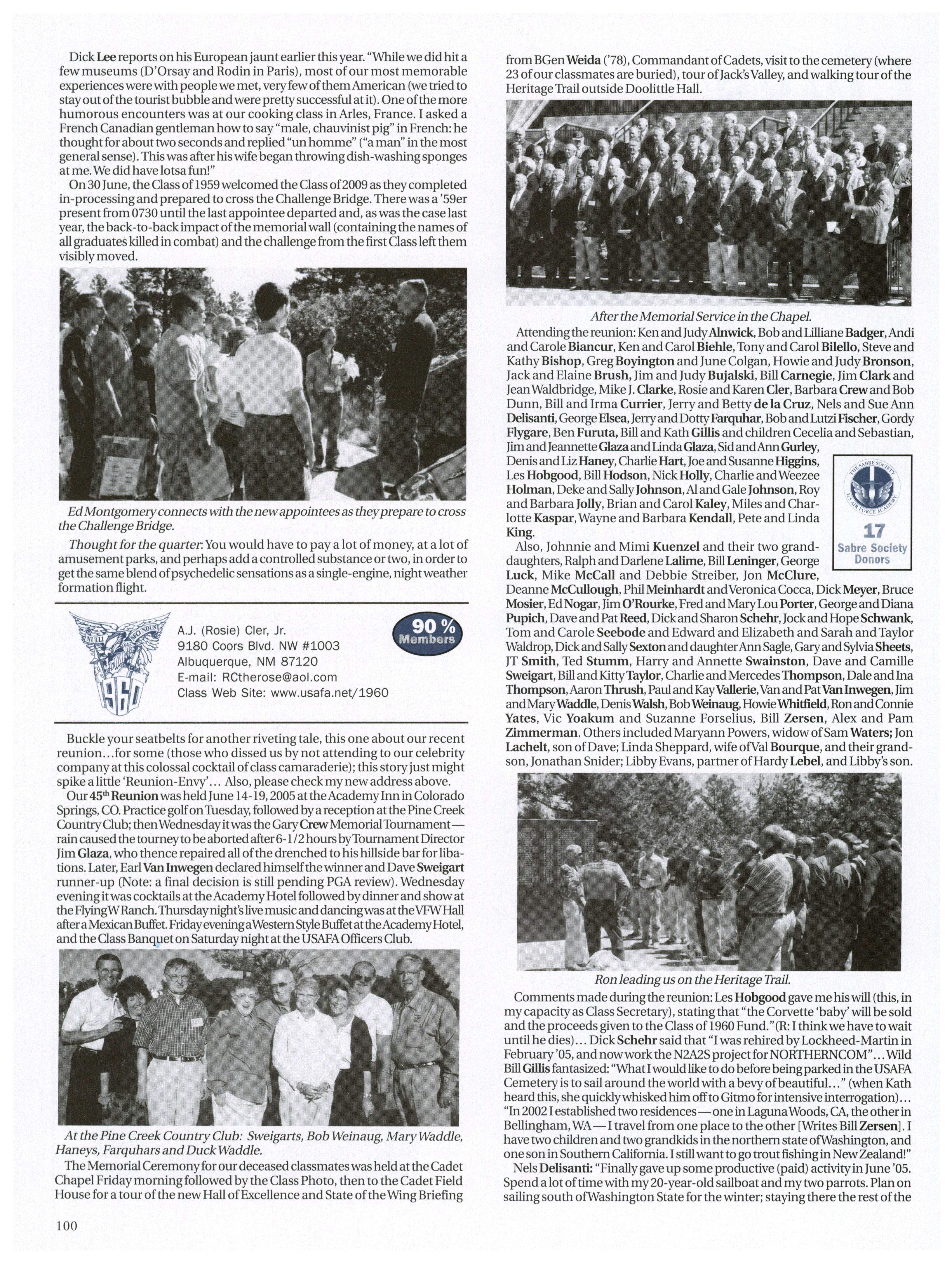 Rumorhasitthat more than a fewofour classmates are backin the Colorado area. Carrie Wellman ran into Steve Brogan while in-processing at Buckley while Brandon Jones will be coachingUSAFA men’s soccer in the fall.