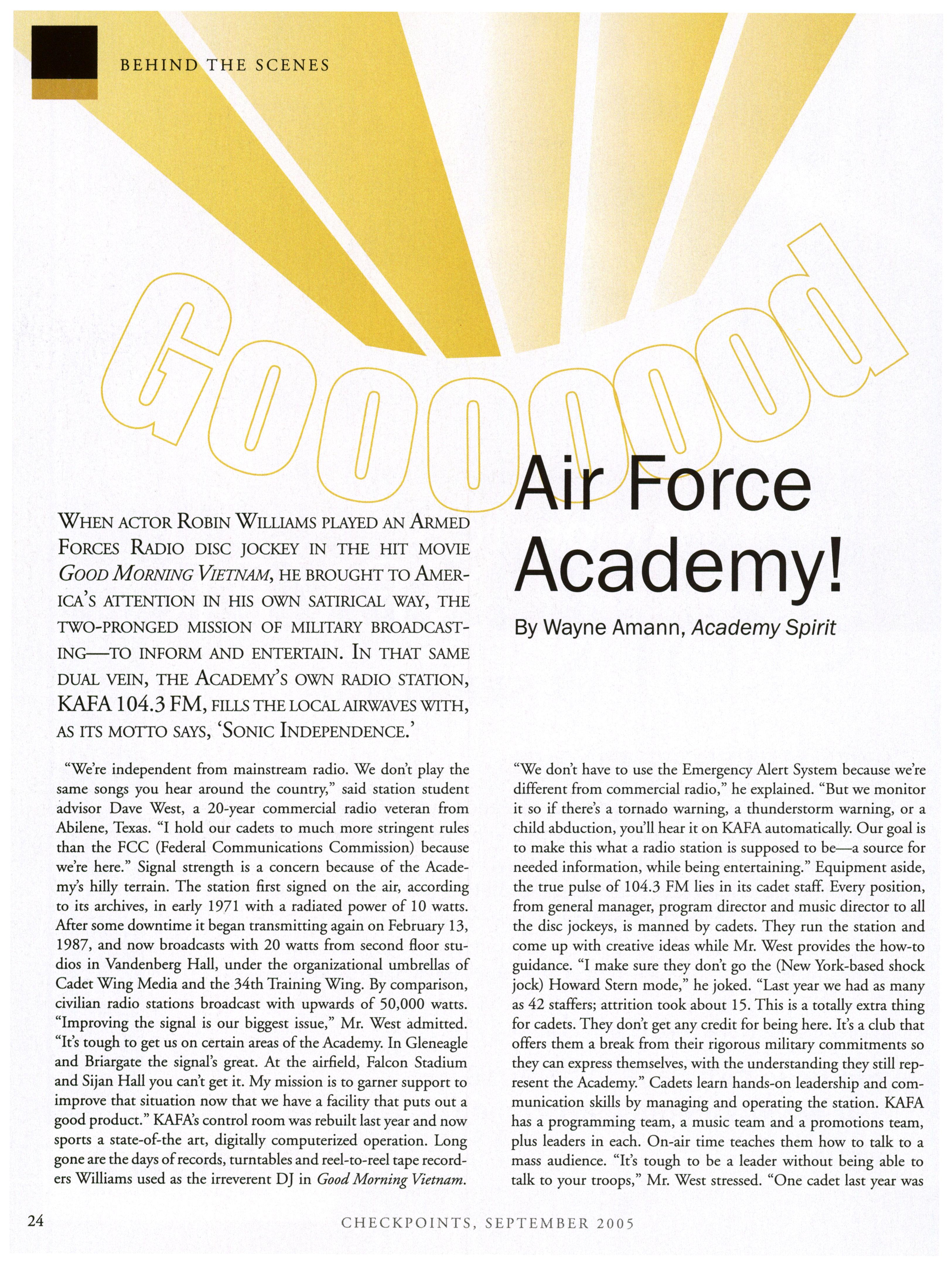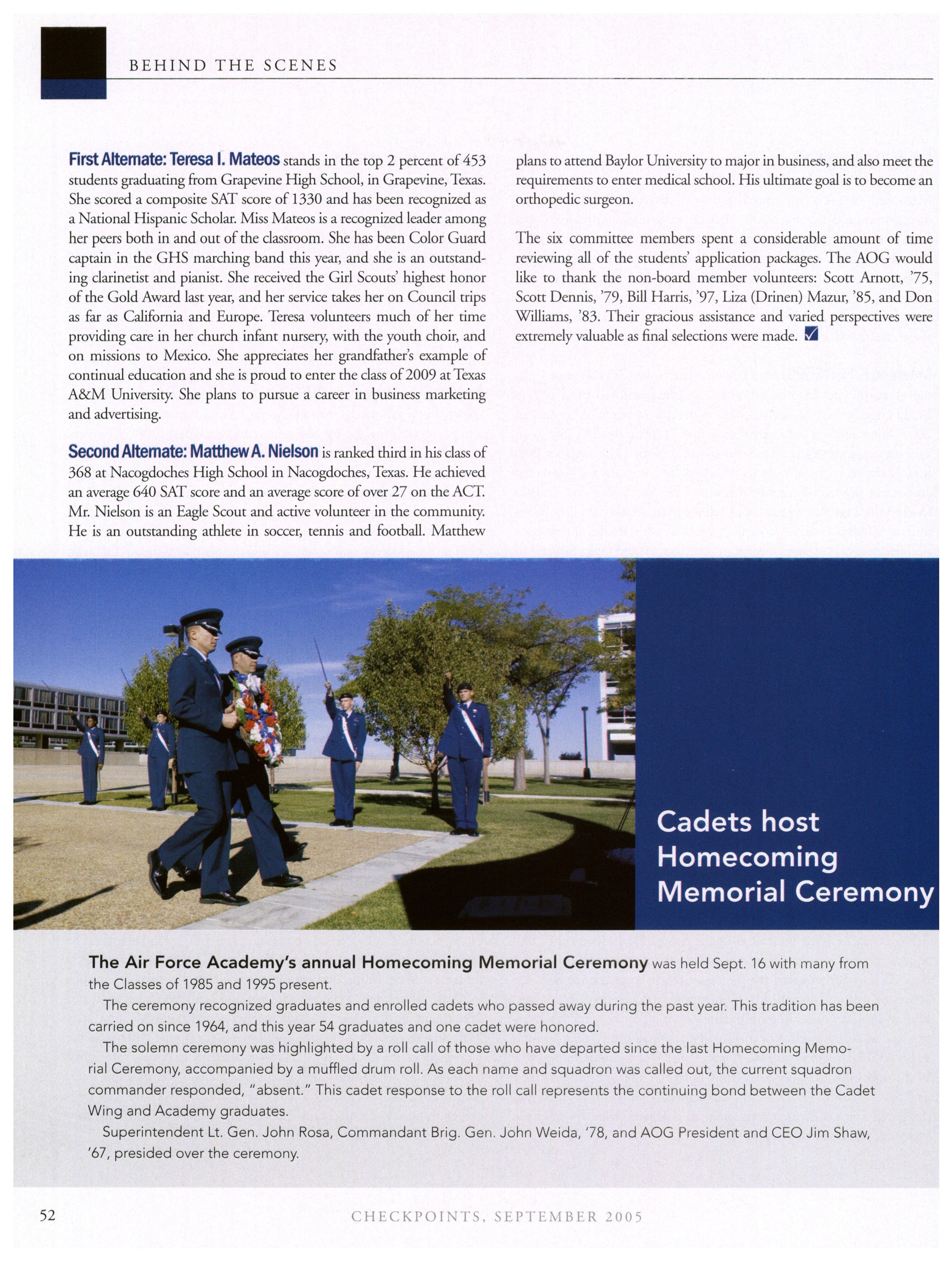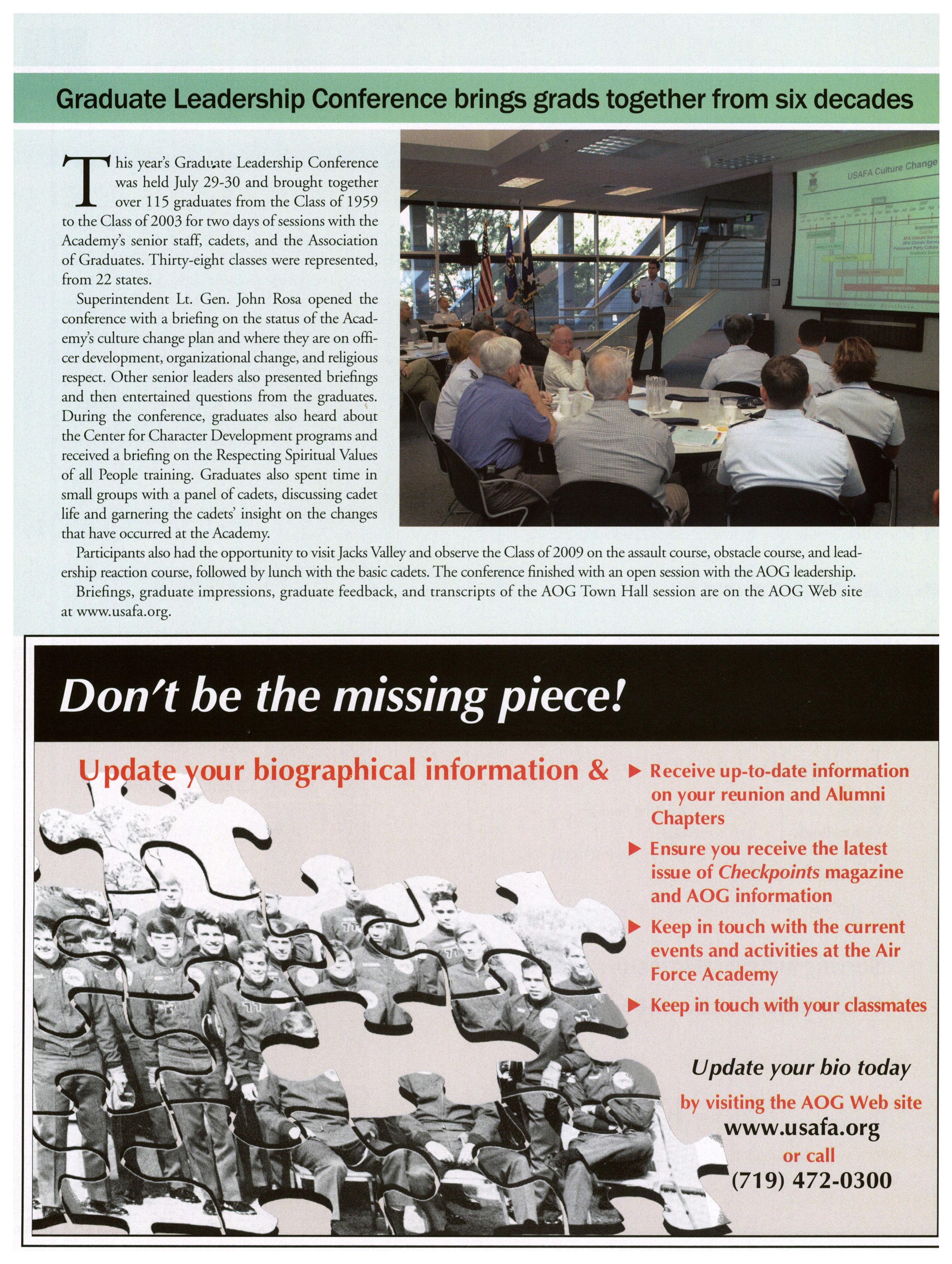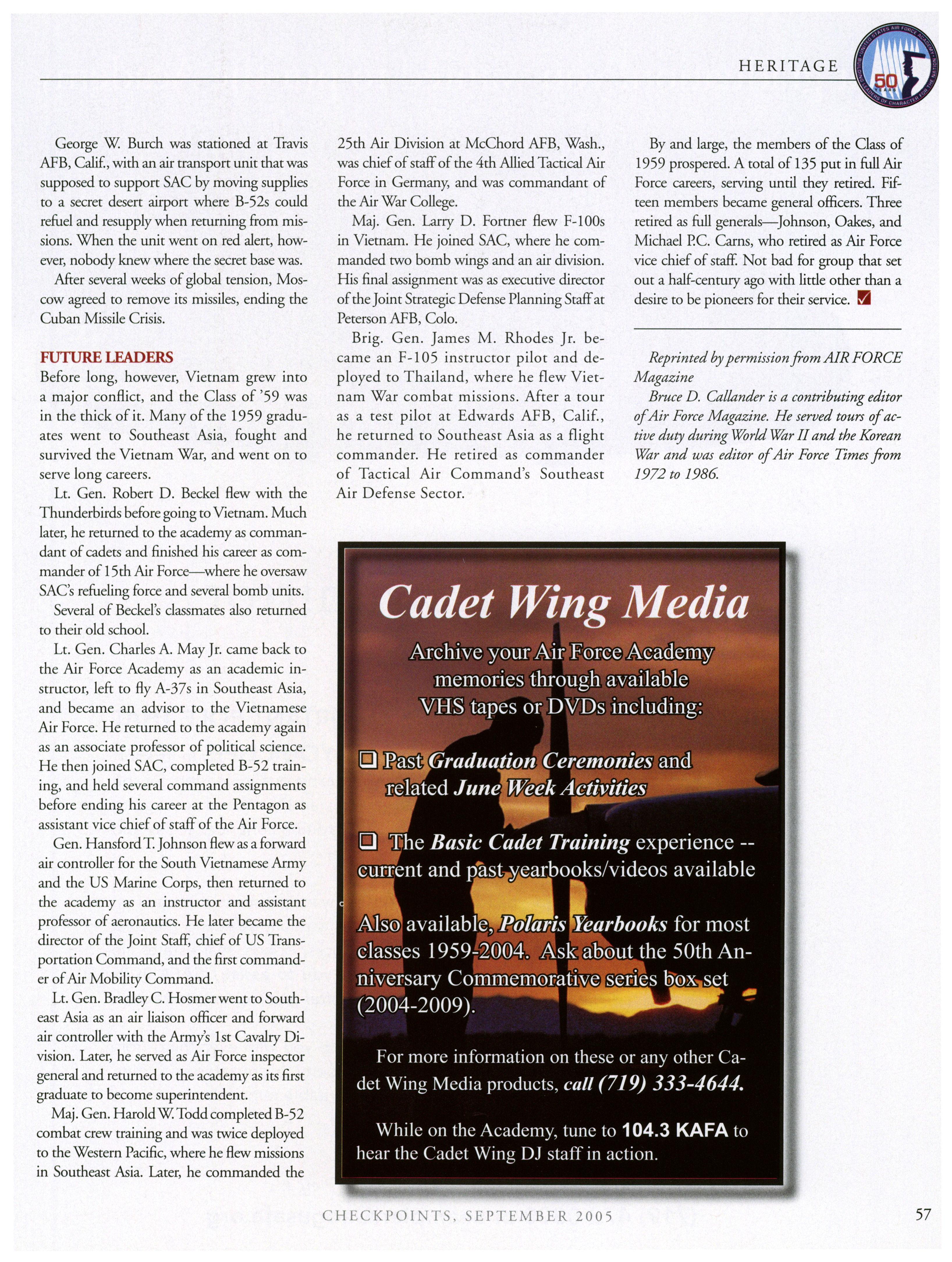September and December by the Association ofGraduates, U.S. Air Force Academy. (Phone: