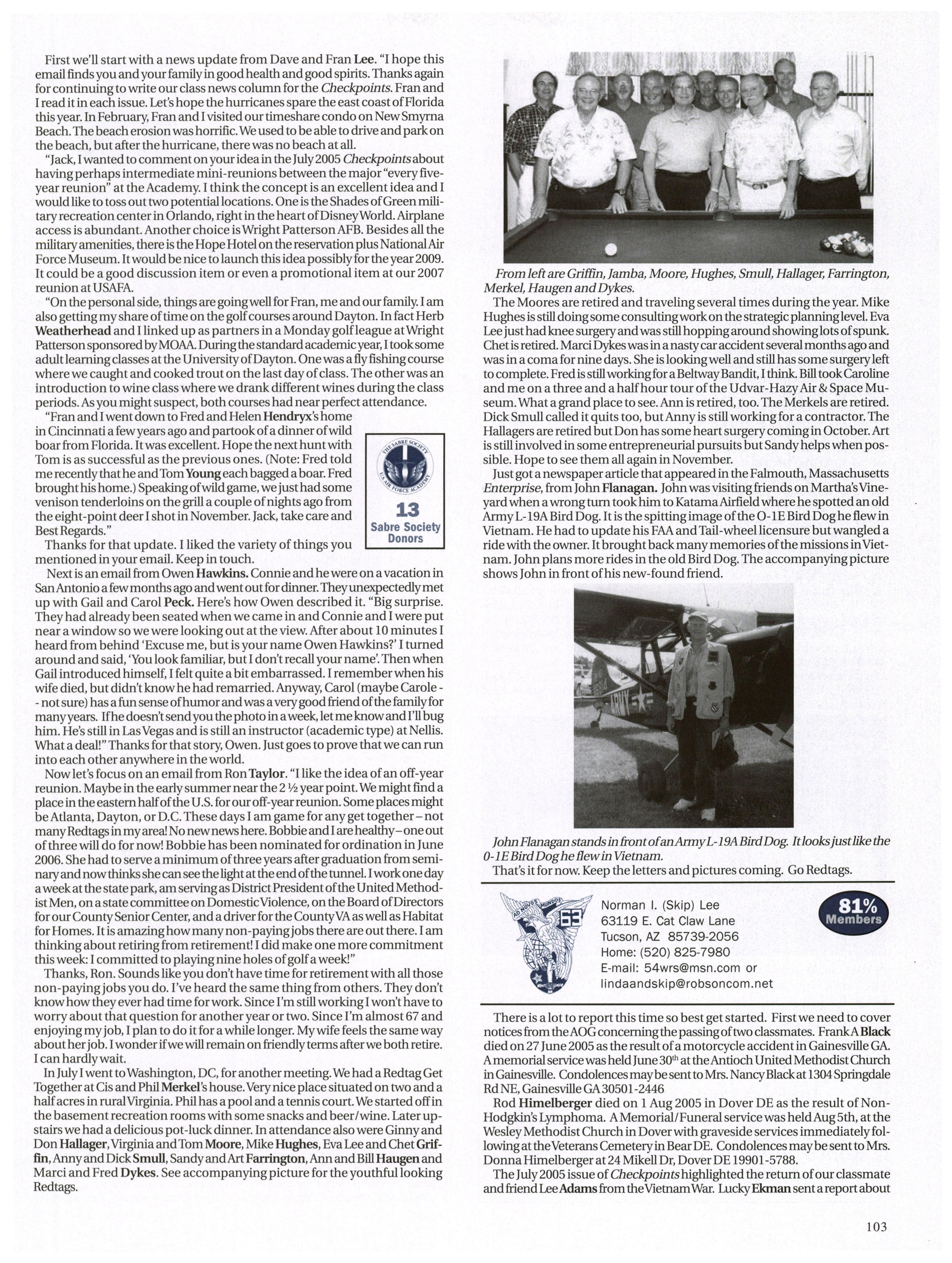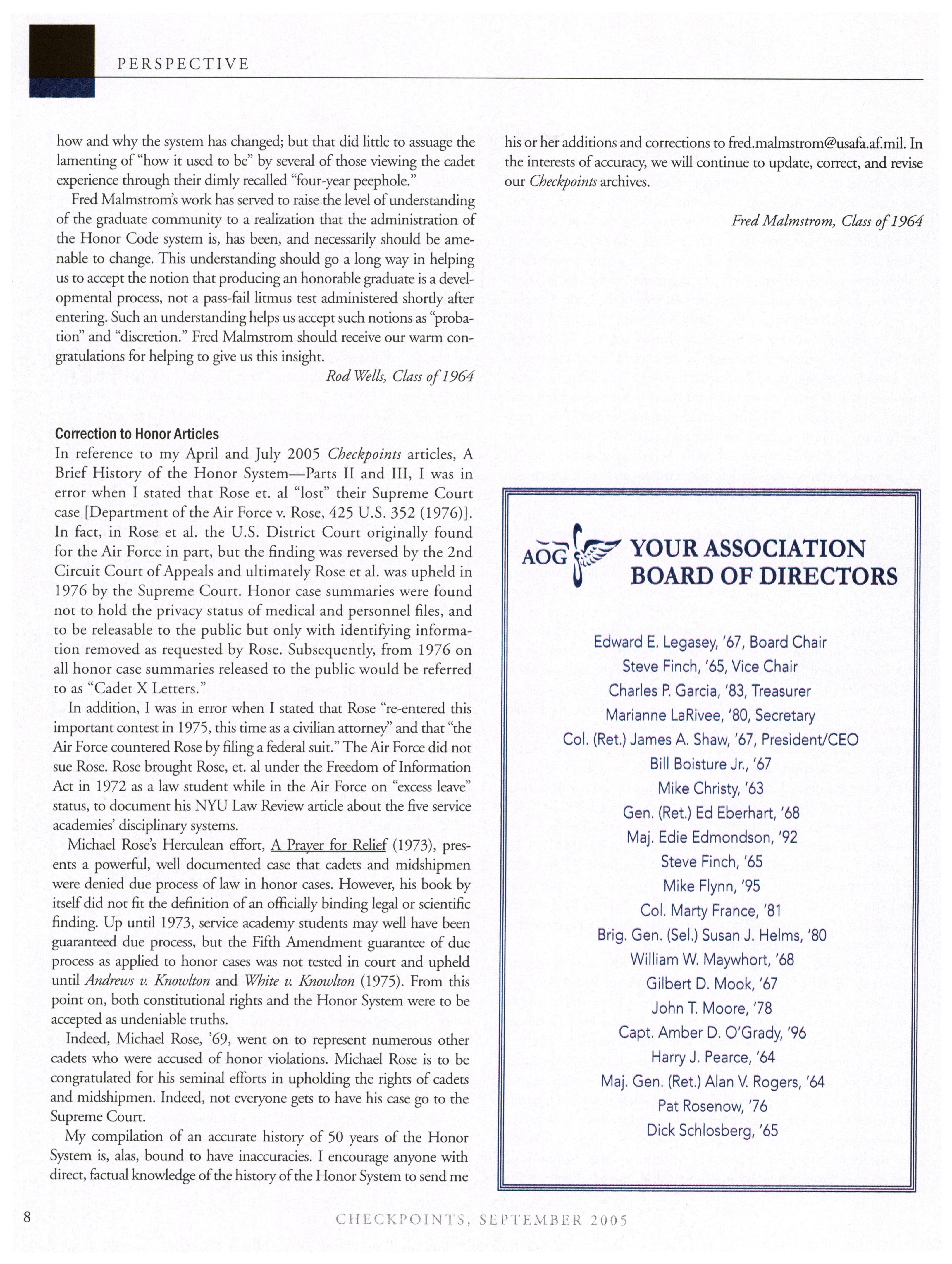 719-472-0300, DSN: 333-2067. FAX: 719-3334194, E-mail: editor@aogusafa.org.) It is provided as part of a membership package ofwhich the magazinesubscriptionannually accounts for $ 10. Single copies ofCheckpoints for members $2.50. Periodicals postage paid at the U.S. Air Force Academy, CO and additional mailing offices.