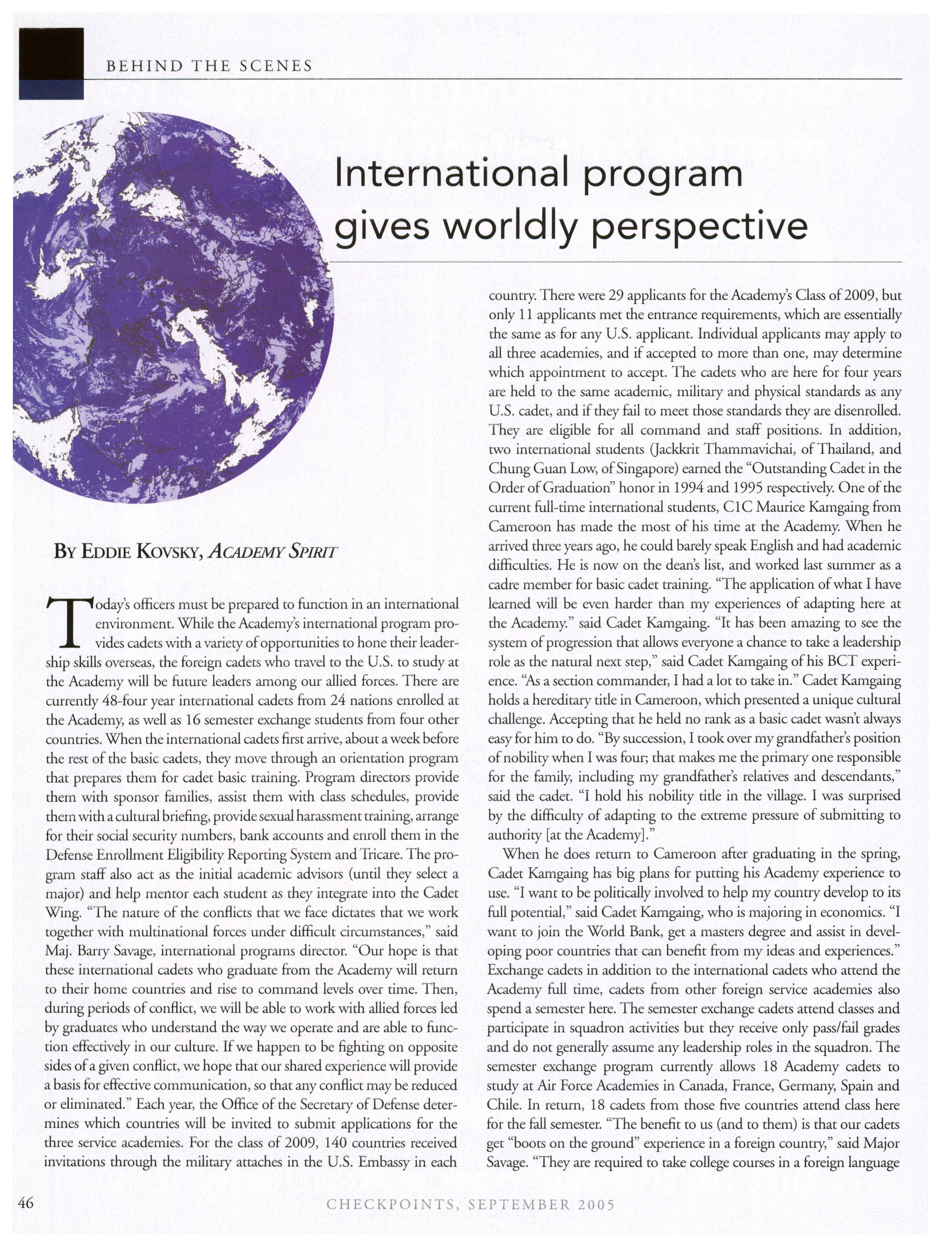 C H E C K P O IN T S, S E P T E M B E R 2 0 0 5 4 PERSPECTIVE