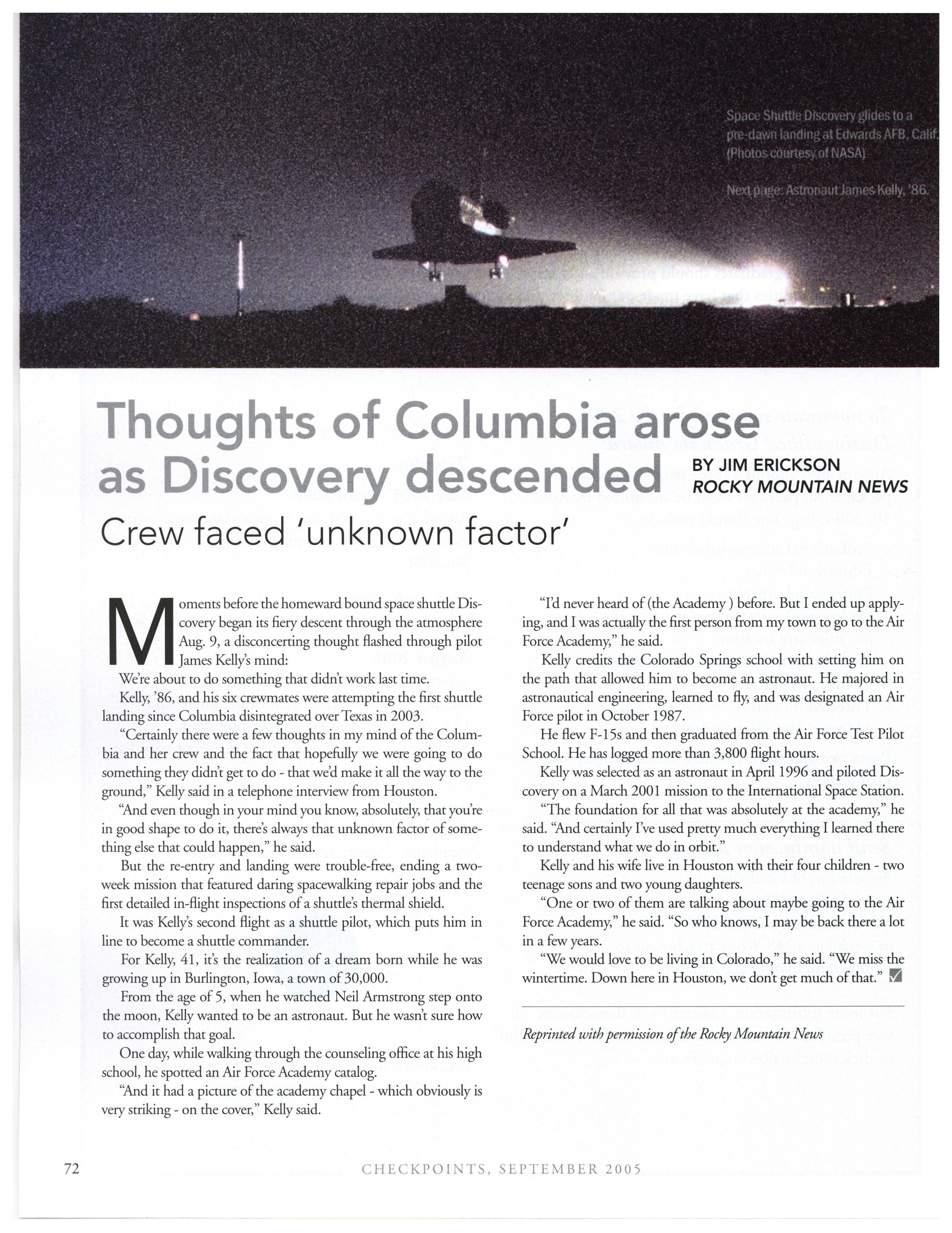POSTMASTER: Send change of address to Checkpoints, Association of Graduates, Doolittle Hall, 3116 Academy Drive, USAF Academy, CO 80840-4475.