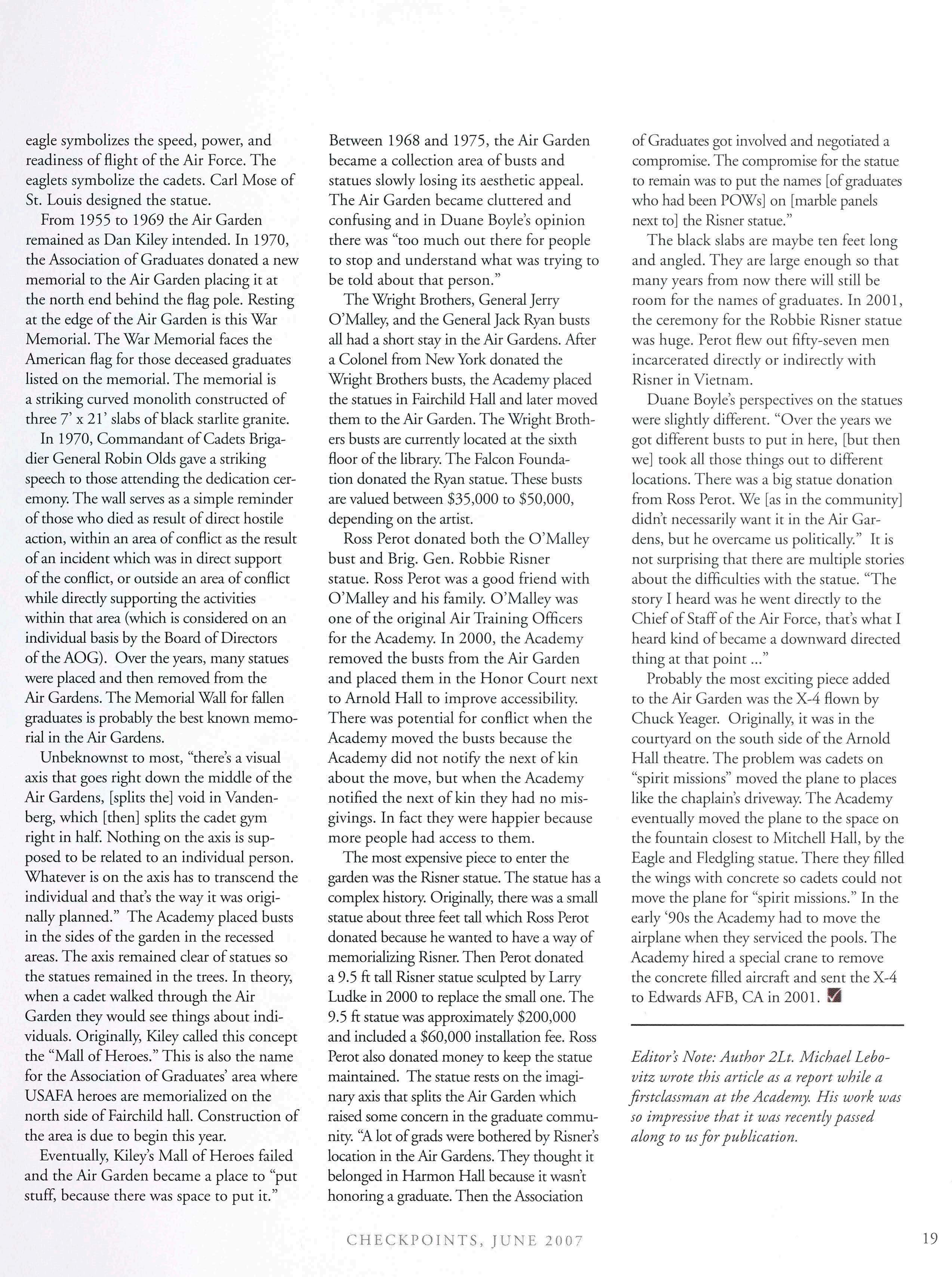 Opinionsexpressed in this magazine are those ofthe authors. They do not: necessarily reflect the opinions, policy or attitude of the Association of Graduates, its officers or the editorial staff The appearance of advertisementsin this publication does not constitute an endorsement by the Association of Graduates of the products or services advertised. Copyright, Association of Graduates of the U,S, Air Force Academy, June 2007.