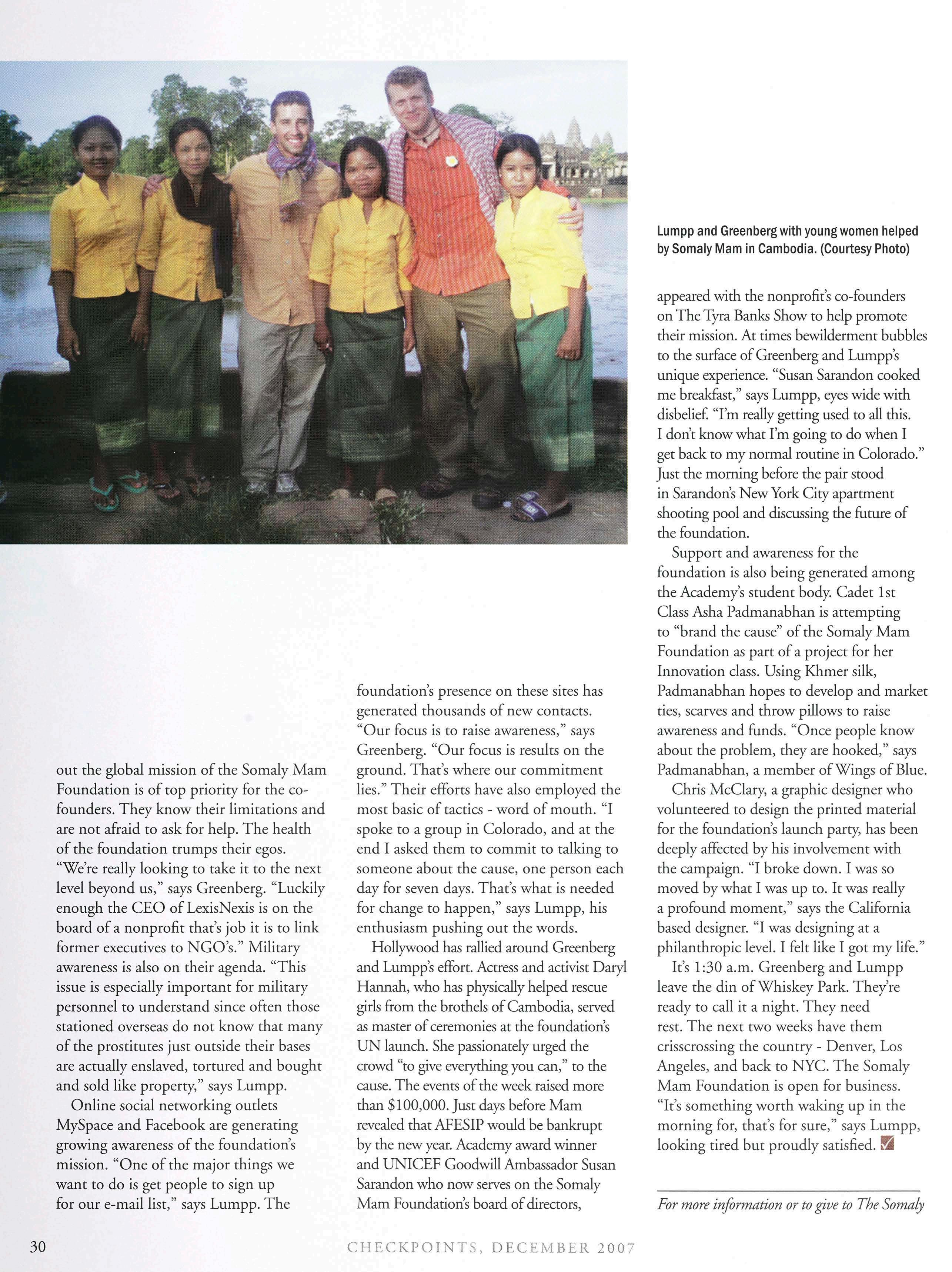 As forme, I am simplyenjoyinglivingunderthe same roofwithmyhusband, Michael, forthe firsttimeintwo-and-a-halfyears. Ifallgoes accordingto plan, we may even be able to deploytogether in spring of ’08. In the meantime, pleasekeepsendinginyour news for Checkpoints—families reallyshouldtry to stayintouch as much as possible. ’Til nexttime.. .HappyHolidays, andbest wishes forthe NewYear.