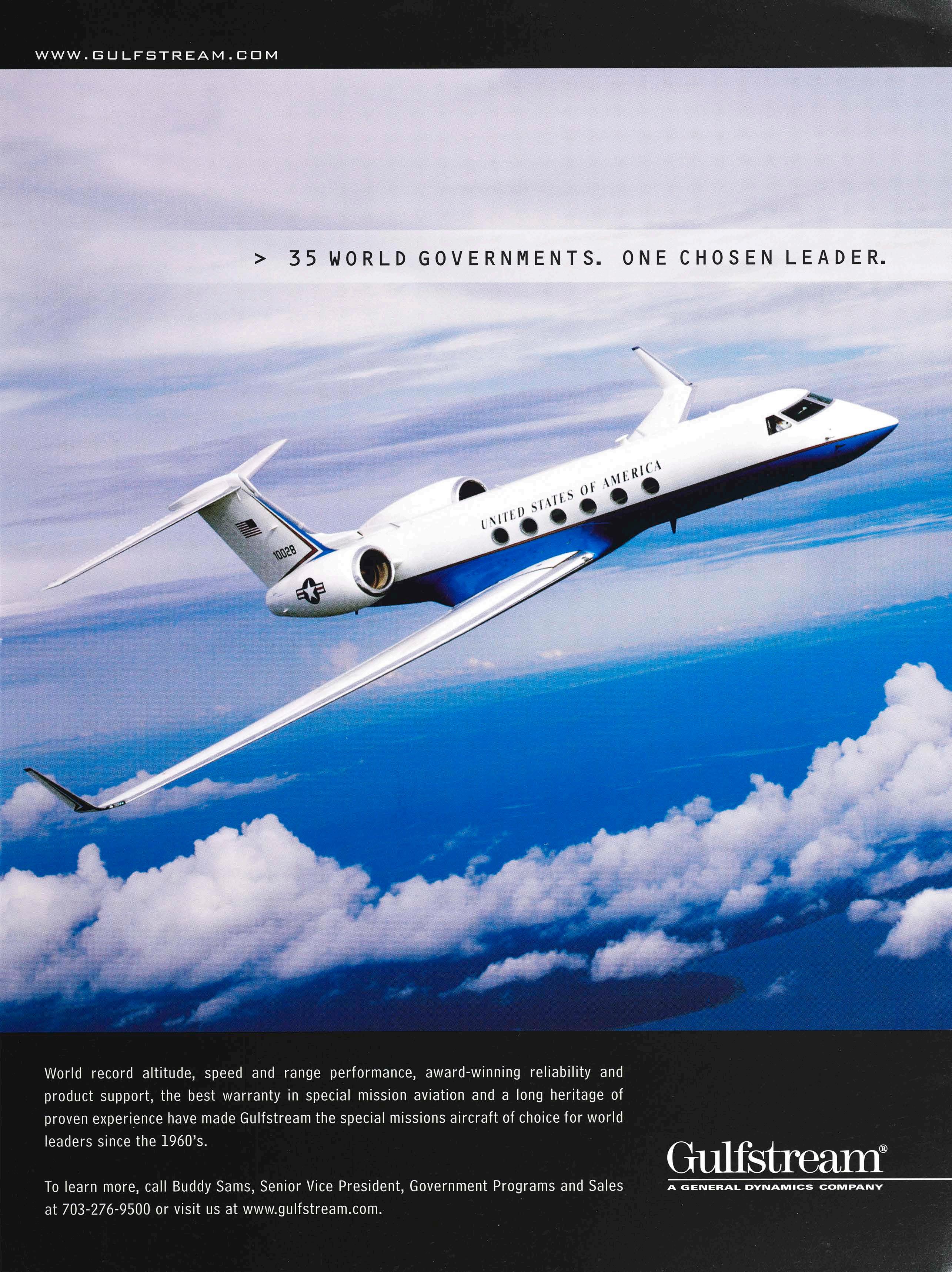 To learn more, call Buddy Sams, Senior Vice President, Government Programs and Sales at 703-276-9500 or visit us at www.gulfstream.com.