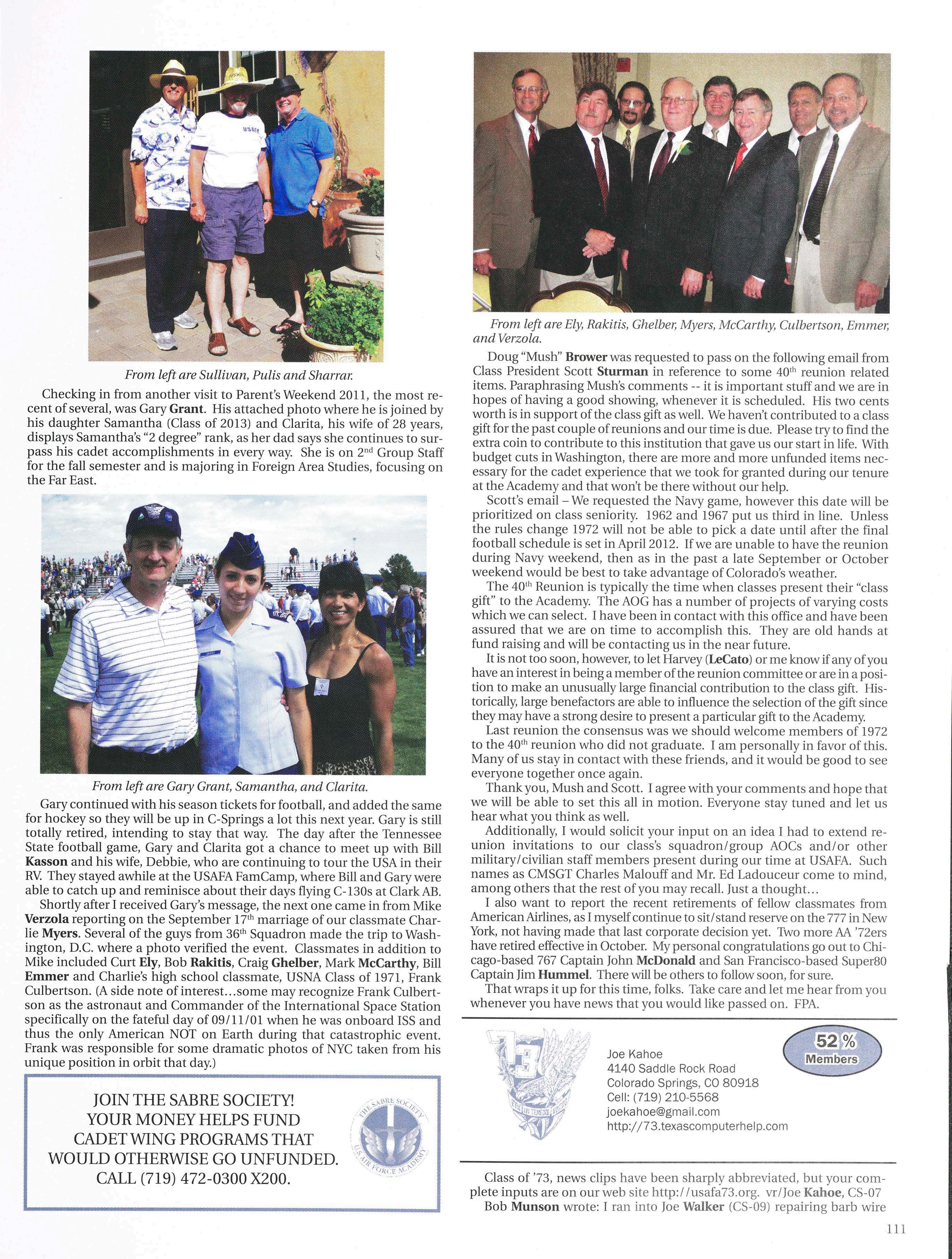 USAFA is flying high, and we continue to work towards May 23, 2012 when we will graduate another crop of Lieutenants into your United States Air Force. S