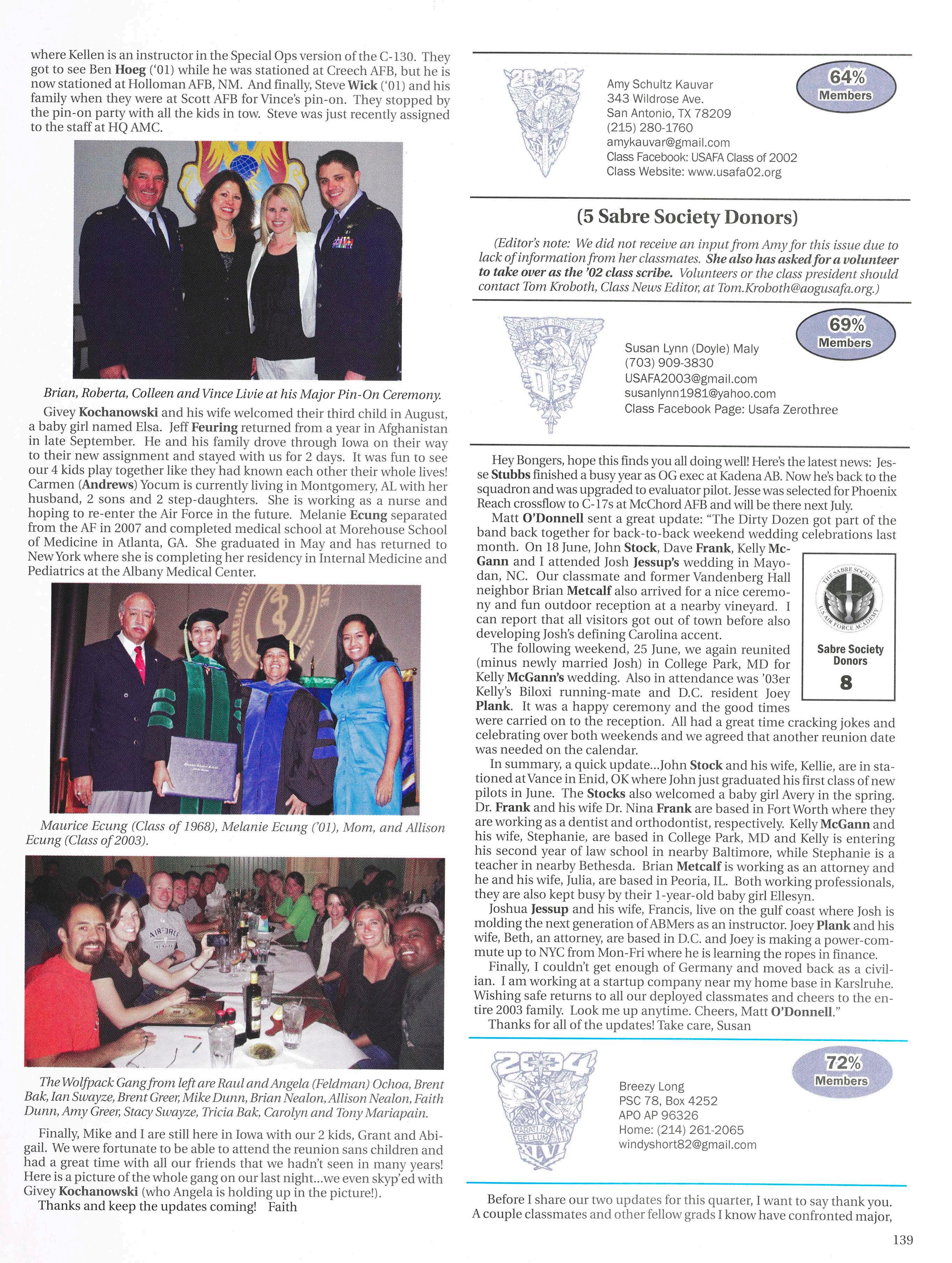 Communications is also one of our five SFAs and your new AOG web site is one ofthe key components in achieving this area’s success. We also rolled out the latest newsletter, 7258’, to better keep you informed about the happenings at the AOG. You may have also noticed increased visibility and use of social media including Facebook, Twitter, Linkedln and our own ZoomieNation. These communication tools will continue to grow in popularity with our graduates and we are committed to staying ahead of the curve in providing these services to you.