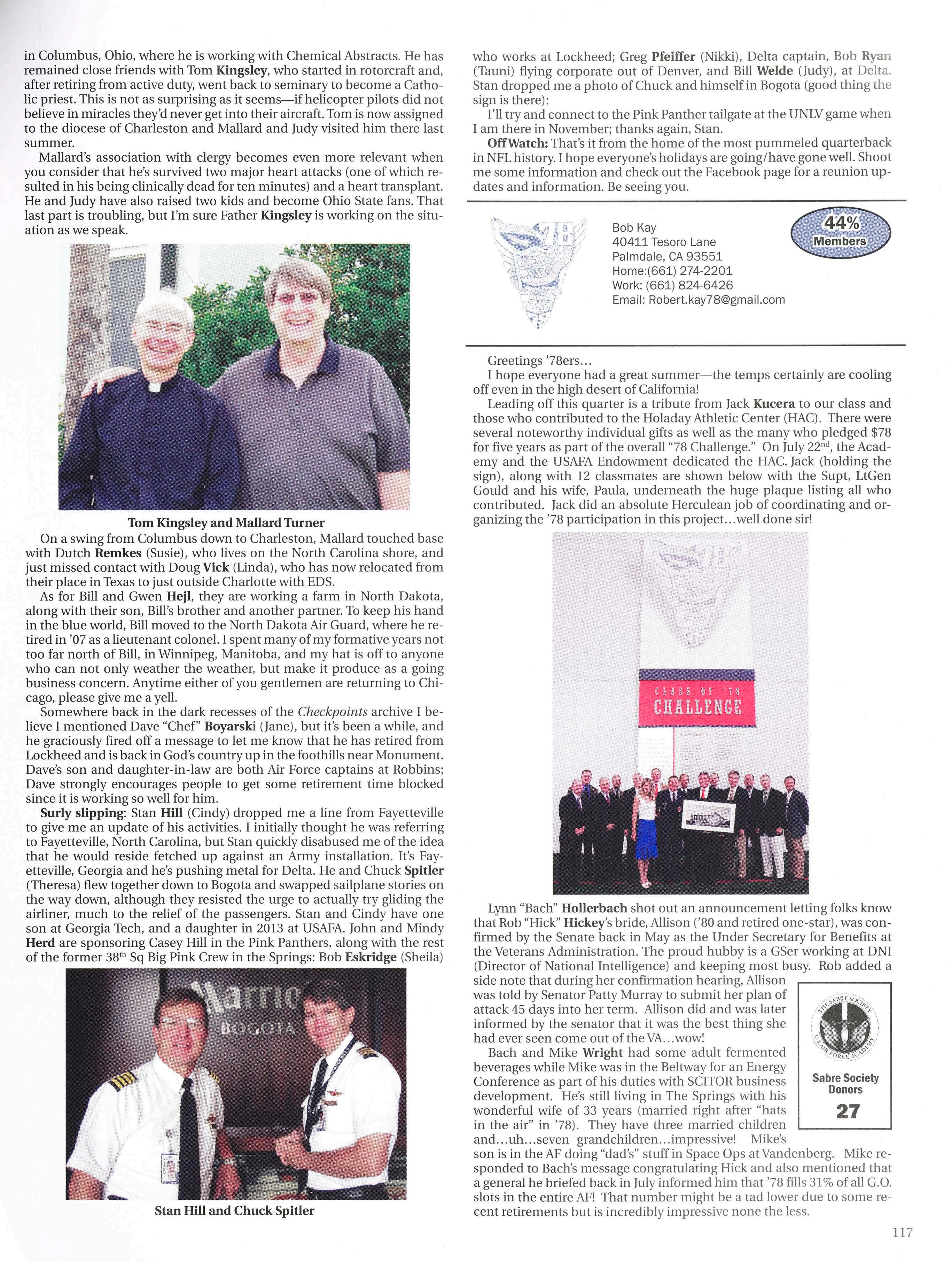 At our fourth AOG Board of Directors meeting of this year, on December 2nd we elected retired General “Chili” Chilton as an Appointed Director. We are pleased to gain his respected insight into our proceedings. We were also pleased to have Vice Superintendent, Colonel Tamra Rank, ’83, address us in General Gould’s, ’76, stead. General Steve Lorenz, ’73, also gave us an Endowment update. He and our President and CEO, “T” Thompson, ’73, meet daily, as do their co-located staffs, in further enhancing the ongoing relationship of the AOG and the Endowment. The minutes of our meeting, as always, will be on our website, usafa.org. We look forward to incorporating the newly-formed Athletic Association non-profit into our mutual purpose of enhancing the entire USAFA community.