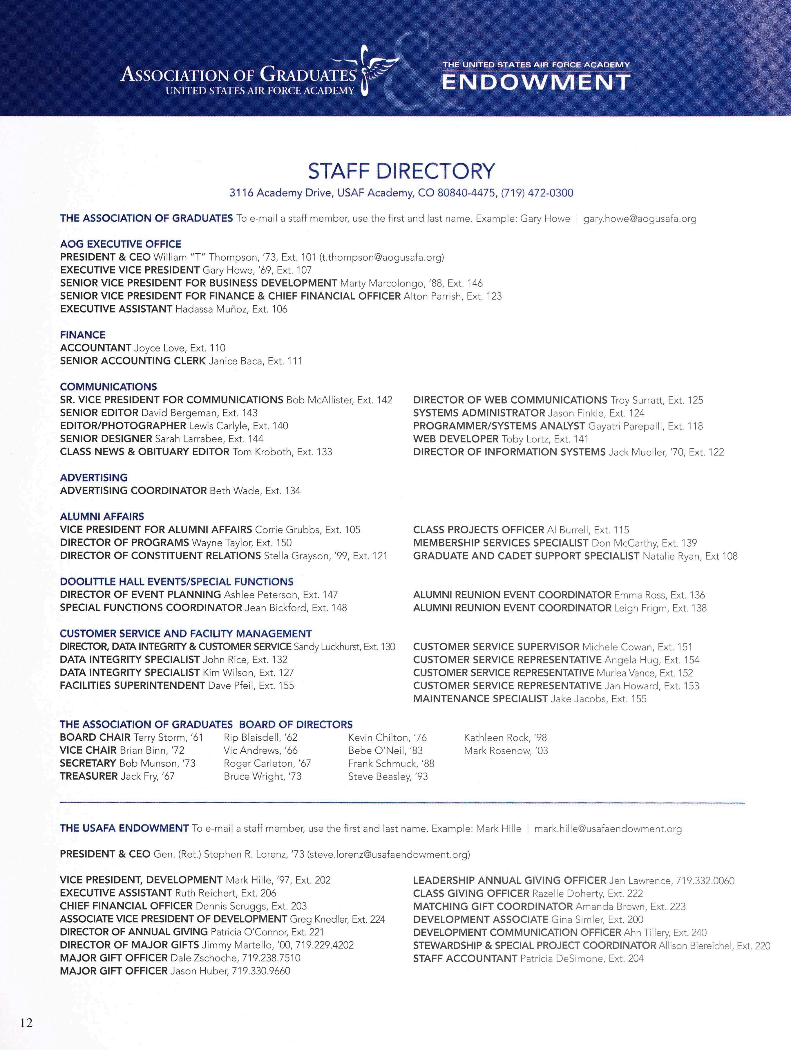 THE ASSOCIATION OF GRADUATES To e-mail a staff member, use the first and last name. Example: Gary Howe gary.howe@aogusafa.org