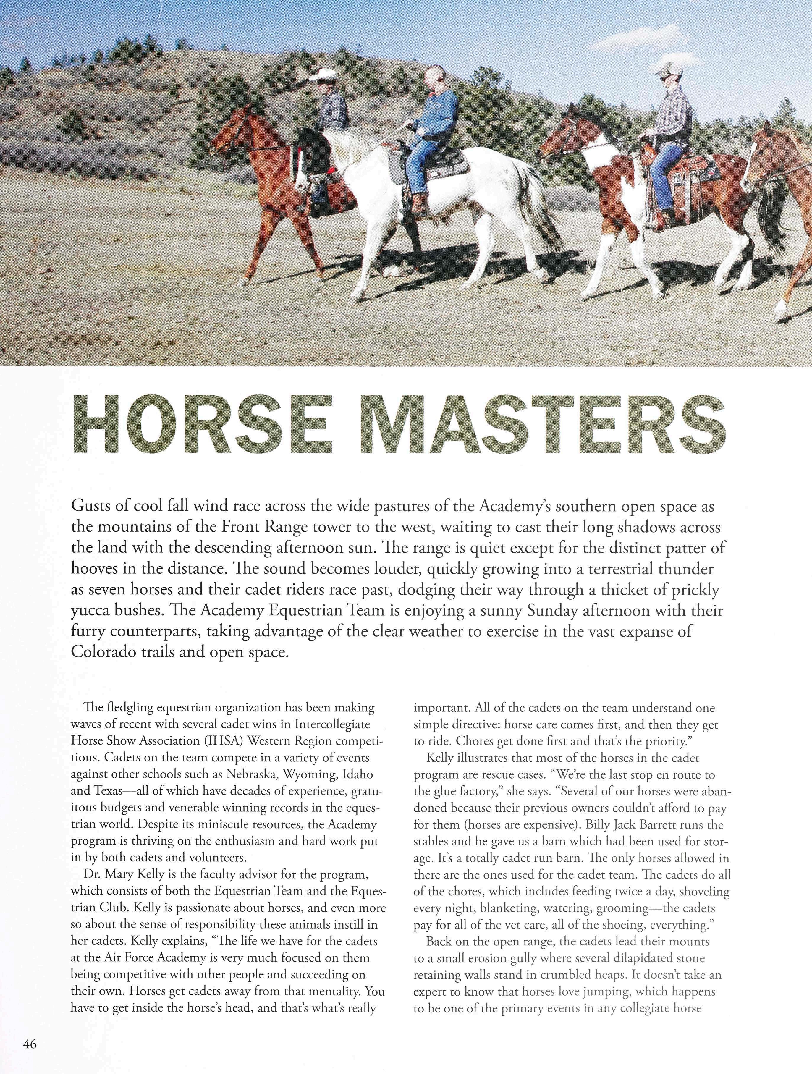 The animal-loving USAFA Equestrian Team challenges the open range with their trusted furry friends.