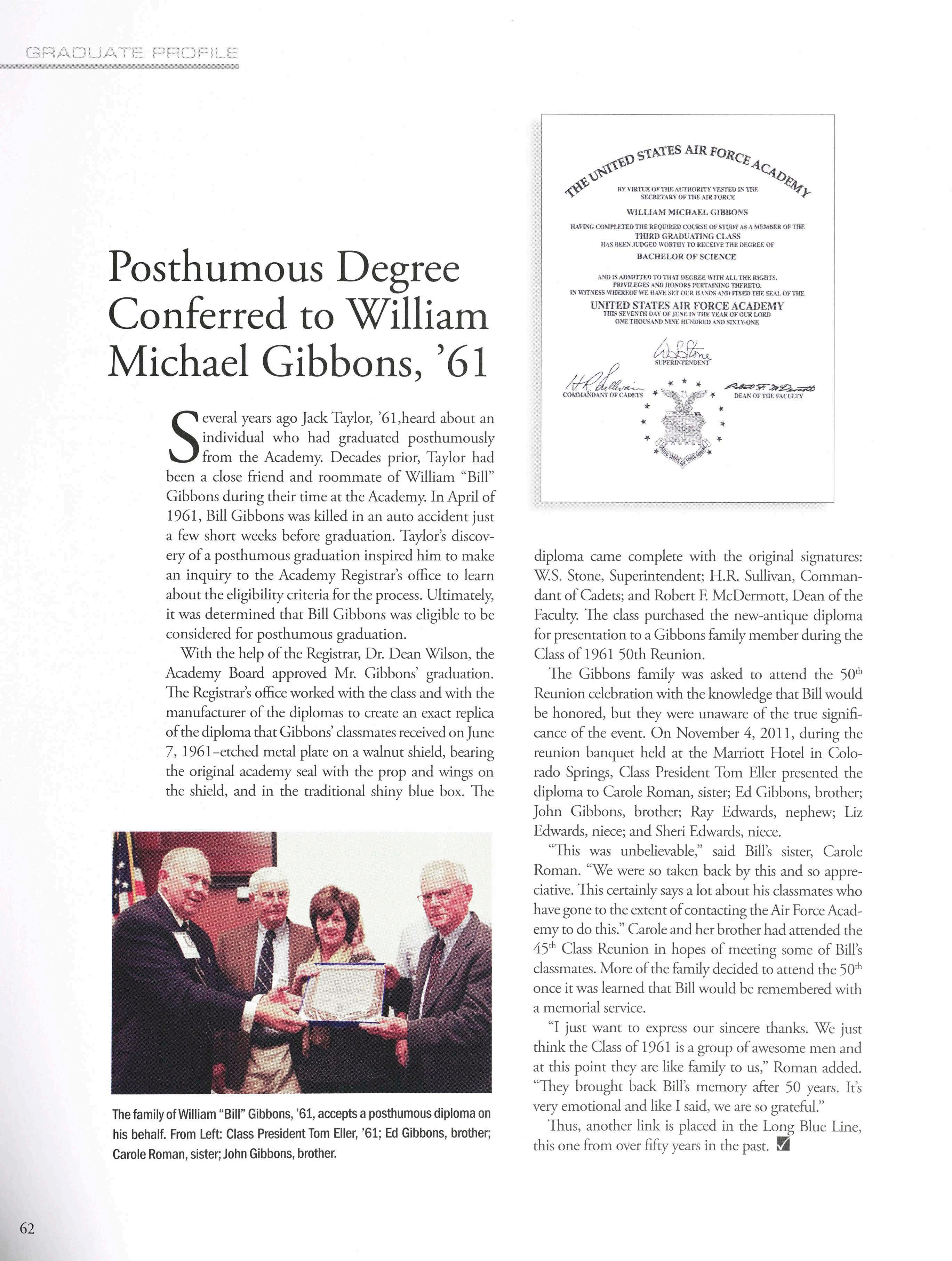 Col. (Ret) Charles G. Thomas, Class of 1961, who died on Nov. 2, 2011 in Albuquerque, N.M.