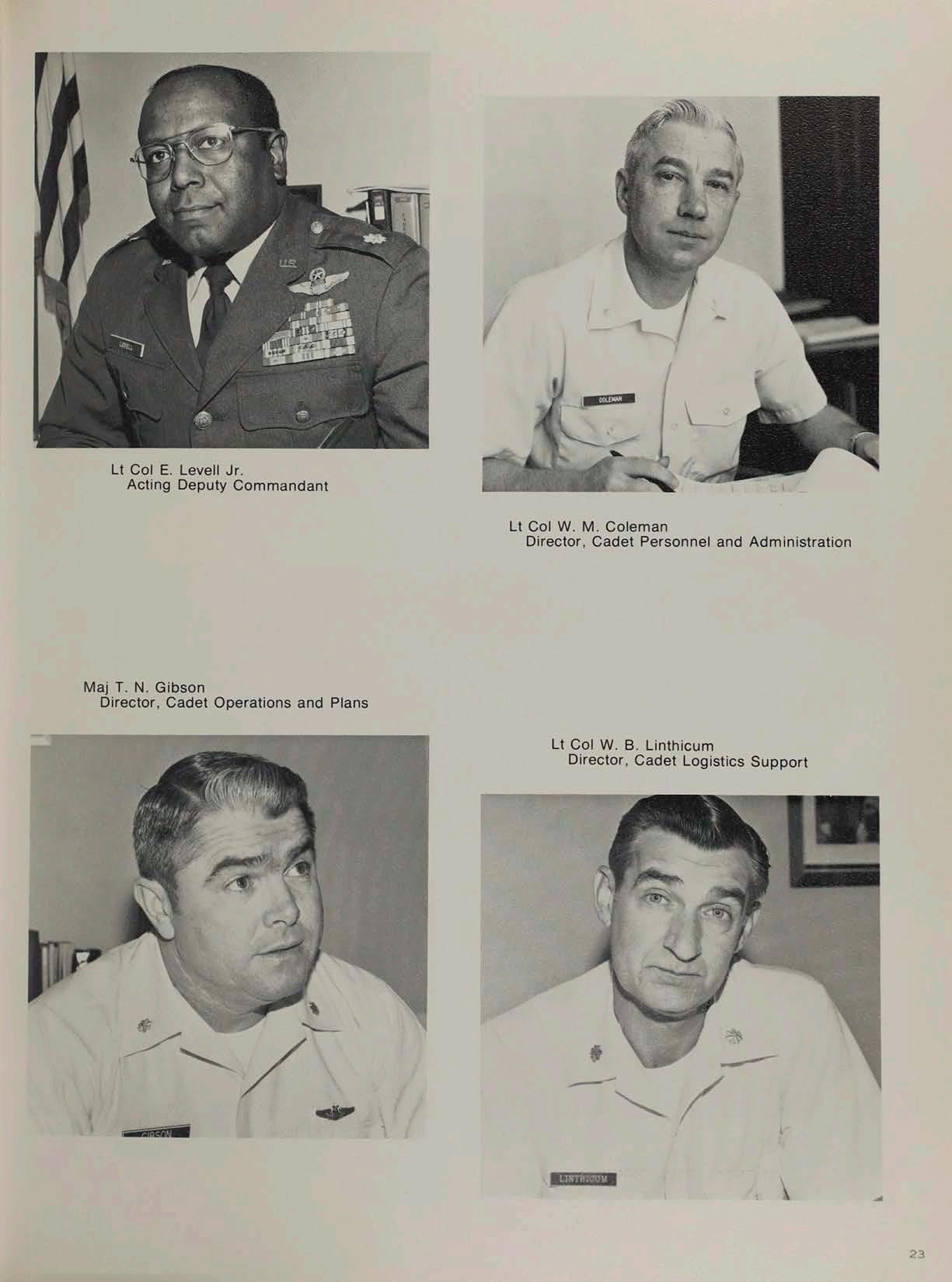 The Commandant's Staff administers the leadership and military training programs which include command of the Cadet Wing, instruction in military and airmanship courses, and supervision of cadet life activities.