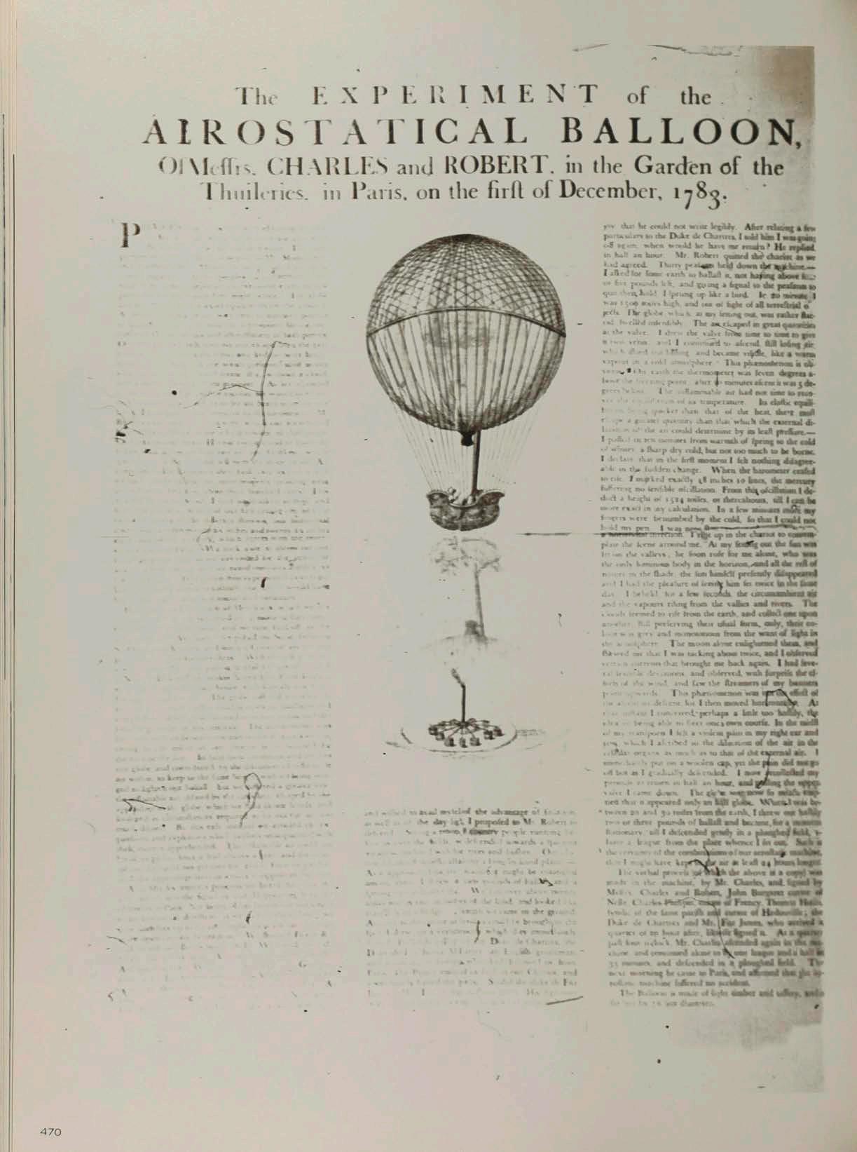 The E X PERIMENT of die i Rost a tic a l balloon. OlVWTrs. CHARLES and ROBERT, in the Garden of the 1 huilene*. in Paris, on the firft of December, 1783/