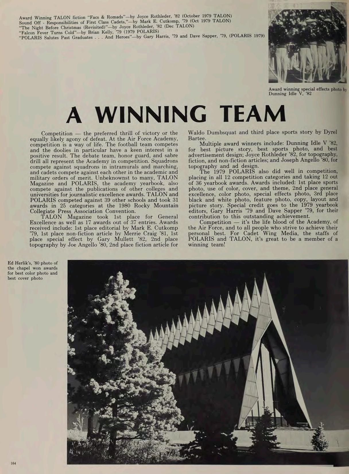The staff of the 1980 POLARIS has tried to show some of the changes that are experienced by each and every cadet over four years at the Academy, and preview some post-graduation avenues to follow.