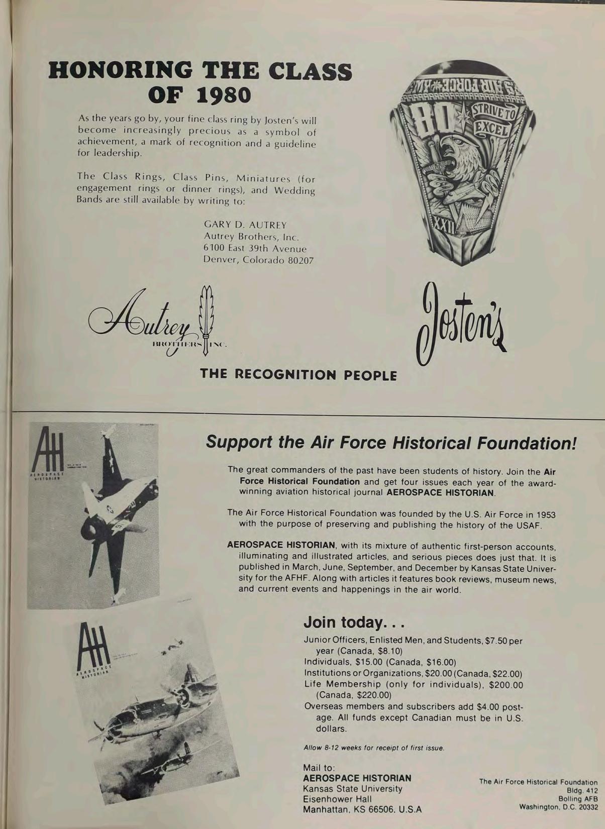 The great commanders of the past have been students of history. Join the Air Force Historical Foundation and get four issues each year of the awardwinning aviation historical journal AEROSPACE HISTORIAN.