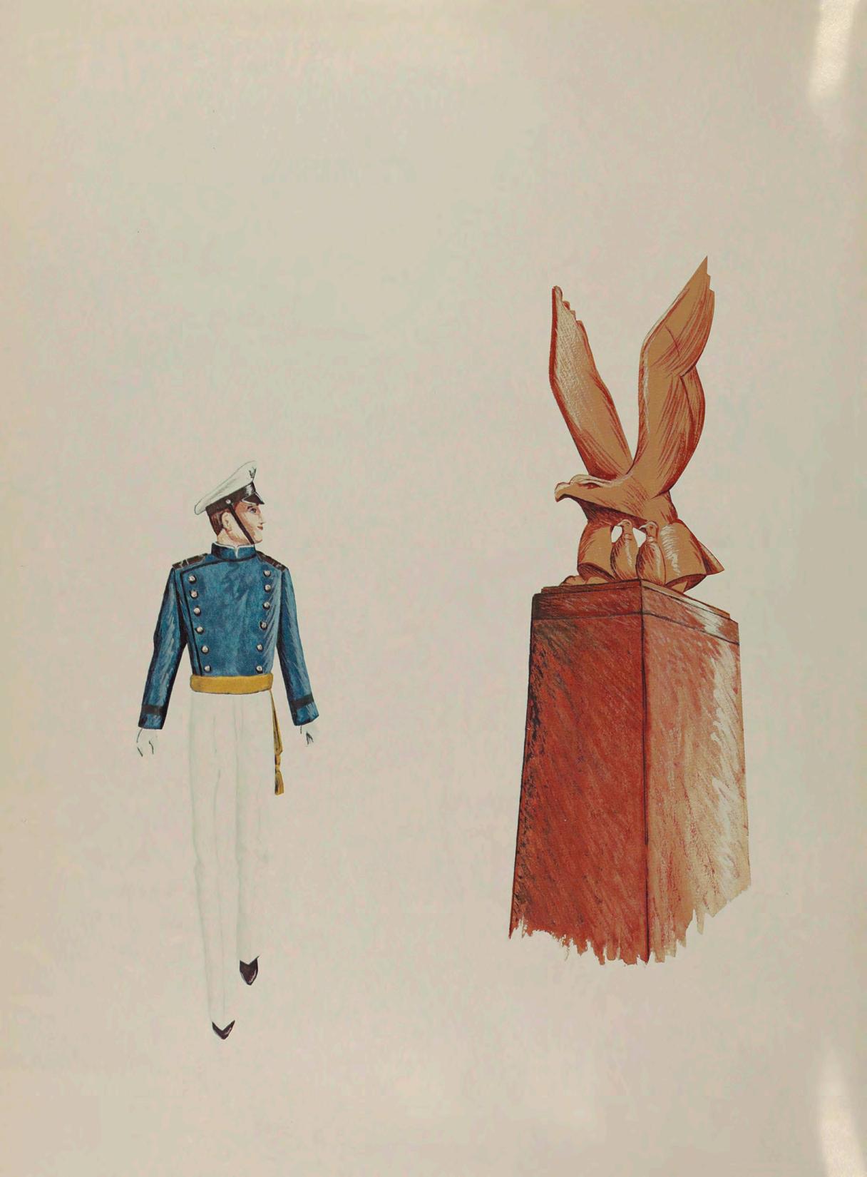 Our theme in this year’s POLARIS centers around 1980 and the changes forthcoming at the Academy, and how these changes will coincide with societal changes. This is a forward-looking yearbook as can be seen in the sketch at left. With new technological innovations, comes renewed interests in looking beyond the present capabilities of man and his machines, and looking towards space travel via the shuttle, harnessing the sea for its wealth and resources, and creating harmony amongst all the peoples of our world.