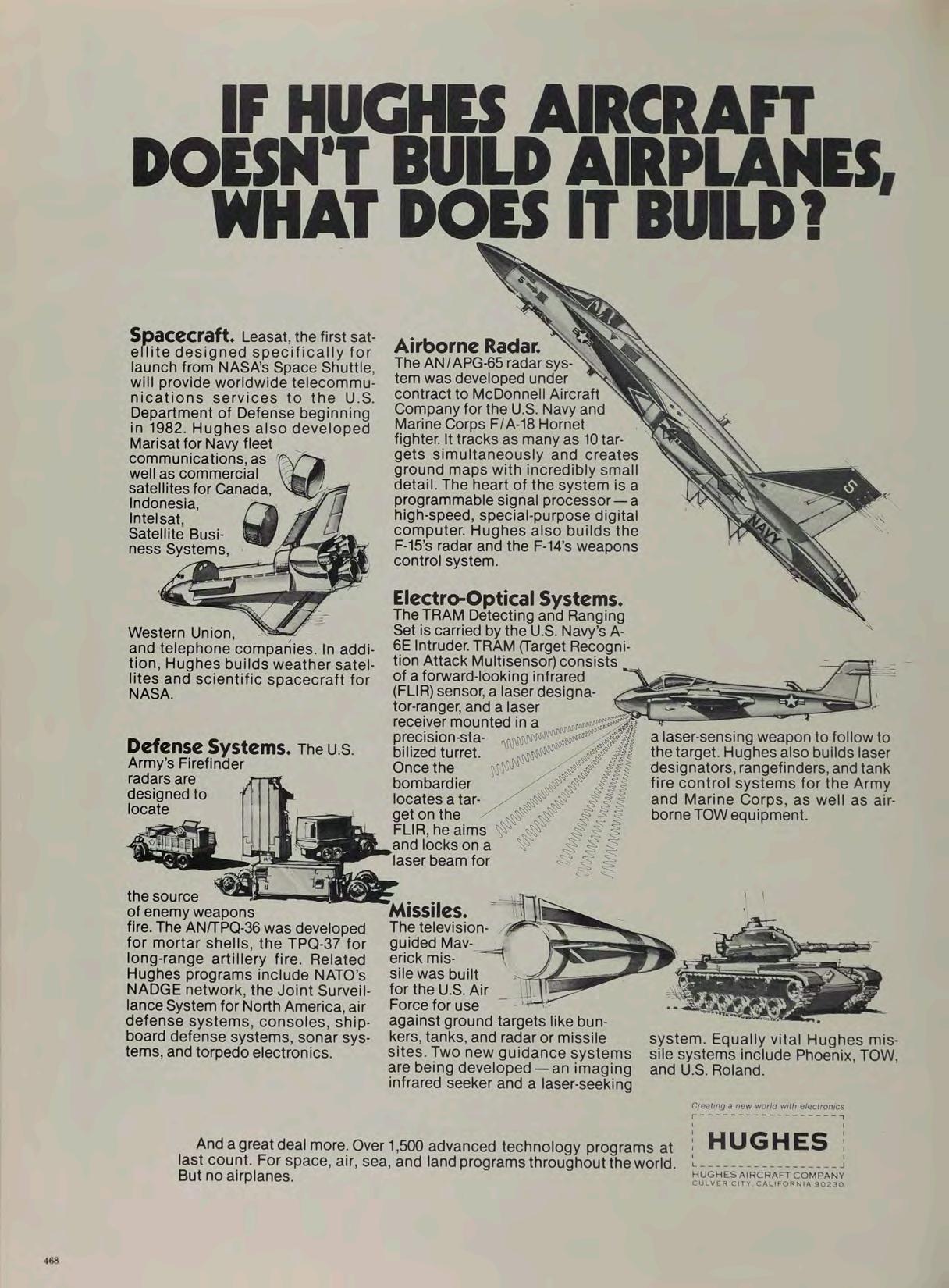 system. Equally vital Hughes missile systems include Phoenix, TOW, and U.S. Roland.