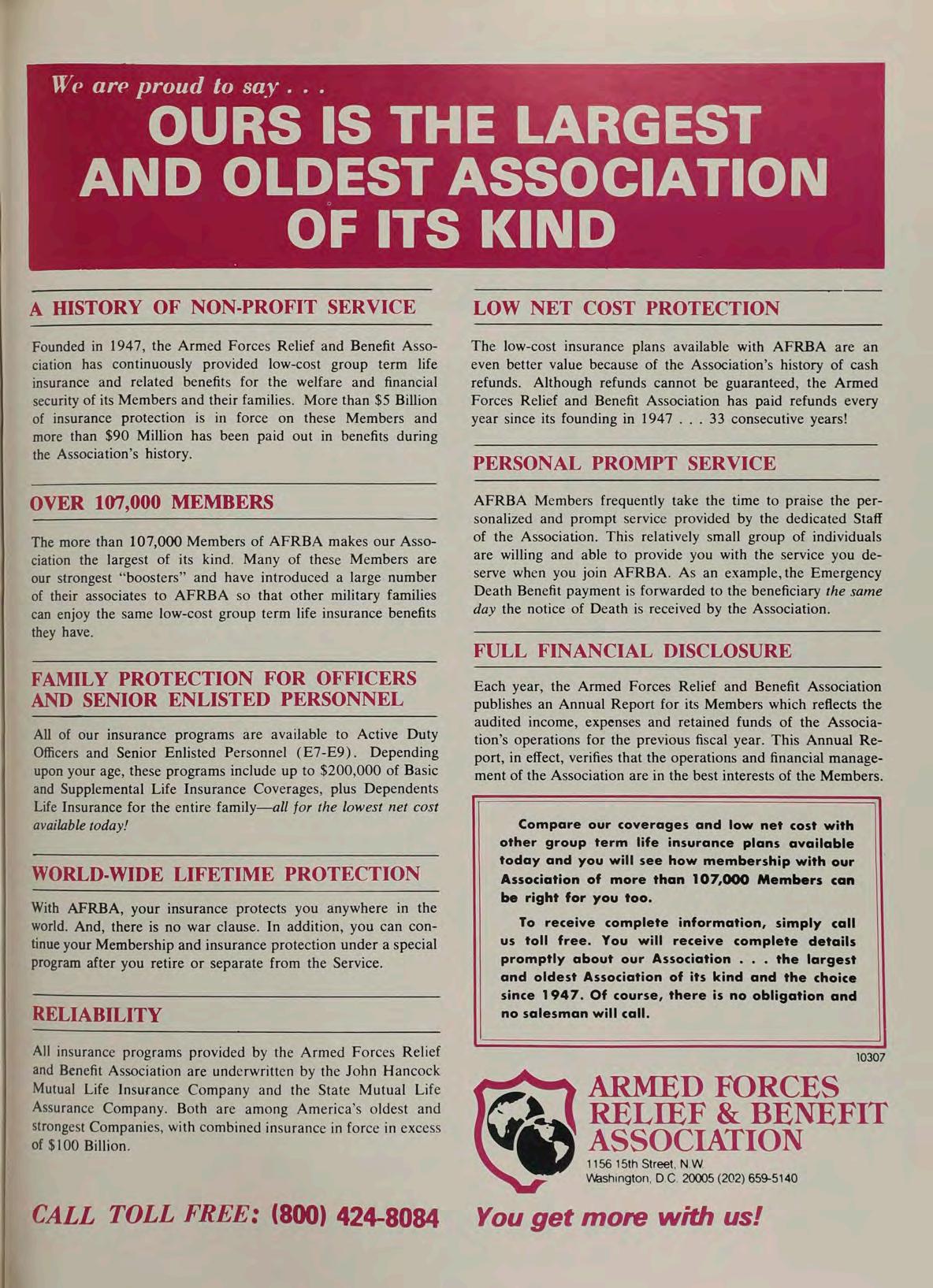 To receive complete information, simply call us toll free. You will receive complete details promptly about our Association the largest and oldest Association of its kind and the choice since 1947. Of course, there is no obligation and no salesman will call.