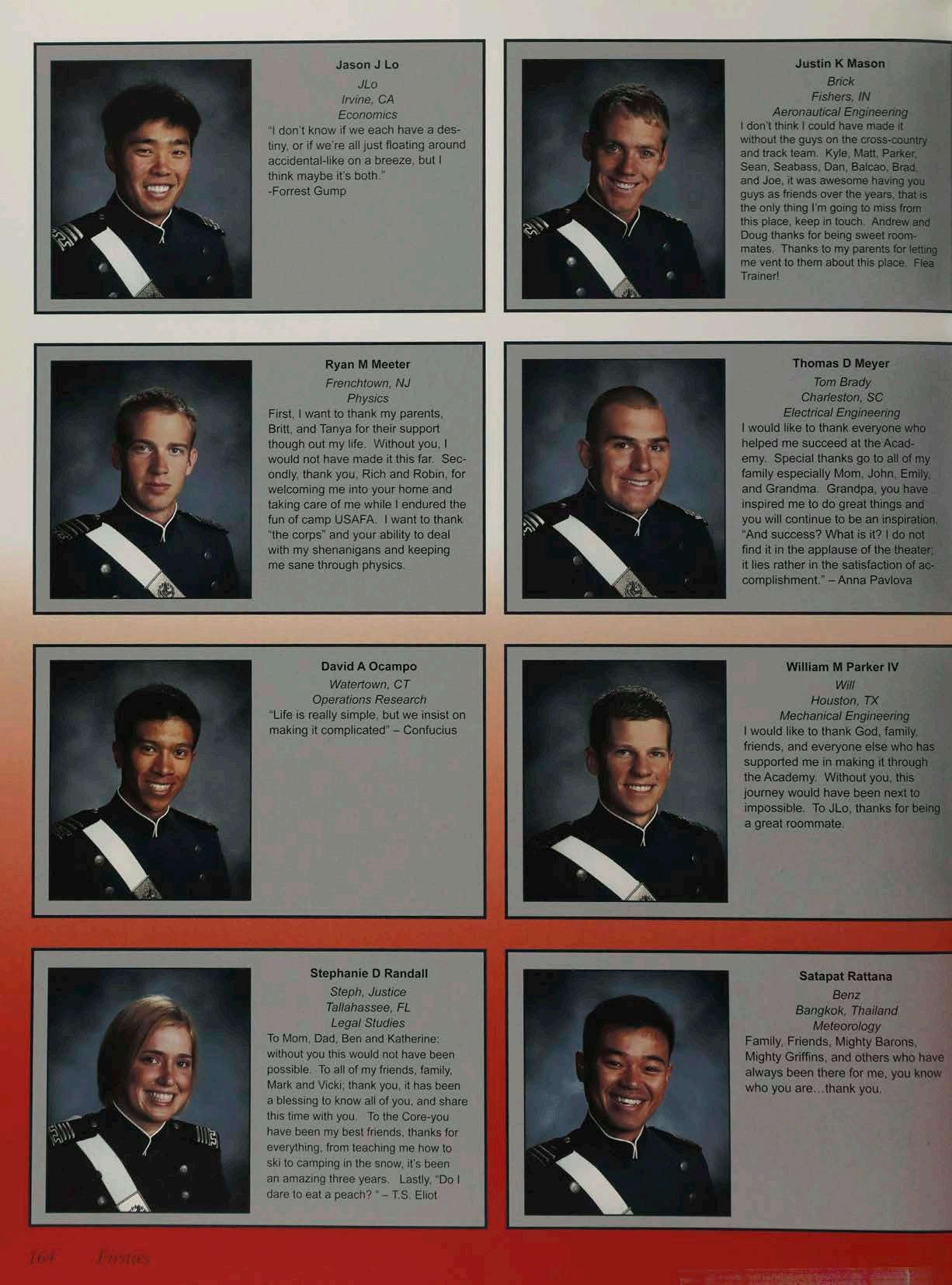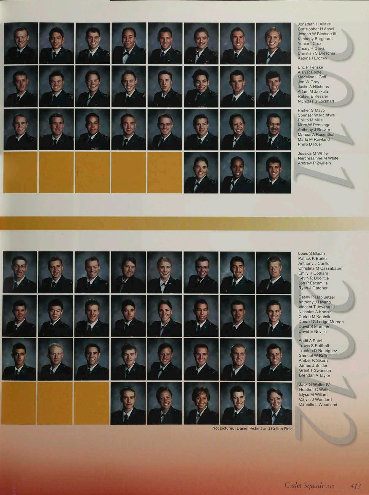 The 2009 Polaris was produced and printed by Walsworth Publishing Company of Marceline, MO, with Greg Stimack Sr. and Greg Stimack Jr. as the company representatives. Walsworth designer, Rene Tate, was responsible for all page designs. Brad Milliman handled editing and writing responsibilities. James “Kimo” Rush was an editor and served as an advisor to cadet writers and photographers as well. Maureen Welch supervised the production process as the Chief of Cadet Wing Media.