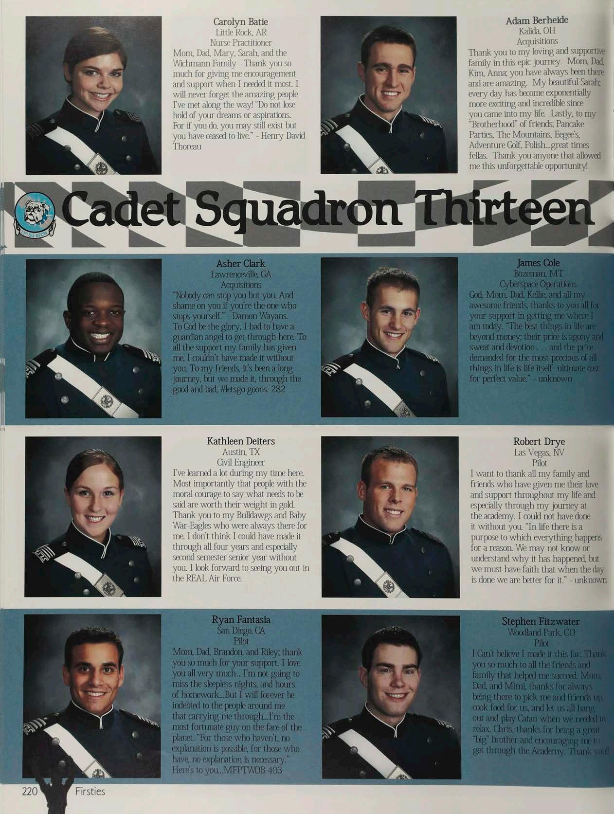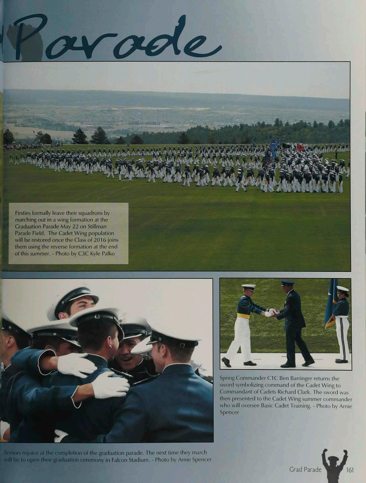 So dive onto your bed after a tough week; sip a beer at Haps Thursday night; plunge into the fountainsafter your last final as an Air Force Academy cadet. Firsties, enjoy your 60 days of leave knowing you didn’t merely receive themyou earned each and every one. Enjoy the vietory laps of your military career because you were tough enough to stick it out and succeed. - CICs Kelsey Smith and Zach Schneider (pictured below)