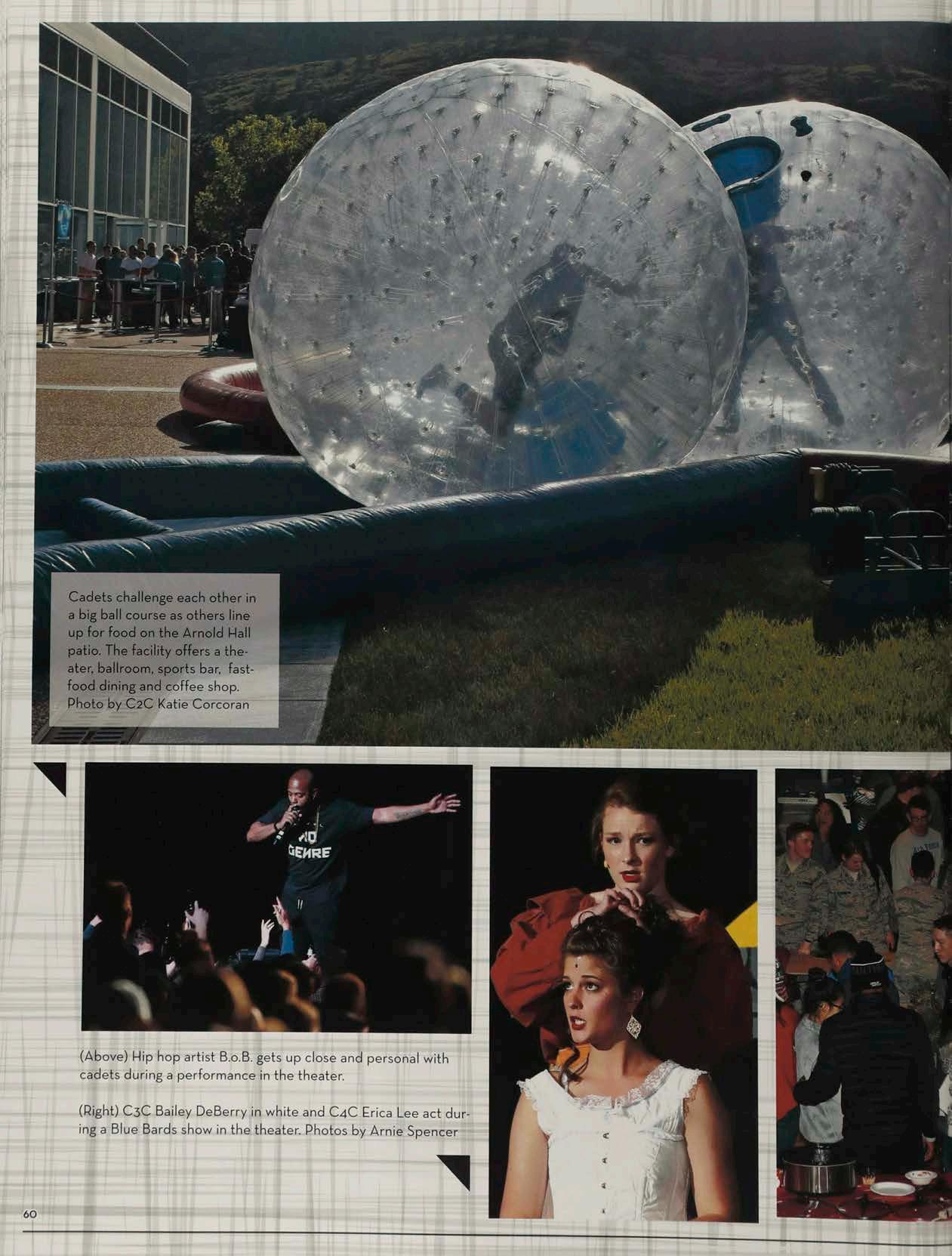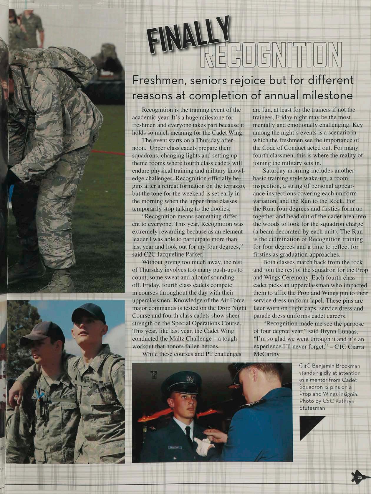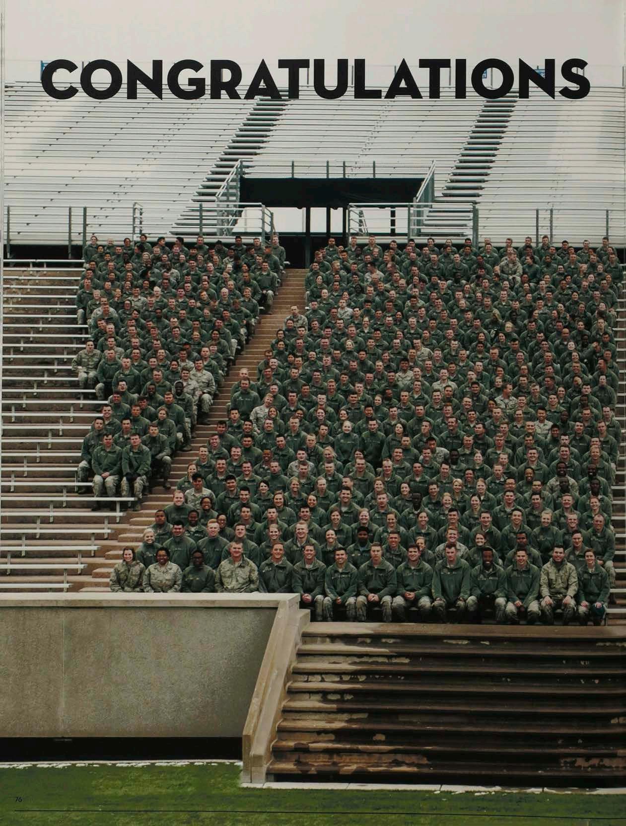 (Bottom) C4C Spencer Martin runs a gauntlet of congratulations as Cadet Squadron 26 fourthclassmen celebrate Acceptance and the end of BCT. Photo by Arnie Spencer