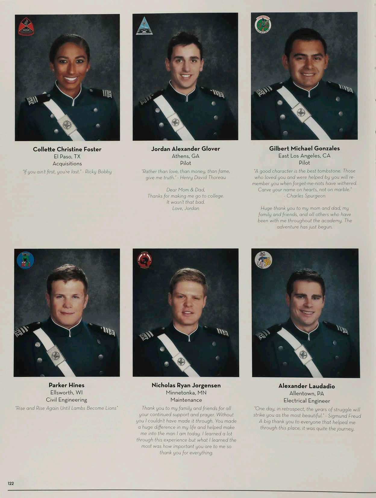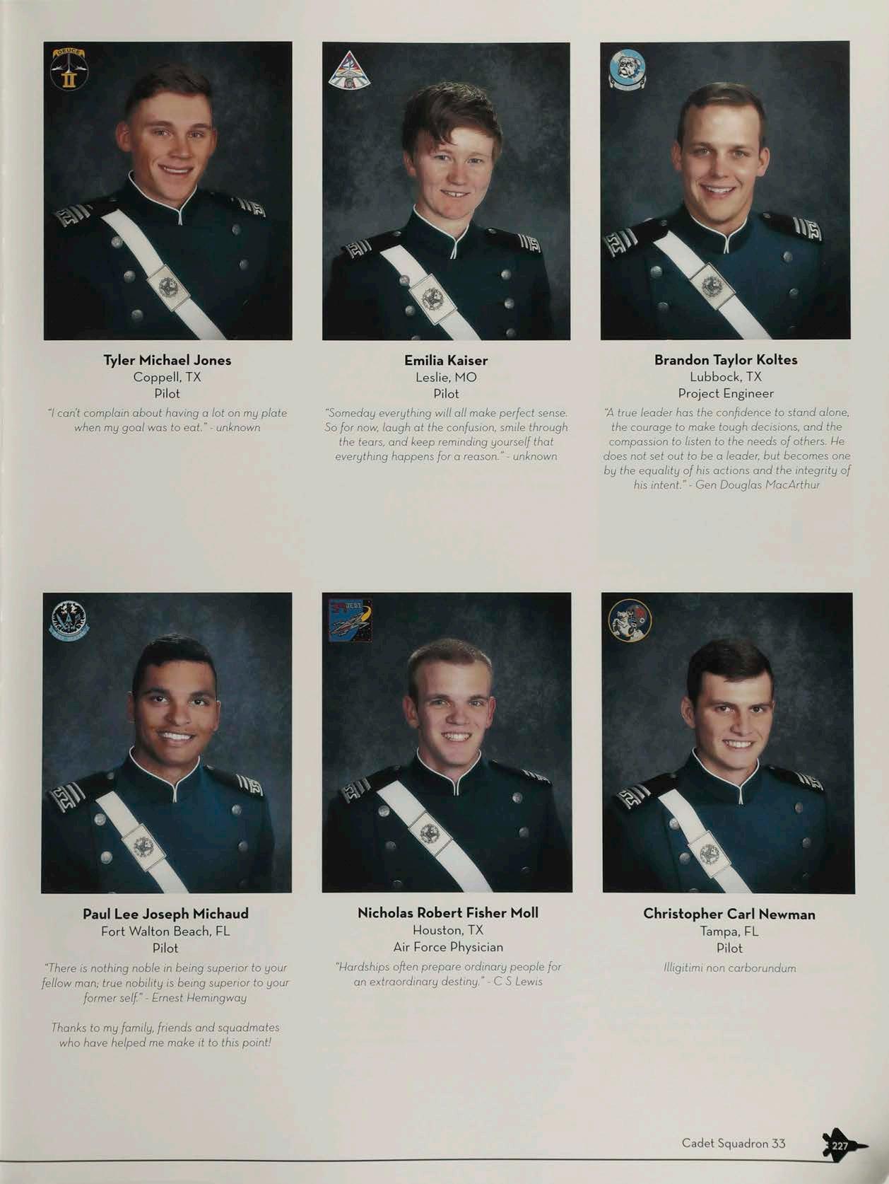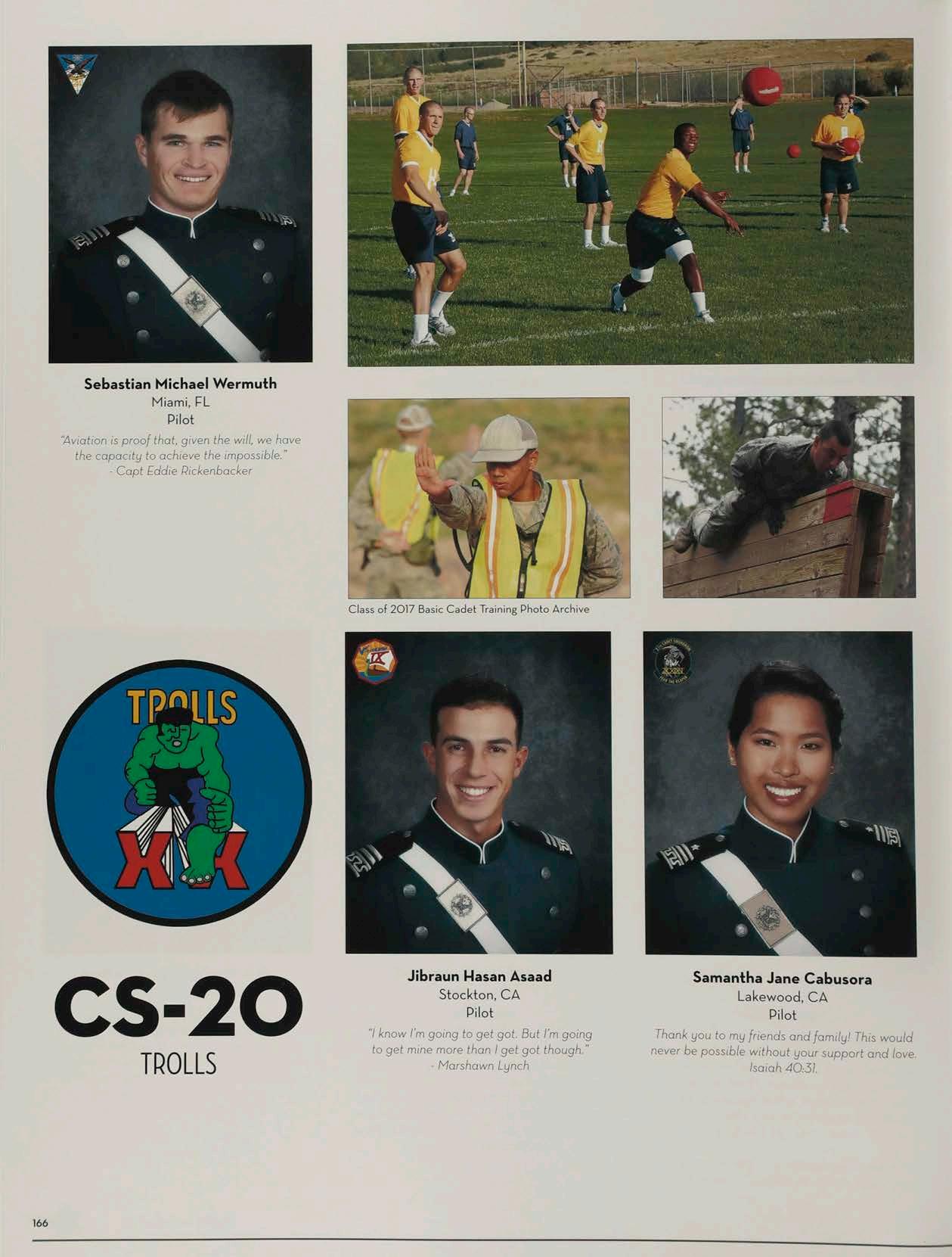 The Class of 2017 has become part of the long blue line. We face goodbyes, uncertainty, and immense responsibility. In this strange new future, we are each a zooming flash of blue lightning - azure, topaz, cerulean, sapphire - that creates the broader landscape of Air Force members before and after us. We began our journey just as any other class and have reached the various markers of a cadet career like any other.