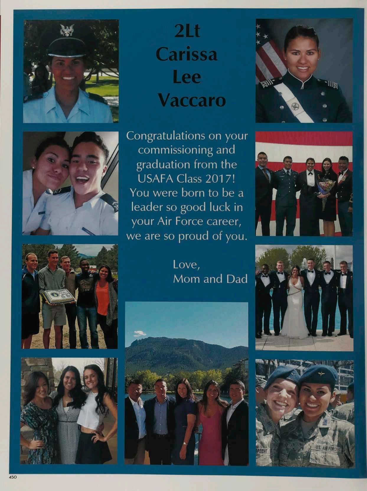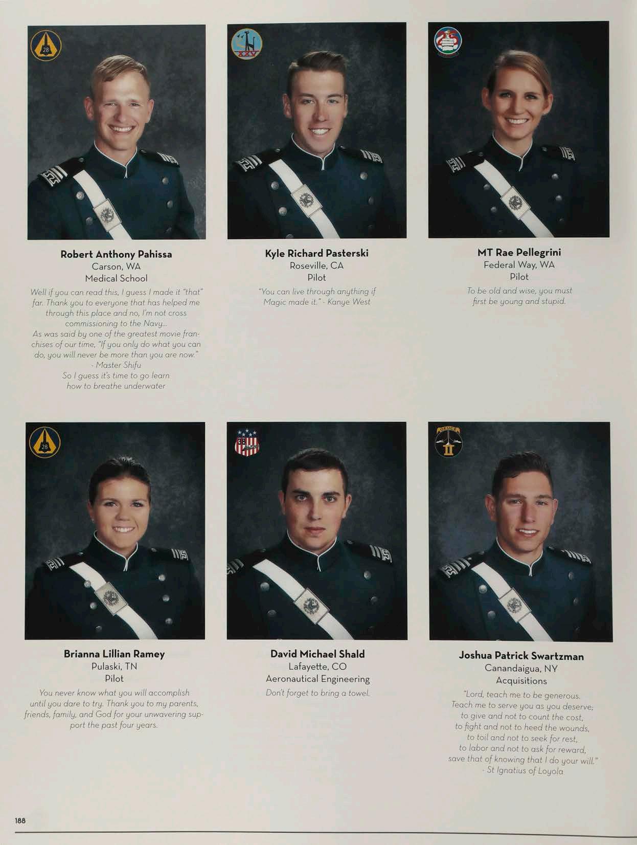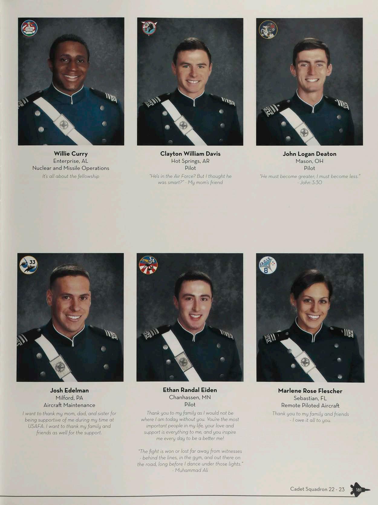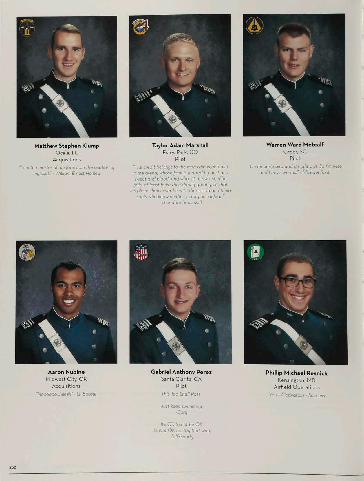 The Class of 2017 has become part of the long blue line. We face goodbyes, uncertainty, and immense responsibility. In this strange new future, we are each a zooming flash of blue lightning - azure, topaz, cerulean, sapphire - that creates the broader landscape of Air Force members before and after us. We began our journey just as any other class and have reached the various markers of a cadet career like any other.