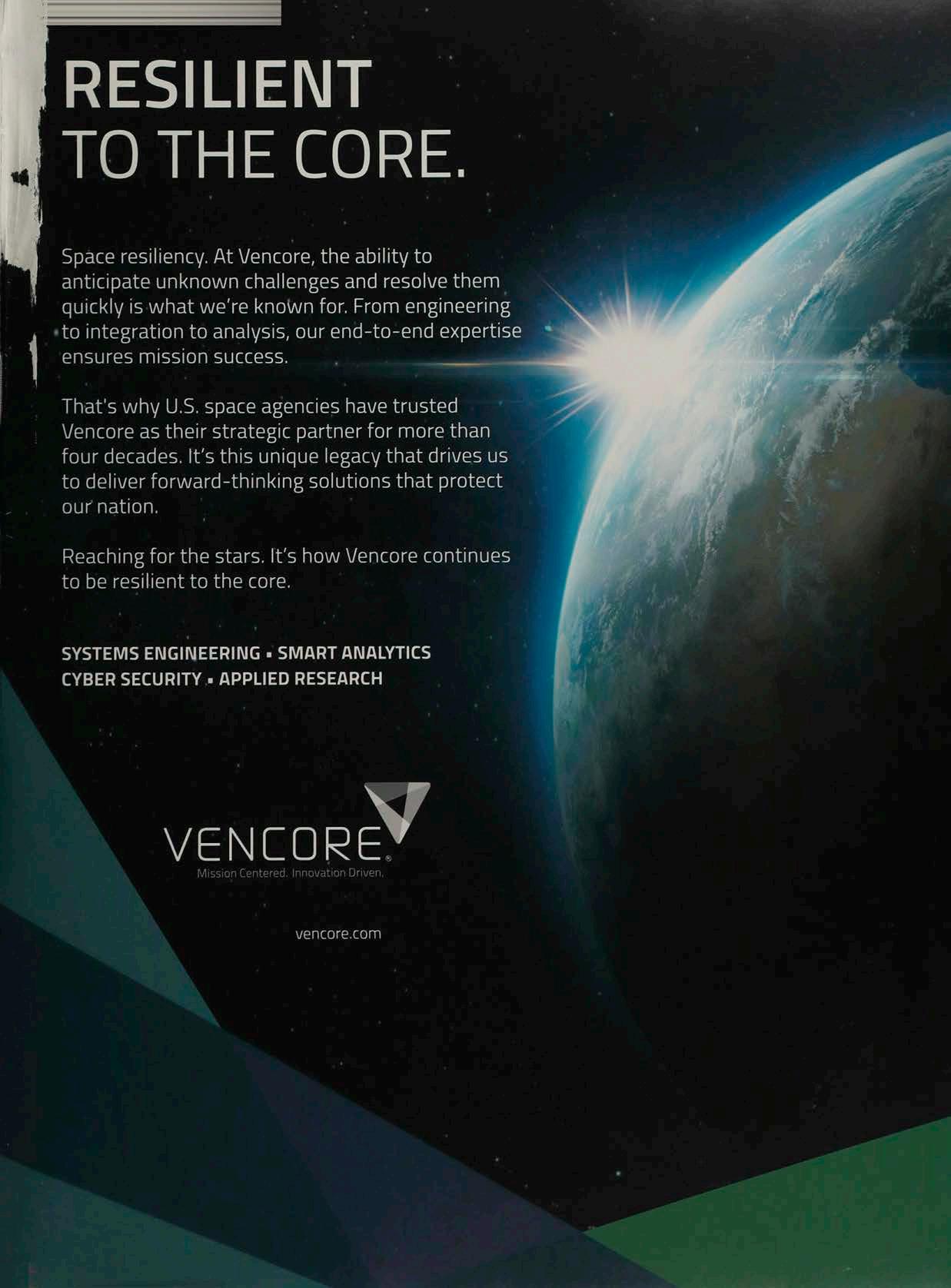 I Space resiliency. At Vencore, the ability to f anticipate unknown challenges and resolve them quickly is what we're known for. From engineering to integration to analysis, our end-to-end expertise