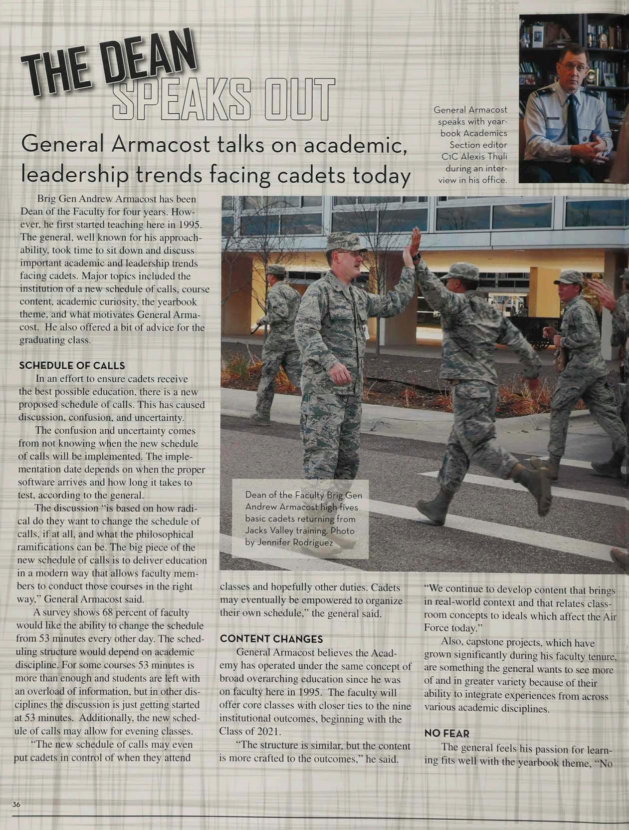 Another change this year was the Wingman Route - a path for freshmen to conduct themselves to medical appointments without supervision. In addition, training focused on motivation rather than physical sessions, increased competition such as marching drills between squadrons, and teaching Academy heritage. - C1C James Cardinal