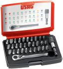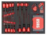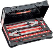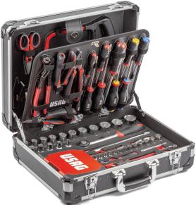 DESCRIPTION ITEM PCS. Hexagonal sockets, ratchet (237 A 1/4”), accessories 1/4” and bits 519 M 613AEA 46 Hexagonal sockets, ratchet (237 A 1/2”) and accessories 1/2” 519 M 613CEA 23 Combination wrenches (6-7-8-9-10-11-12-13-14-15-16-17-18-19-21-22-24 mm) 519 M 285A1 17 Pliers for circlips internal and external 15÷25 and 19÷60 519 M 127C 6 Universal pliers, adjustable pliers, cutting nippers, extra-long nose pliers, lock-grip pliers 519 M 150AX 5 Screwdrivers for slot-head and PHILLIPS® screws 519 M 324H 7 Screwdrivers for TORX® Tamper Resistant screws (T10-T15-T20-T25-T30-T40) 519 M 324STX 8 Flat square file, half-round file, round file, square file, triangular file (bastard cut) 519 M 990A5B 5 Hammer for mechanics with graphite handle, mallet, pin punches, chisel and centre punch 519 M 382F 7 Assortment with bits and reversible ratchet 692 J32 32 DESCRIPTION ITEM PCS. Hexagonal sockets, ratchet (237 A 1/4”), accessories 1/4” and bits 519 M 613AEA 46 Bihexagonal sockets, ratchet (237 A 1/2”) and accessories 1/2” 519 M 612CLA 35 Combination wrenches (6-7-8-9-10-11-12-13-14-15-16-17-18-19-21-22-24 mm) 519 M 285A1 17 Screwdrivers for slot-head and PHILLIPS® screws 519 M 324H 7 Screwdrivers for TORX® Tamper Resistant screws 519 M 324STX 8 Pliers for circlips, combination pliers, long nose pliers, T-handle wrenches with hex sockets (8-10-13-17 mm), bits set with ratchet 519 M 276C 42