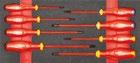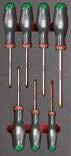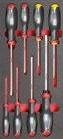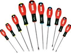 Schroevendraaiers voor gesleufde schroeven, kruisschroevendraaiers®, schroevendraaiers voor TORXschroeven®, schroevendraaiers voor POZIDRIVE® kruisschroeven.
