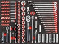 Assortiment met 6-kant dopsleutels en ringsteeksleutels in modulaire doos