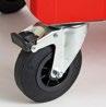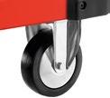 • Oliebestendige rubberen wielen (Ø 125 mm): twee vaste en twee draaibare wielen (één met rem)